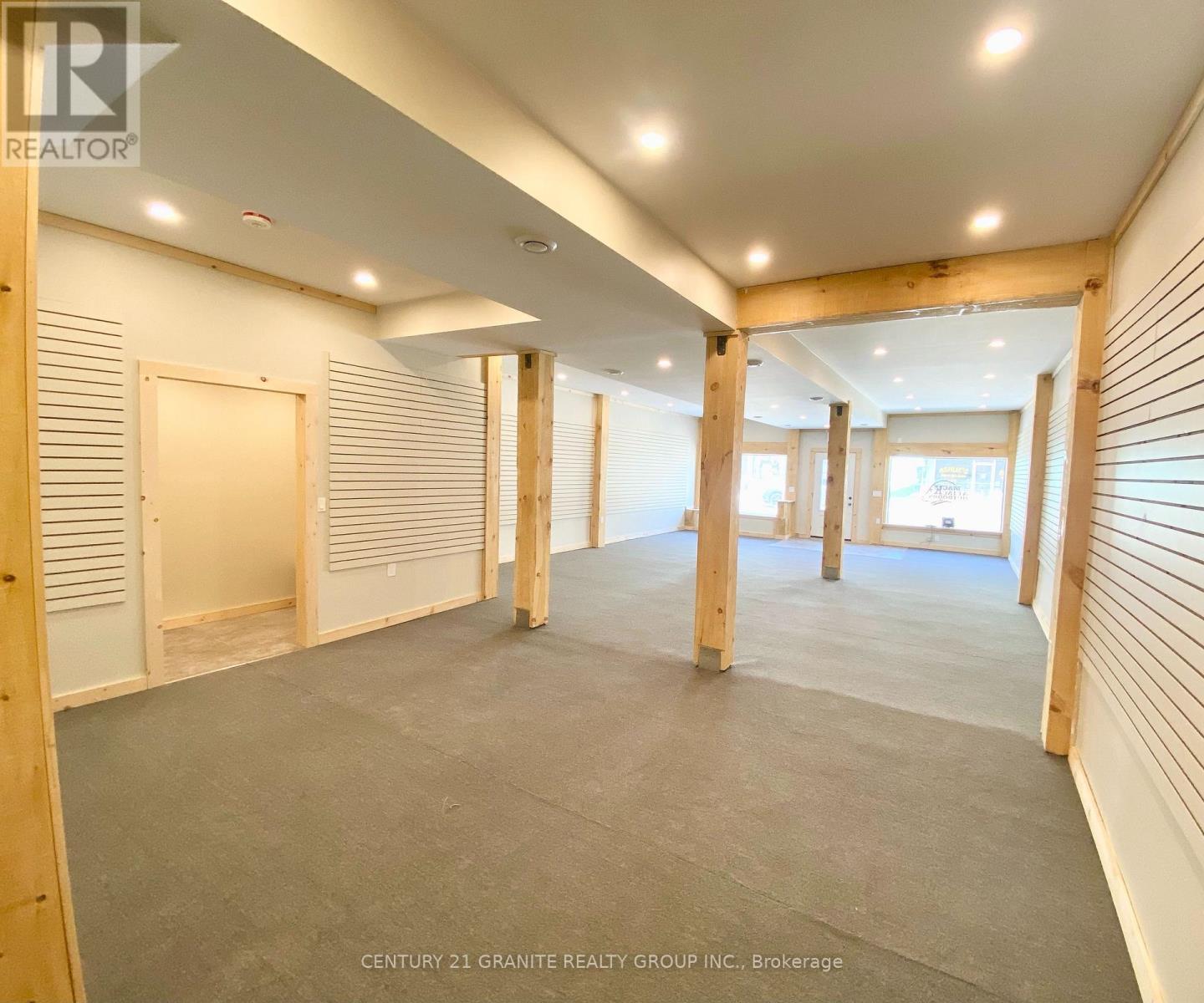 Prime Downtown Commercial Location. Exceptional street level bright and open retail space offering approximately 1,600 sq ft of recently renovated area. Zoned C-MS (Commercial Main Street) ideal for a variety of commercial uses. This versatile unit features a bright, open concept retail floor complemented by ample storage, a convenient 2-piece washroom, front/back door access, and one dedicated parking space at the rear for tenant use. Seize the opportunity to position your business in one of downtown Bancroft's most visible and accessible locations. Schedule a private viewing today and discover the potential this premier space holds for your enterprise. (id:61423)