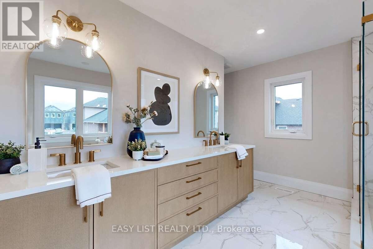 *** For more information, please click Brochure button. *** Stunning 4-bedroom, 2.5-bathroom single detached home in Peterborough's sought-after West End community. Offering 2,530 sq. ft. of living space, this residence features a classic brick and vinyl exterior, 9' main-floor ceilings, extra-tall windows, a covered front porch, and a 2 car garage. The brand new home design features 4 large bedrooms 2.5 bathrooms including a primary ensuite with free standing soaker tub, double sink vanity and separate glass shower. The home also includes hardwood flooring on the main floor, ceramic tile throughout wet areas and quality carpet on the second floor. The open-concept kitchen/great room is anchored by quartz kitchen countertops, perfect for everyday living and entertaining. The purchaser still has the option of choosing all of the interior and exterior finishings for this new home. The structure is to be built; the photos are of similar construction. Rendering photos. (id:61423)