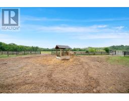 Hobby/Horse 14+ ac farm just south of the Ganaraska forest just south of the village of Kendal and a short drive from the 401 with easy access to the "FREE" entrance to the 407. Kendal has community center, Lion's club, sports facilities, a playground, post office and a convenience store. 1372 sq ft brick bungalow with a walkout basement finished with a self contained in-law apartment. Main eat-in kitchen has hardwood floors, granite countertops and a w/o to the kid and dog safe fenced back yard with an above ground pool. Fireplace insert, hardwood and a huge picture window in the living room. Main bath has a bubble tub and combines with the main floor laundry. In-law suite is self contained with it's own entrance, wood stove, large kitchen and open concept floor plan. It also has a large laundry/bath/storage combination room. There are "3 board" and electric fenced pasture's and paddocks and a fenced 160 x 100 natural sand work ring. Walk-ins, outdoor water hydrants, round bale feeders, electric plugs for winter water heaters, a round bale storage pole barn, chicken house, and a fenced in garden. There are various culverts to direct water to keep the property dry and accessible. There's a "no climb" fenced paddock at the front suitable for llamas, goats, sheep, or you could run mini's or dogs. 4 stall, hip roof, horse barn, with upper bale storage, separate feed and tack rooms and it's own hydro panel, exhaust fan and water. There is a crushed stone training track for driving horses, or for ATV's - dirt bikes. The well is an "ever flowing" artesian, so the farm and home are well supplied. Garage 30x22.4 Shed 20x8 (id:61423)