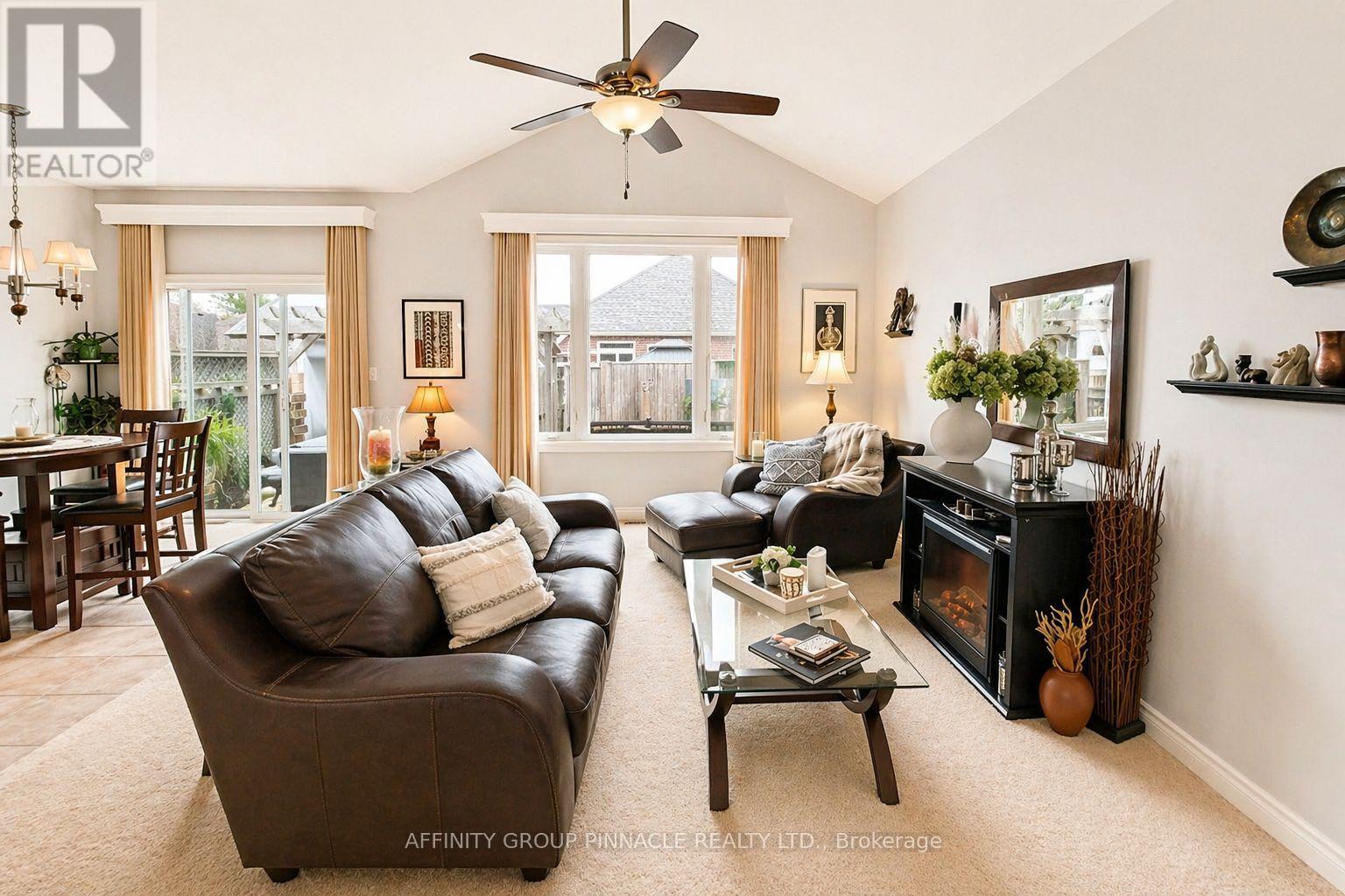 Welcome to 63 Ellis Cres! This spacious, all-brick bungalow offers 3+1 bedrooms, 3 bathrooms, and has been lovingly maintained in a sought-after, family-friendly neighbourhood in Lindsay.The main level features a bright, open-concept eat-in kitchen and living area complete with vaulted ceilings, a functional island, and ample storage, perfect for everyday living and entertaining. Sliding glass doors lead to a private backyard retreat with a deck and pergola, all set within a fully fenced, low-maintenance yard.The generous primary bedroom includes a walk-in closet and a private ensuite. Downstairs, the fully finished basement provides incredible versatility with a cozy gas fireplace, additional bedroom, full bathroom, office/den, cold storage, and a rough-in for a wet bar, ideal for entertaining or extended family living. Recent updates offer peace of mind, including a furnace and A/C (2016), all new upper-level windows (2023), a brand new roof (2024), and freshly repainted main floor (2026).Conveniently located just minutes from Logie St Park, scenic walking trails, and easy access to Hwy 35/36/7, this home checks all the boxes for comfort, style, and location! (id:61423)