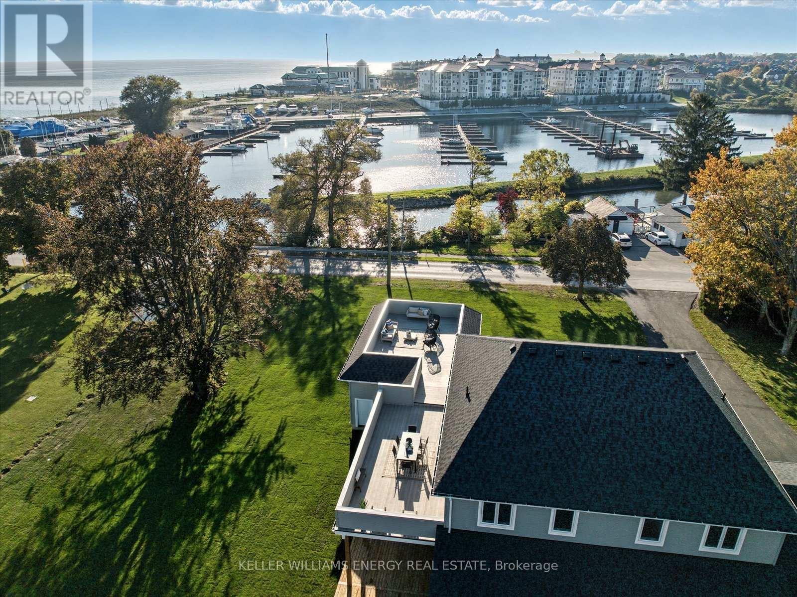 One of the most desirable places to live along the shores of Lake Ontario. Discover what life is like in the charming historic Bond Head Community. This one-of-a-kind, custom-built home offers spacious living, high ceilings, an intentional blend of modern and traditional finishes that create an inviting and comforting space. Positioned directly across from Bond Head Beach, Marina, Pier and Private Boat Launch with a roof top terrace for entertaining and unparalleled views. Additional features include 10' main floor ceilings, 20' great room ceiling, a spacious kitchen with servery and walk-out access to wrap around deck. Oversized private backyard with 2000 sq ft of living space, complete with entertainer's covered deck and walk-out access from primary bedroom. Primary bedroom is located on main floor with a walk-in closet and spa like bathroom. Offers main floor laundry and ample amount of light and lake views throughout this home. Upper floor offers an additional sitting room with a built-in mini bar and access to the roof top terrace. Two separate attached garages, one garage includes a car port. Ample storage and living space. Truly a must see! (id:61423)