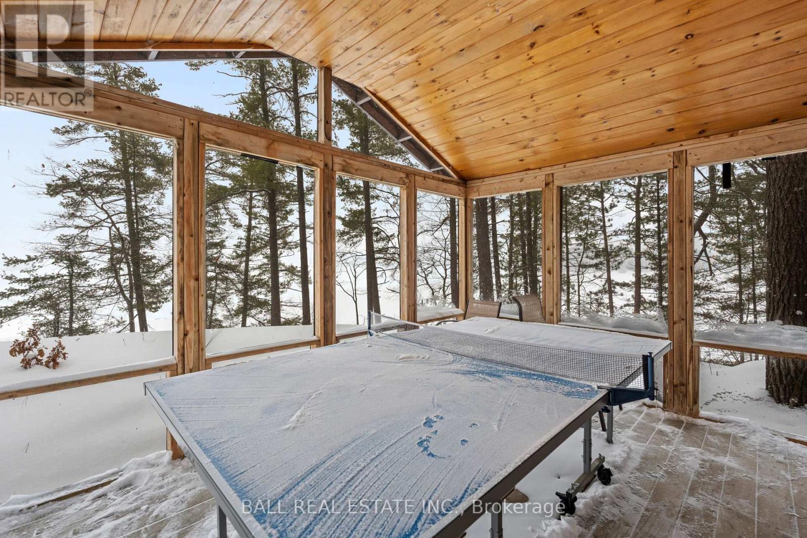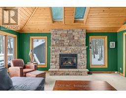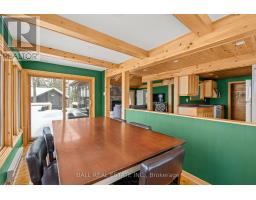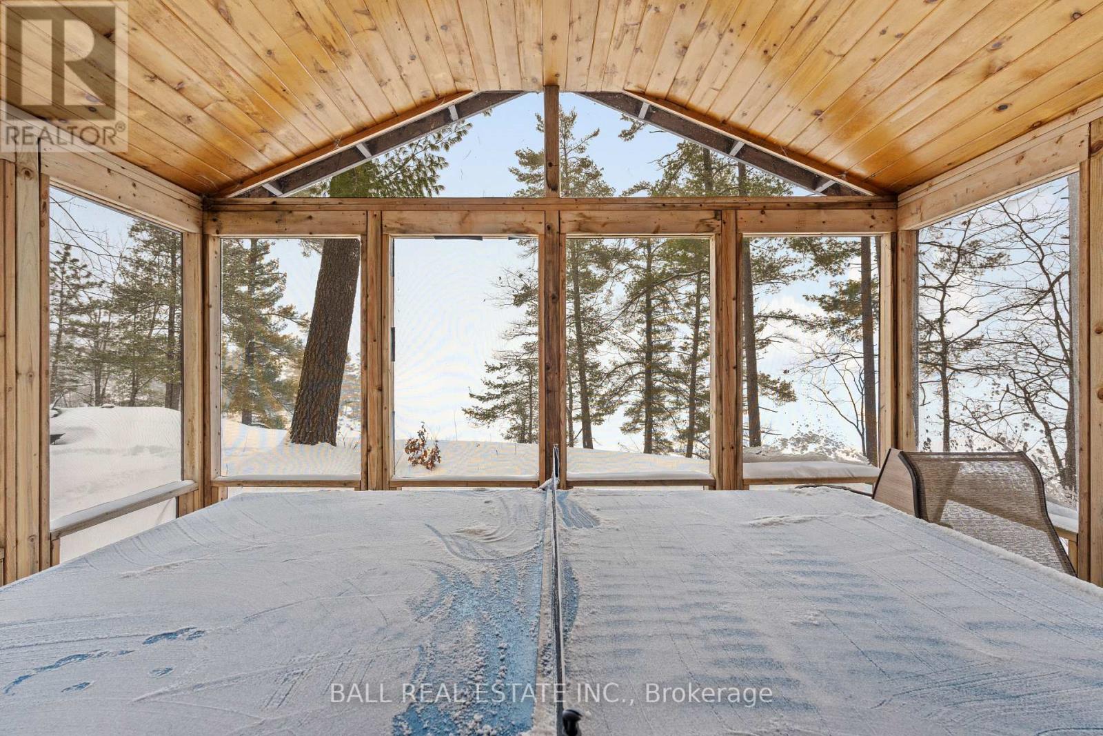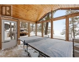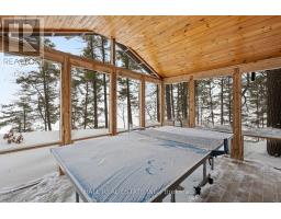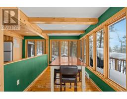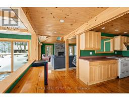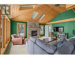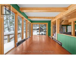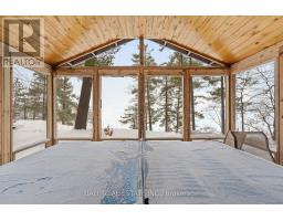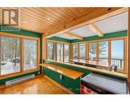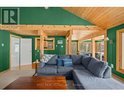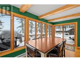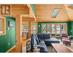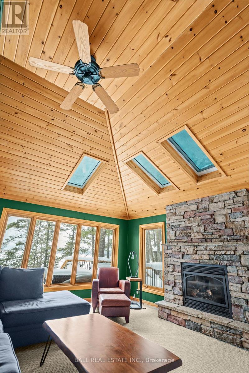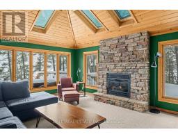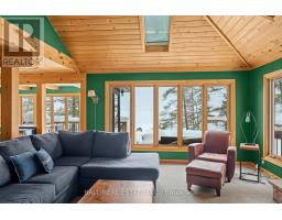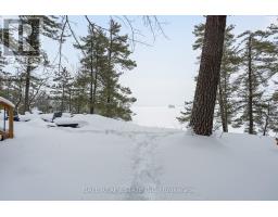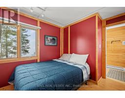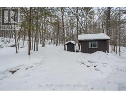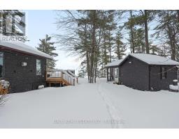 With 282 feet of pristine waterfront on Mississauga Lake, this exceptional 2-acre property offers a rare combination of privacy, accessibility, and outstanding waterfront - three elements the most discerning waterfront buyers consistently prioritize. In all three categories - access, privacy, and quality of shoreline - this property easily rates a 9 out of 10, a distinction that is increasingly difficult to find. With only 1 distant neighbour through the forest, and backing directly onto over 100 acres of Ministry of Natural Resources land, the setting feels completely secluded and protected. Despite this peaceful, private environment, the property enjoys excellent year-round access, just minutes off Highway 507 via a municipally maintained road - making arrival effortless in any season. The turn-key 3-bedroom, 1-bathroom bungalow features vaulted ceilings and large windows that flood the home with natural light. The views are stunning from virtually every point on the property, but they are truly unforgettable when looking out toward the water from inside the cottage, relaxing on the back deck, or sitting by the fireplace. Watching the morning sun rise over the lake is a daily experience that never gets old. The dining area walks out to a spacious deck overlooking the lake, perfect for entertaining or quiet mornings with a coffee. Designed for hosting family and friends, the property includes two bunkies, a private sauna, a garden shed (6' x 4'), anda large workshop (12' x 12'). The main bunkie (12' x 14') offers a screened porch (11'5" x 14'), a bedroom, a 2-piece bath, and an attached storage shed (6' x 8'). The second bunkie (8' x 12') sleeps three. Perched on the hillside, the sauna (8' x 12') enjoys elevated lake views. Access the waterfront by stairs or follow the scenic wooded path down to the waterfront deck - an ideal spot for swimming, boating, or simply taking in the quiet beauty of lakeside living. This place delivers on what matters most! (id:61423)