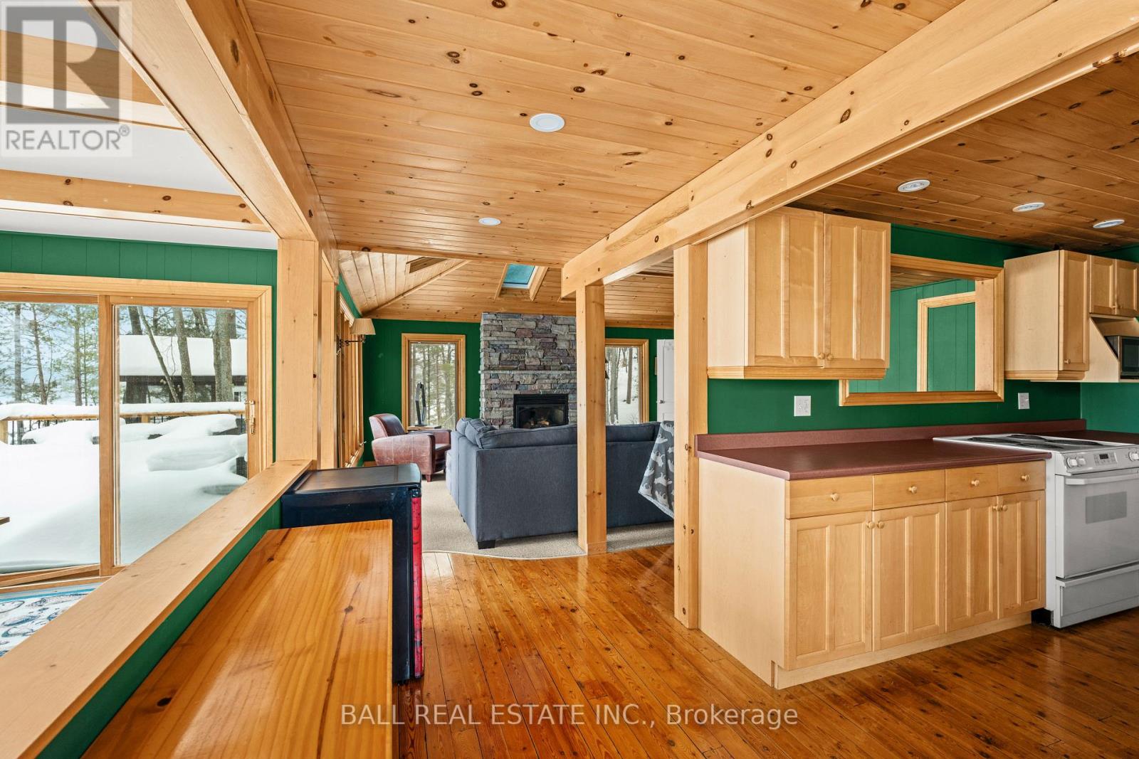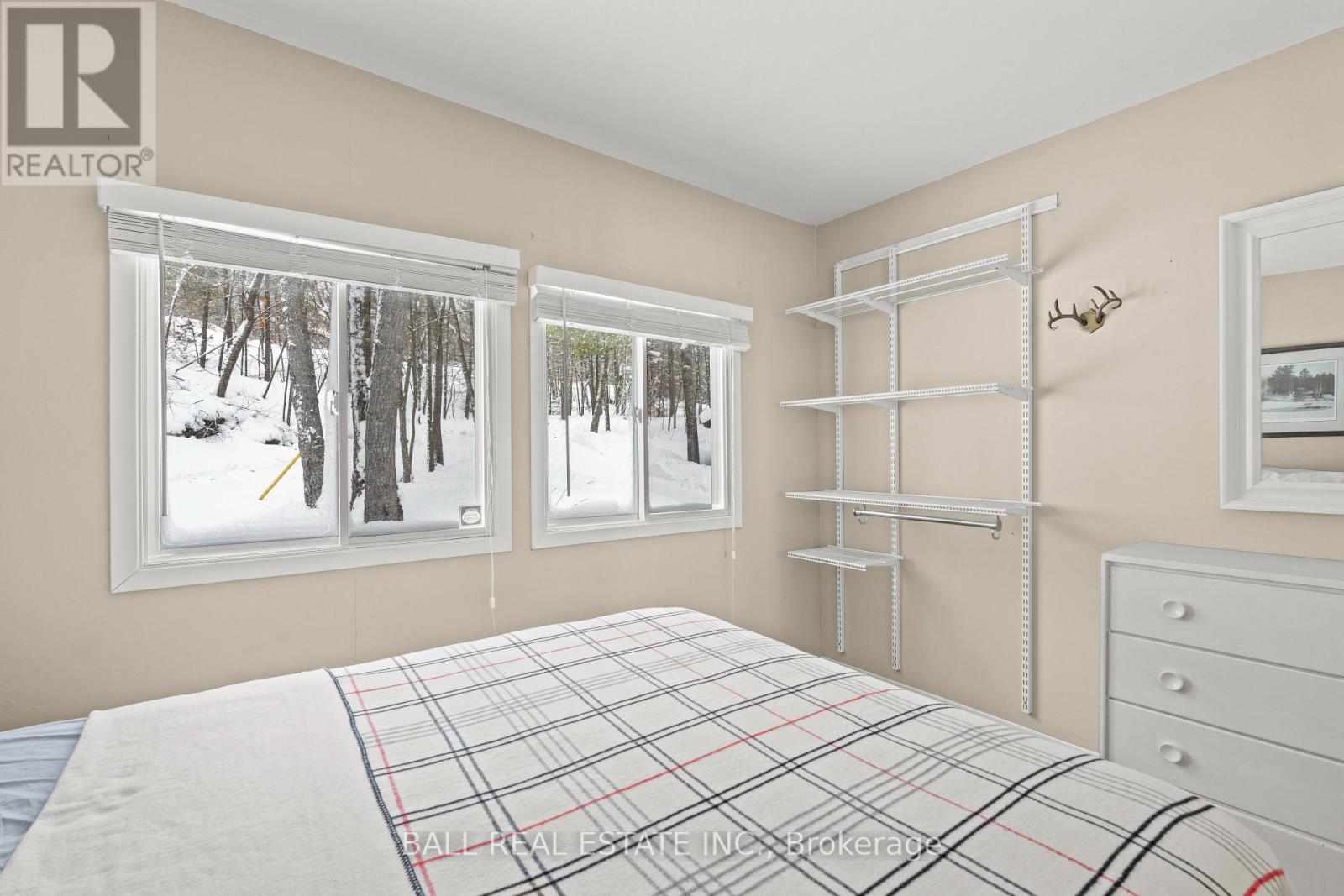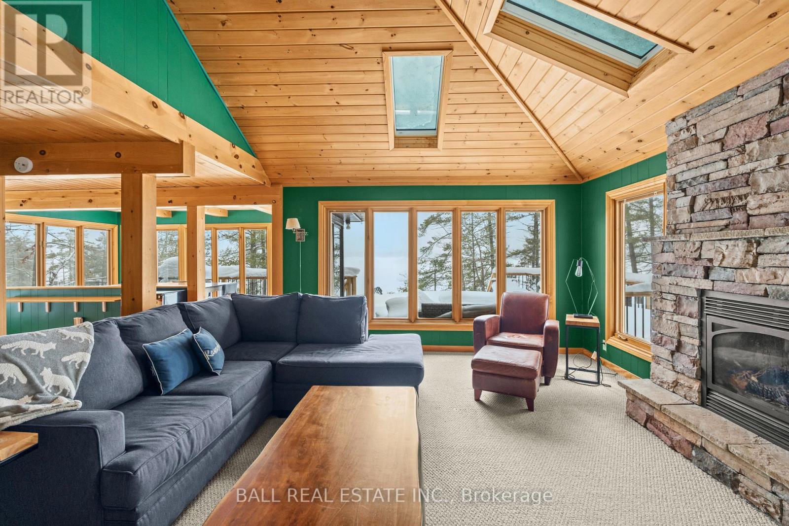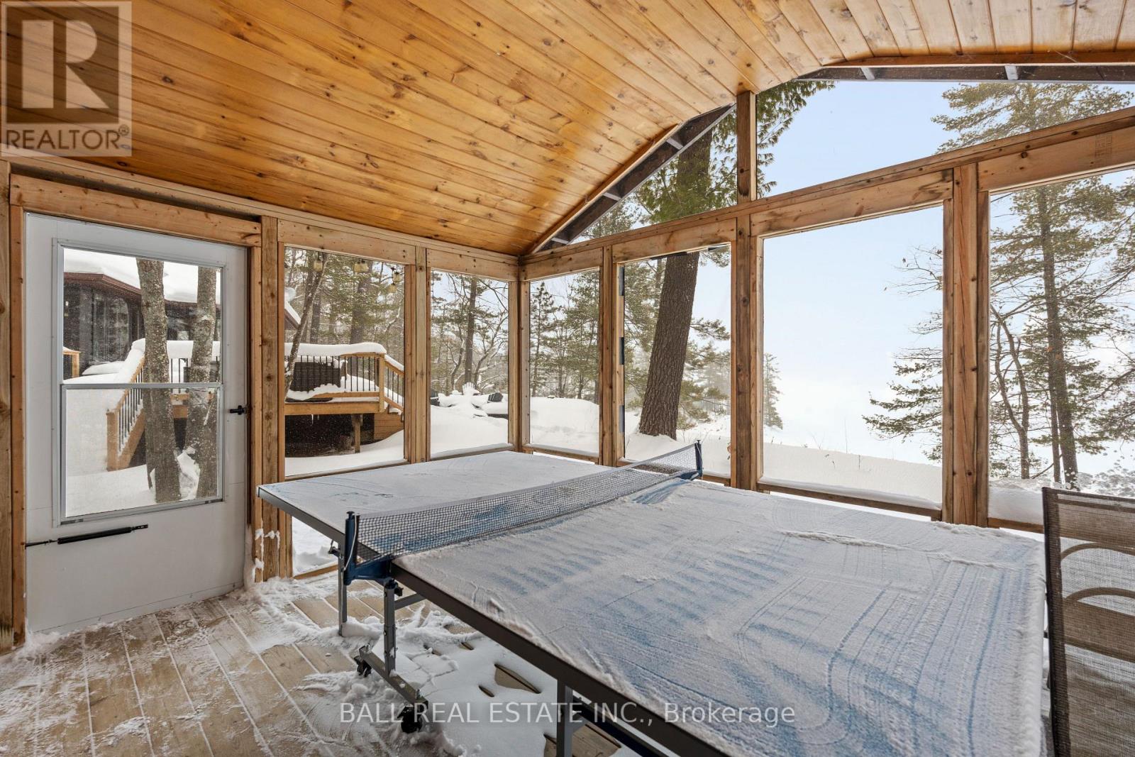 With 282 feet of pristine waterfront on Mississauga Lake, this exceptional 2-acre property offers a rare combination of privacy, accessibility, and outstanding waterfront - three elements the most discerning waterfront buyers consistently prioritize. In all three categories - access, privacy, and quality of shoreline - this property easily rates a 9 out of 10, a distinction that is increasingly difficult to find. With only 1 distant neighbour through the forest, and backing directly onto over 100 acres of Ministry of Natural Resources land, the setting feels completely secluded and protected. Despite this peaceful, private environment, the property enjoys excellent year-round access, just minutes off Highway 507 via a municipally maintained road - making arrival effortless in any season. The turn-key 3-bedroom, 1-bathroom bungalow features vaulted ceilings and large windows that flood the home with natural light. The views are stunning from virtually every point on the property, but they are truly unforgettable when looking out toward the water from inside the cottage, relaxing on the back deck, or sitting by the fireplace. Watching the morning sun rise over the lake is a daily experience that never gets old. The dining area walks out to a spacious deck overlooking the lake, perfect for entertaining or quiet mornings with a coffee. Designed for hosting family and friends, the property includes two bunkies, a private sauna, a garden shed (6' x 4'), anda large workshop (12' x 12'). The main bunkie (12' x 14') offers a screened porch (11'5" x 14'), a bedroom, a 2-piece bath, and an attached storage shed (6' x 8'). The second bunkie (8' x 12') sleeps three. Perched on the hillside, the sauna (8' x 12') enjoys elevated lake views. Access the waterfront by stairs or follow the scenic wooded path down to the waterfront deck - an ideal spot for swimming, boating, or simply taking in the quiet beauty of lakeside living. This place delivers on what matters most! (id:61423)