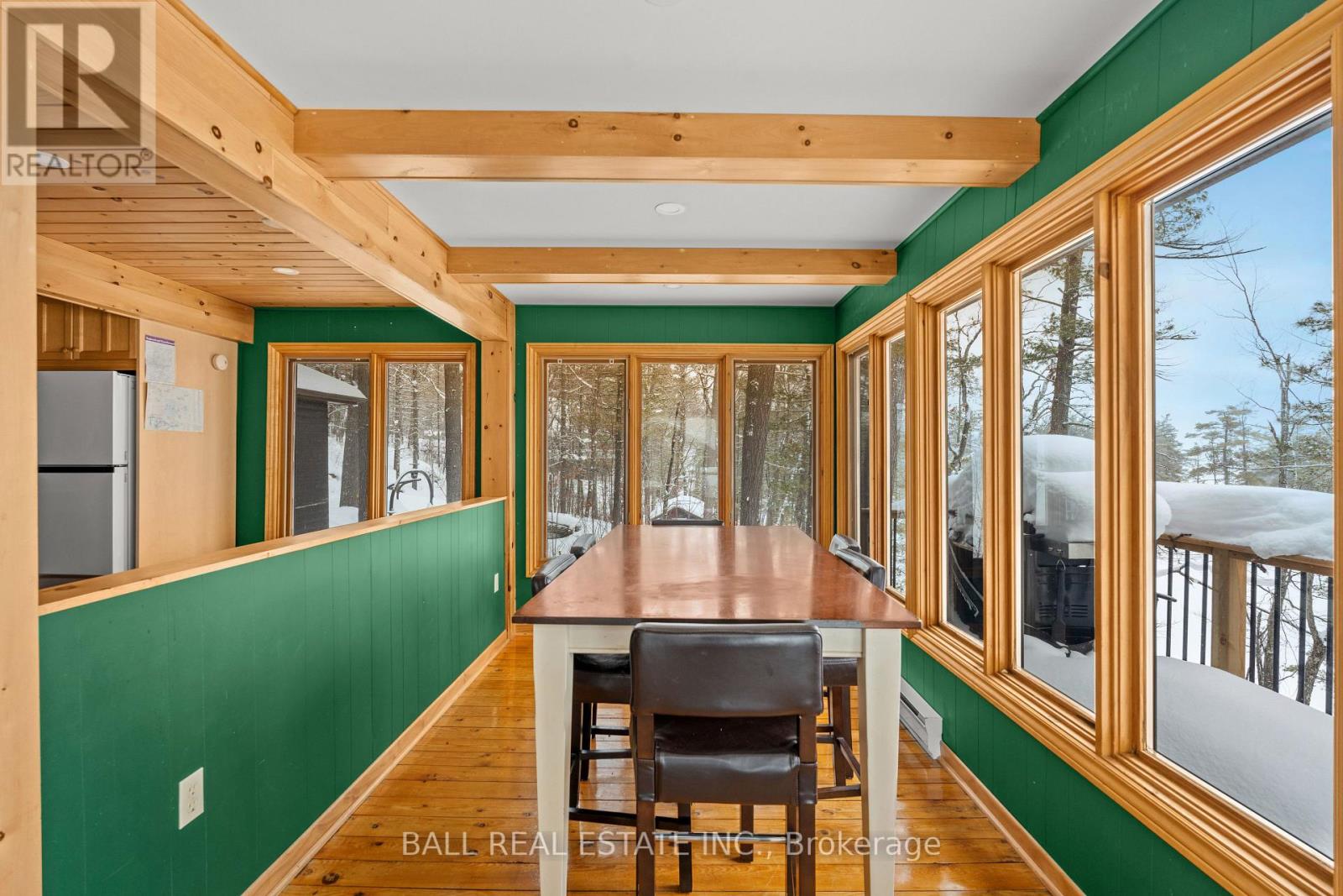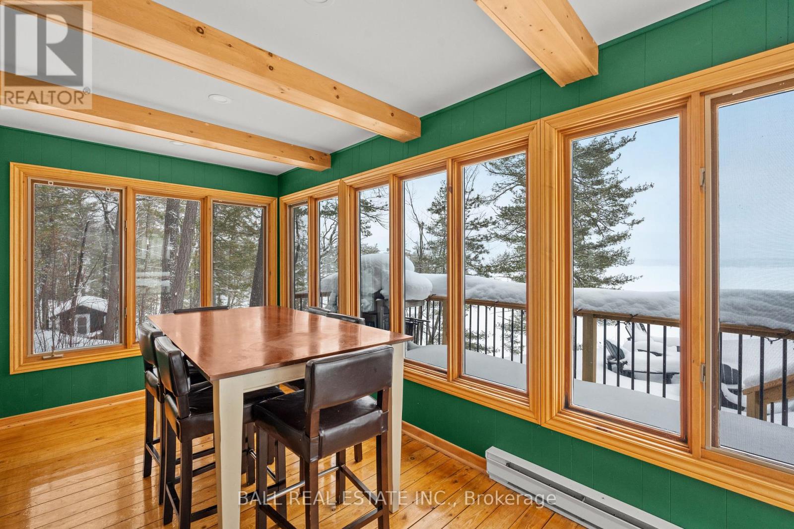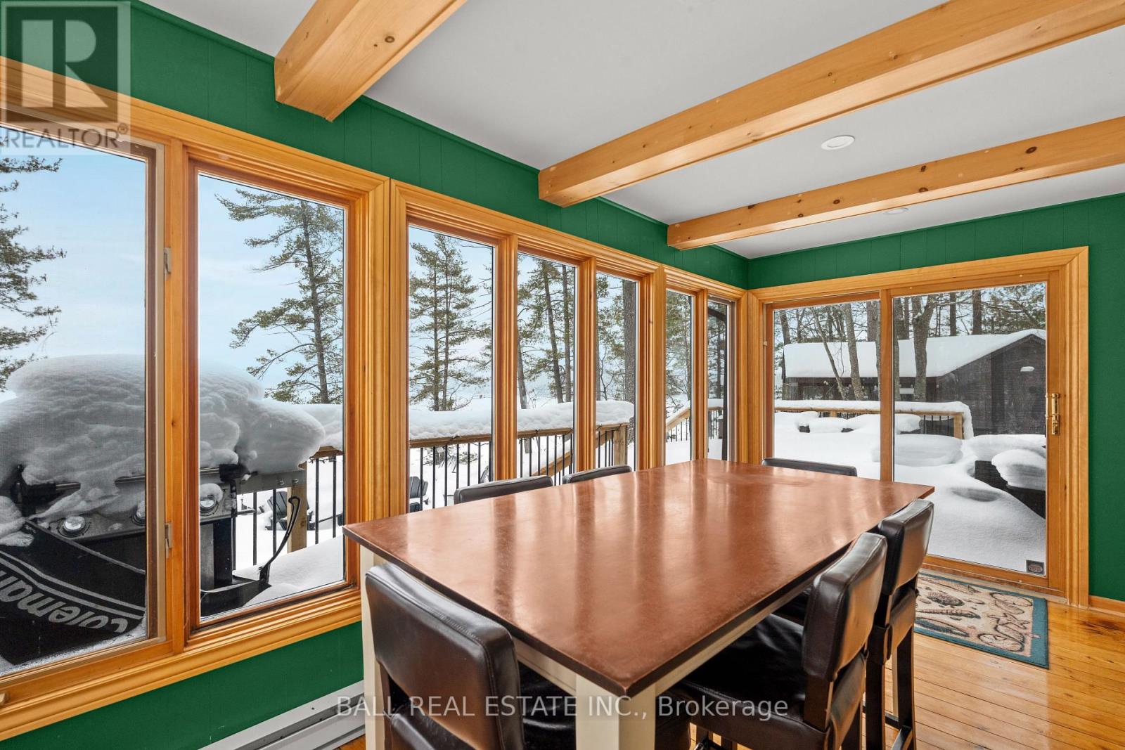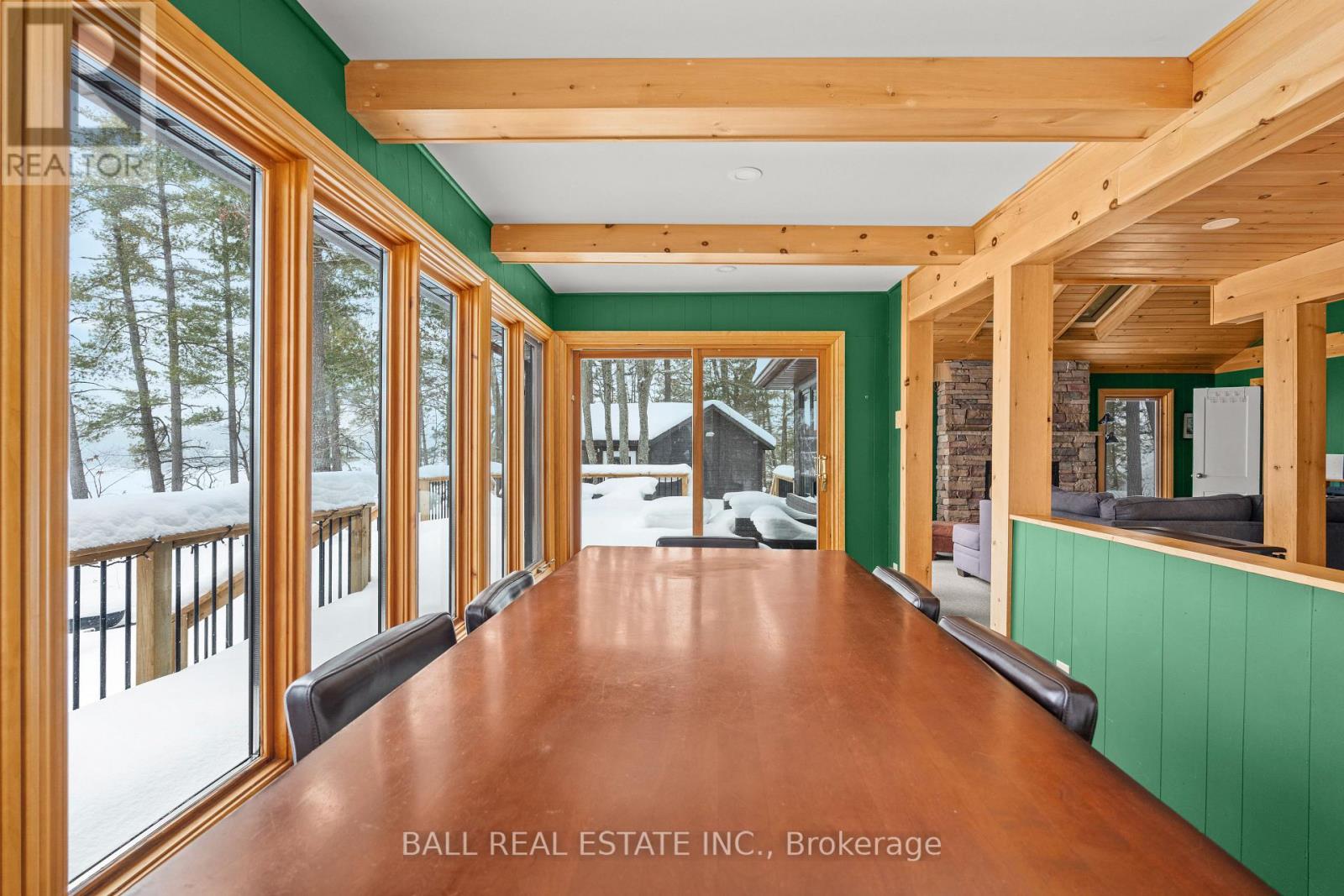 With 282 feet of pristine waterfront on Mississauga Lake, this exceptional 2-acre property offers a rare combination of privacy, accessibility, and outstanding waterfront - three elements the most discerning waterfront buyers consistently prioritize. In all three categories - access, privacy, and quality of shoreline - this property easily rates a 9 out of 10, a distinction that is increasingly difficult to find. With only 1 distant neighbour through the forest, and backing directly onto over 100 acres of Ministry of Natural Resources land, the setting feels completely secluded and protected. Despite this peaceful, private environment, the property enjoys excellent year-round access, just minutes off Highway 507 via a municipally maintained road - making arrival effortless in any season. The turn-key 3-bedroom, 1-bathroom bungalow features vaulted ceilings and large windows that flood the home with natural light. The views are stunning from virtually every point on the property, but they are truly unforgettable when looking out toward the water from inside the cottage, relaxing on the back deck, or sitting by the fireplace. Watching the morning sun rise over the lake is a daily experience that never gets old. The dining area walks out to a spacious deck overlooking the lake, perfect for entertaining or quiet mornings with a coffee. Designed for hosting family and friends, the property includes two bunkies, a private sauna, a garden shed (6' x 4'), anda large workshop (12' x 12'). The main bunkie (12' x 14') offers a screened porch (11'5" x 14'), a bedroom, a 2-piece bath, and an attached storage shed (6' x 8'). The second bunkie (8' x 12') sleeps three. Perched on the hillside, the sauna (8' x 12') enjoys elevated lake views. Access the waterfront by stairs or follow the scenic wooded path down to the waterfront deck - an ideal spot for swimming, boating, or simply taking in the quiet beauty of lakeside living. This place delivers on what matters most! (id:61423)