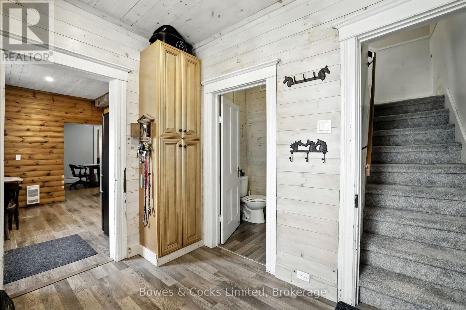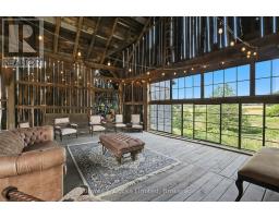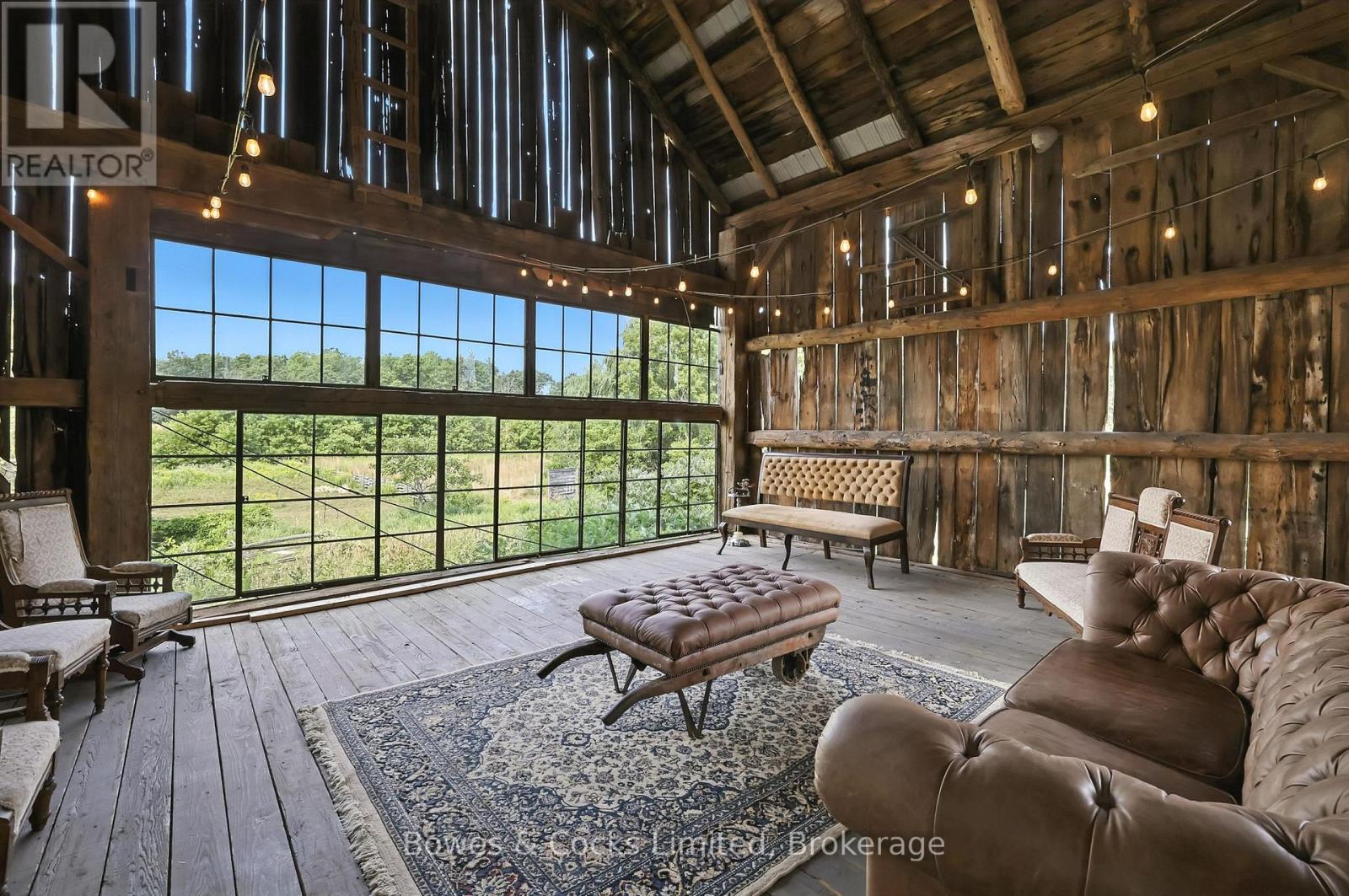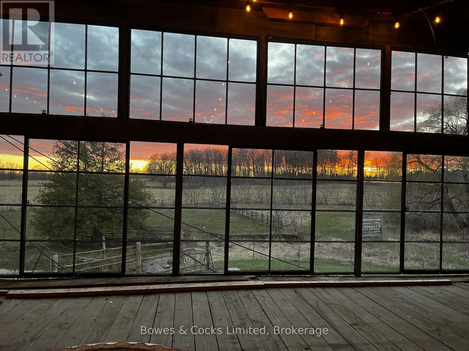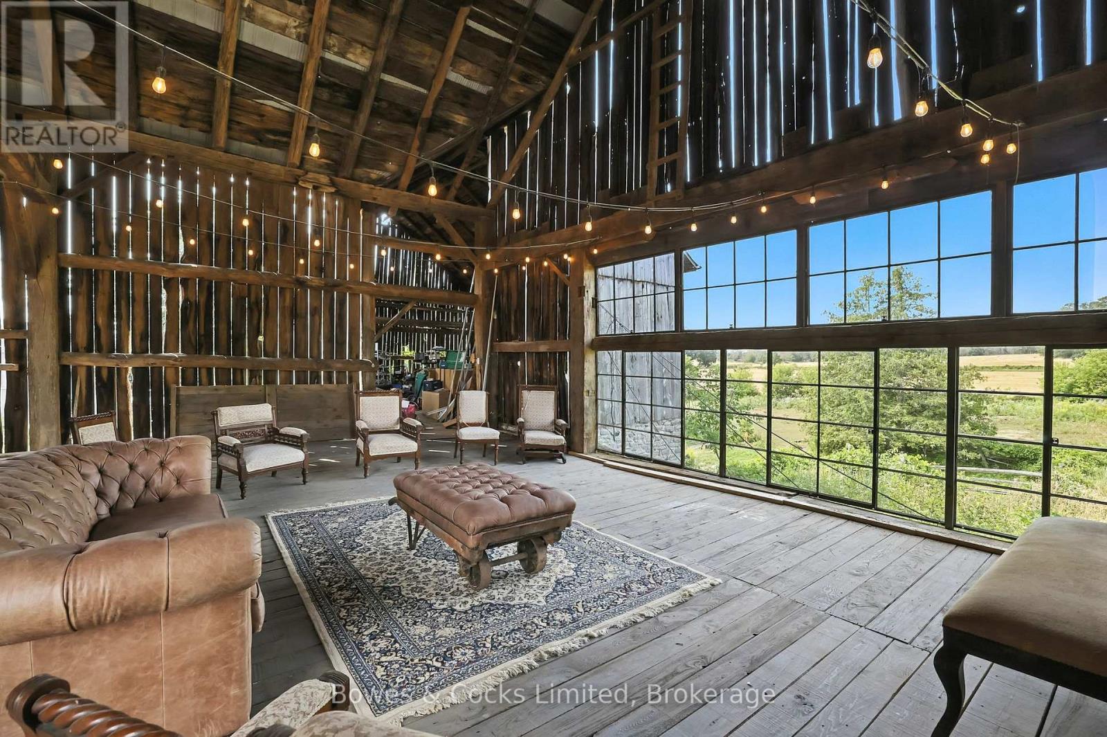 Set against a backdrop of gently rolling fields and just steps from the site of the future hospital complex, this property offers peaceful country living and the ability to host unforgettable events on this 23-acre estate. Down a long, private, gated driveway sits a beautifully preserved century brick home, where modern comfort meets heritage charm. A bright updated kitchen, formal dining room, cozy living area, and 2-piece bathroom make up the main floor, while upstairs features 3 spacious bedrooms and 2 bathrooms. A show-stopping staircase with a glowing lady newel post sets the tone for this elegant home. The south-facing two-storey sunroom floods the home with light, and a vine-covered porch on the east side provides the perfect spot for morning coffee. The multi-use bank barn is an absolute standout: the hay loft has been thoughtfully transformed into an event centre with original wood floors, exposed beams, and a wall of antique windows offering jaw-dropping views. Multiple restroom stalls make it function-ready for guests. Other buildings include a horse barn, grain bin, blacksmith shed, chicken coop, and the original two-storey dwelling. Active hay and grain fields plus horse paddocks round out this unique rural property with business, lifestyle, and legacy potential. A breathtaking and rare opportunity awaits. (id:61423)