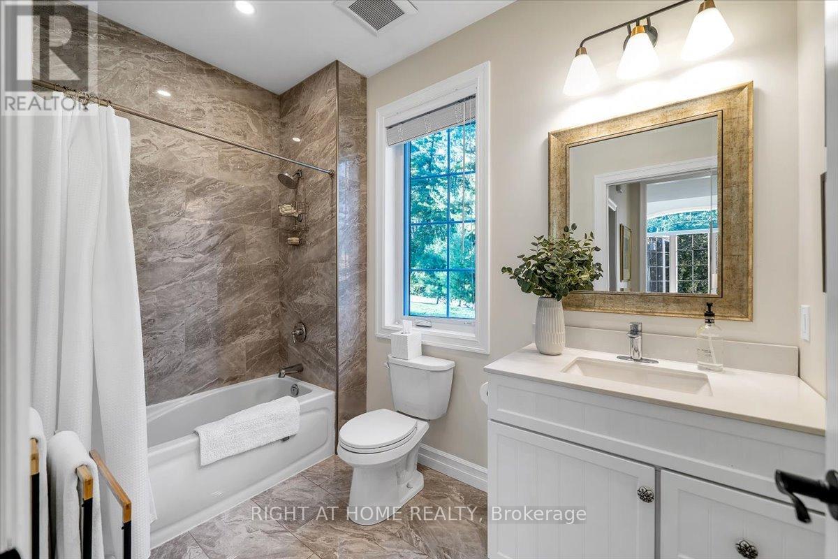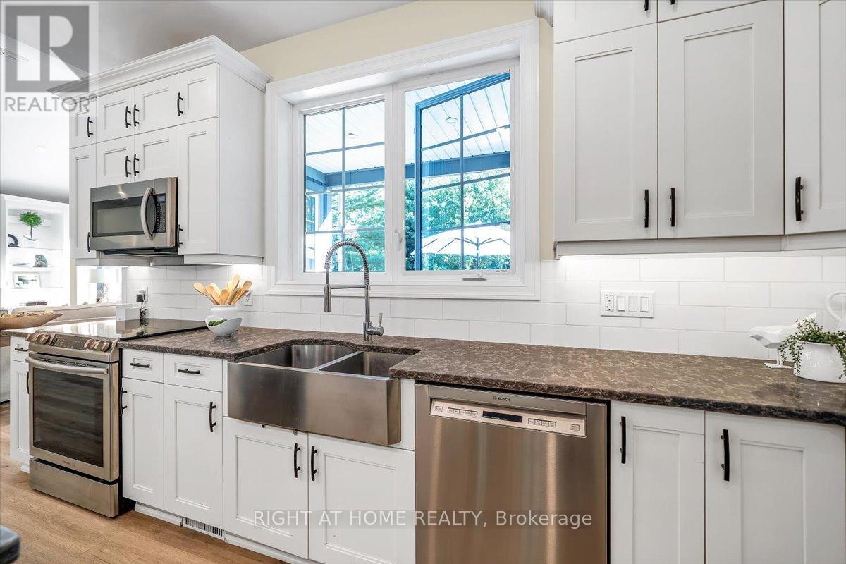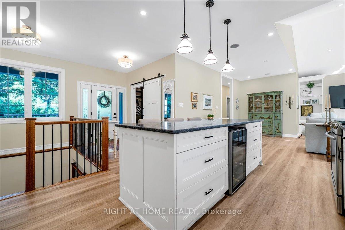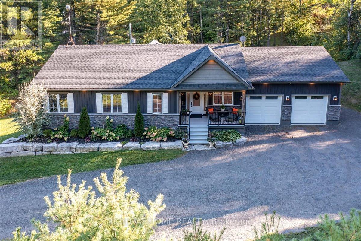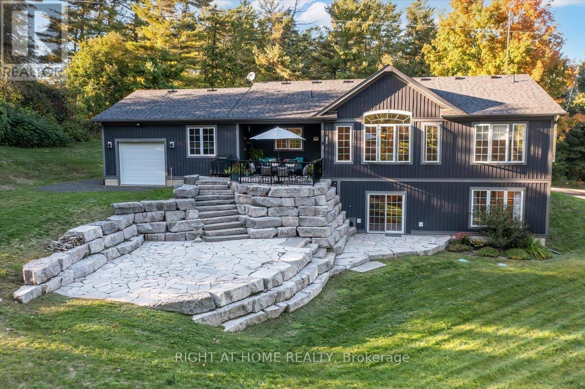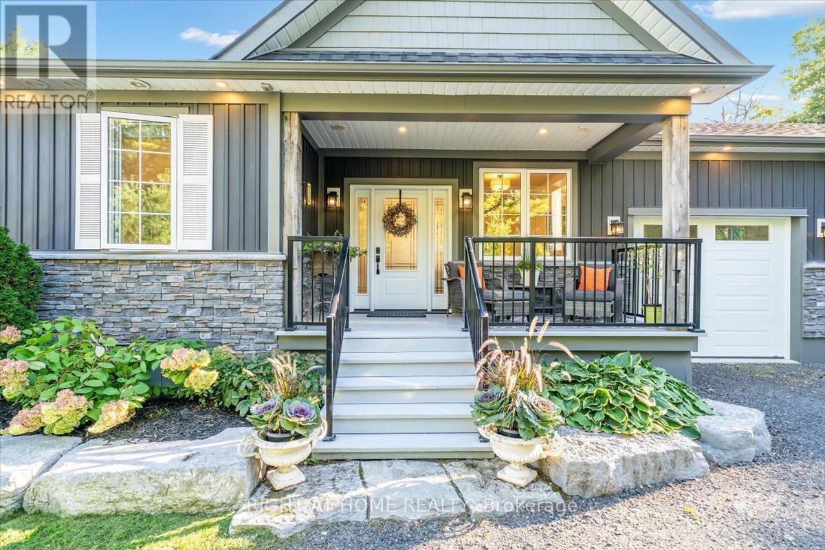 Welcome to this stunning, fully updated detached bungalow offering nearly 3,500 sq ft of finished living space on a quiet country lot just under 1 acre. With 5 bedrooms (3 up, 2 down) and a bright, open-concept layout, this home is ideal for families, hobbyists, or multi-generational living. Step inside to a spacious foyer and an airy living room with cathedral ceilings, expansive windows, and a walk-out to a raised backyard patio overlooking the sunken terrace below. The chefs kitchen is an entertainers dream, featuring stone countertops, a large island, stainless steel appliances, and an undermount farmhouse style sink below a picture window overlooking the backyard. Enjoy indoor-outdoor living with a covered front porch, two-level patio, and direct access to a heated double garage plus a rear garage door for convenient backyard access. The primary suite offers a peaceful retreat with large windows, a walk-in closet, and a 4-piece ensuite featuring a glass shower and heated floors. Two additional upstairs bedrooms offer generous space, large windows, and lighted closets. The fully finished lower level includes a spacious rec room with built-in shelving, two bedrooms with above grade windows, a 3-piece bathroom, a walk out to a stone patio and a wet bar set up perfectly for an in-law suite or extended family. The home features a fully installed backup generator for peace of mind, and a built-in sound system for effortless entertaining. Just a 3-minute drive to the lakeside village of Bewdley, you're never far from essentials- whether its a quick grocery run or a last-minute ingredient. Enjoy dining and access to Rice Lake for boating in summer and ice fishing in winter. Minutes to Ganaraska Forest's 11,000+ acres of trails and only 20 minutes to Hwy 407, Hwy 401, Peterborough, and Port Hope this home is perfectly situated for commuters, nature lovers, and anyone seeking peace and space without sacrificing convenience. Move in and enjoy- nothing left to do! (id:61423)