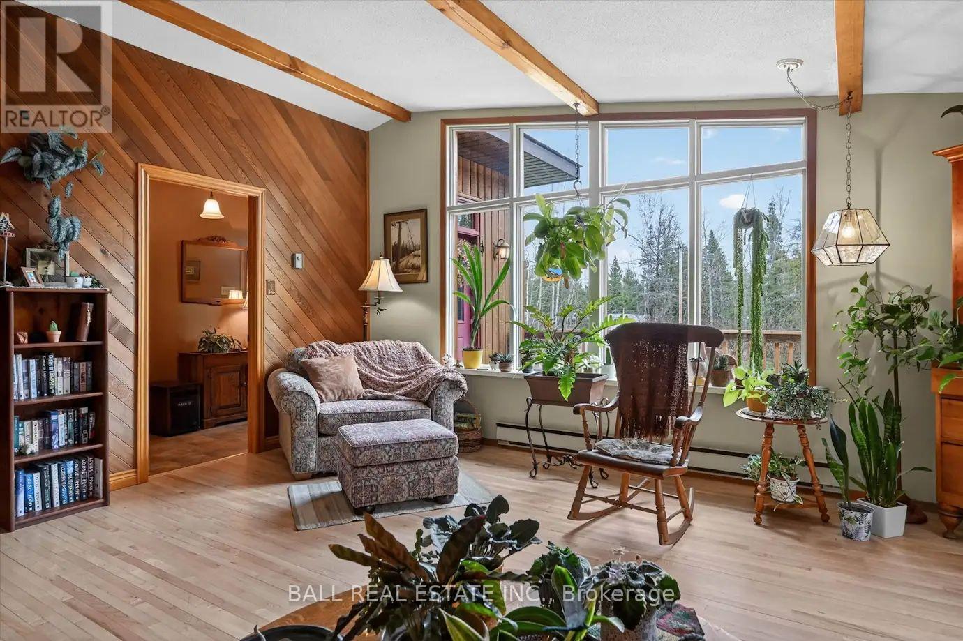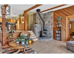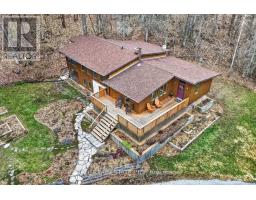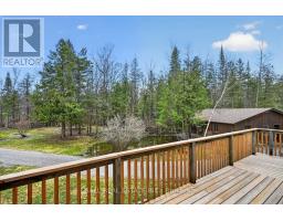 65 Acres - Lovely Bright and Open Concept 2 bedroom Raised Bungalow in Woodview. True Canadian Shield topography offering mostly forested acreage off Highway 28. Located 35 minutes North of Peterborough, 22 minutes to Lakefield, and 13 Minutes to Apsley. Main floor offers a spacious living room and an open kitchen/dining area that walks out to a covered/screened porch, and area for BBQ, as well as 2 bedrooms, a bathroom and a walk-in closet at the foyer. Sizeable outbuilding used a studio space, and also offers a large storage area beside. Studio can offer many potential uses (no plumbing currently). There is also a shelter for firewood behind the studio, and the wood is included. Primary heat source is the wood stove, with baseboards as a backup source. Also close by to Stoney Lake, Kawartha Highlands, Kawartha Nordic Ski Trails, High Falls, Petroglyphs and many other great places in the Kawarthas. Roof re-shingled in 2 stages in 2025 and 2026. Septic system was updated 2001. (id:61423)