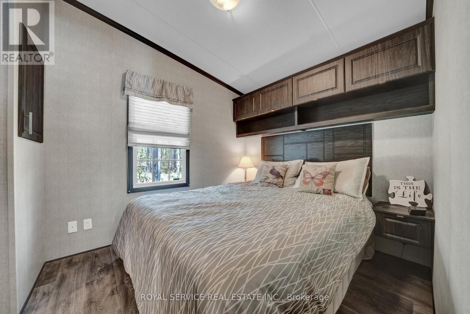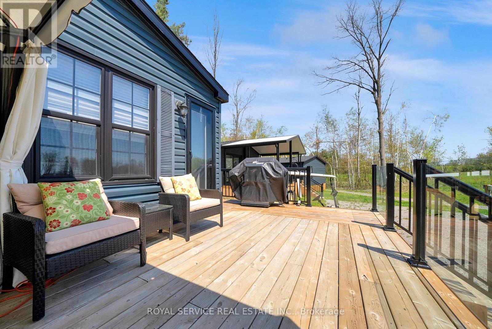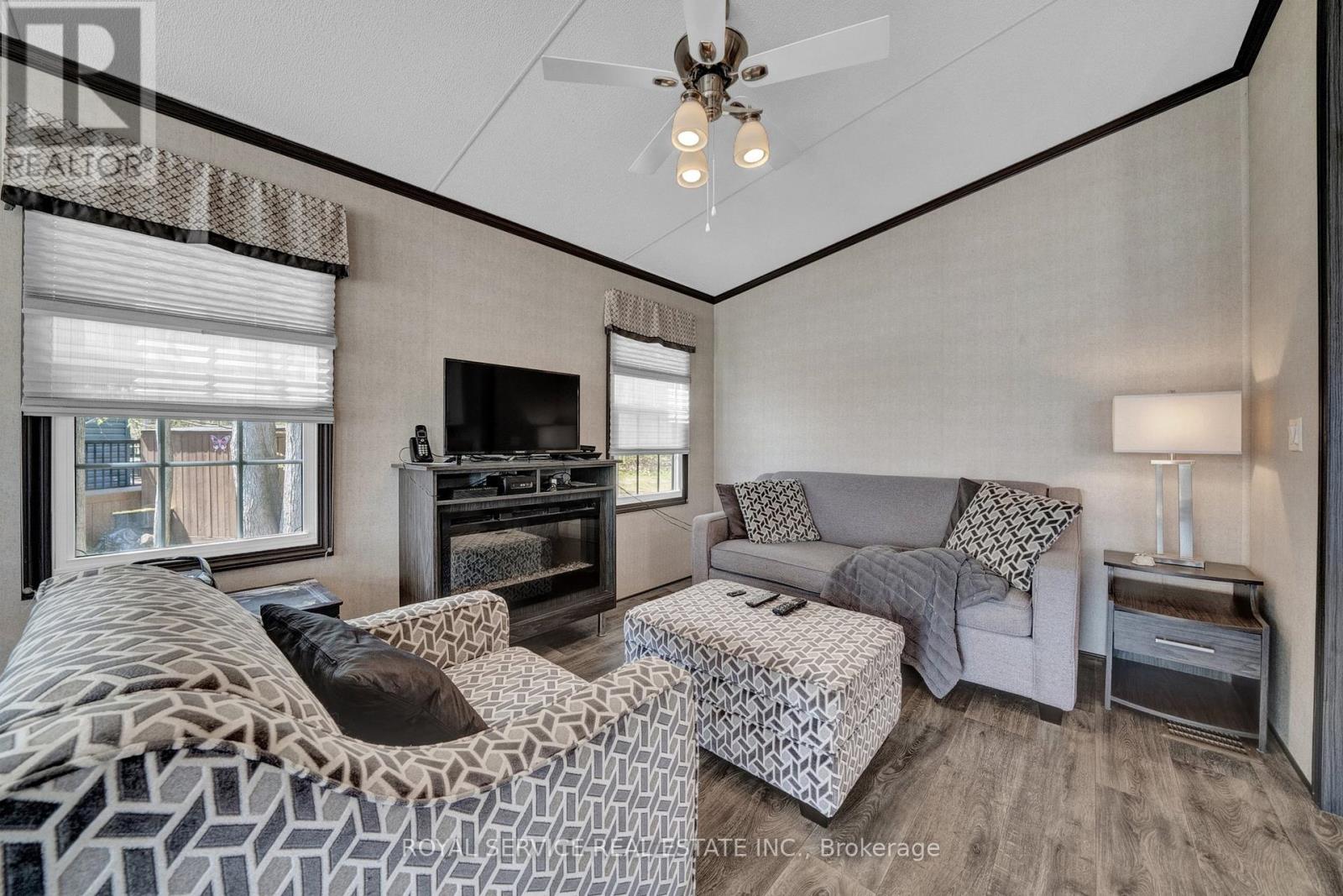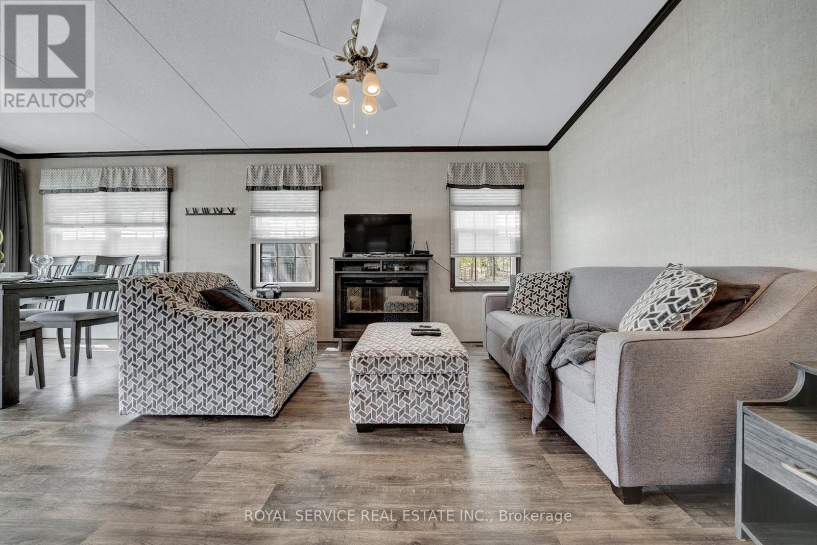 Opportunity is Knocking, this is an INCREDIBLE Value! Imagine summer mornings with coffee on the deck, afternoons on the golf course, and evenings around the firepit. Welcome to 66 Cherry Hill Lane in the Kawarthas located at beautiful Bellmere Winds Golf Resort. This sought after Northlander Superior model was built in 2019 and first lived in by its current (and only) owners in 2021. It offers a turn-key 3 season escape from May to October. Lovingly maintained and never rented, this cottage comes fully furnished, has 3-bedrooms (sleeps up to 8 people) and 2 full bathrooms. It delivers an inviting 800 sq ft of open-concept living space nestled on a rare pie-shaped lot backing onto trees for added privacy. Inside, enjoy a bright and modern kitchen with island seating and full-size appliances, a cozy living room with fireplace and pull-out couch, and a spacious primary suite with a queen bed, double closet, and its own ensuite bath. Two additional bedrooms including one with double bunk beds provide plenty of room for guests or the grandkids.Step outside to a large deck with upgraded glass railings, perfect for BBQs or simply relaxation in full sun or in the shade of the hard top gazebo. The unit is equipped with a propane furnace, A/C, instant hot water, and even an outdoor heater for those crisp autumn nights. Bellmere Winds Resort offers more than just a cottage its a lifestyle! Your 2025 site fees ($10,875+HST) include four unlimited golf memberships, access to pools, splash pad, a sandy beach, and a full schedule of family-friendly resort activities. Additional conveniences include water, hydro, lawn care, parking, and access to internet service. Boat slips available for rent. Pet friendly.Ready to enjoy The Good Life by the Lake, wait no further, 66 Cherry Hill Lane is the opportunity you have been waiting for! Watch Virtual Tour & Schedule Your Showing Today! (id:61423)