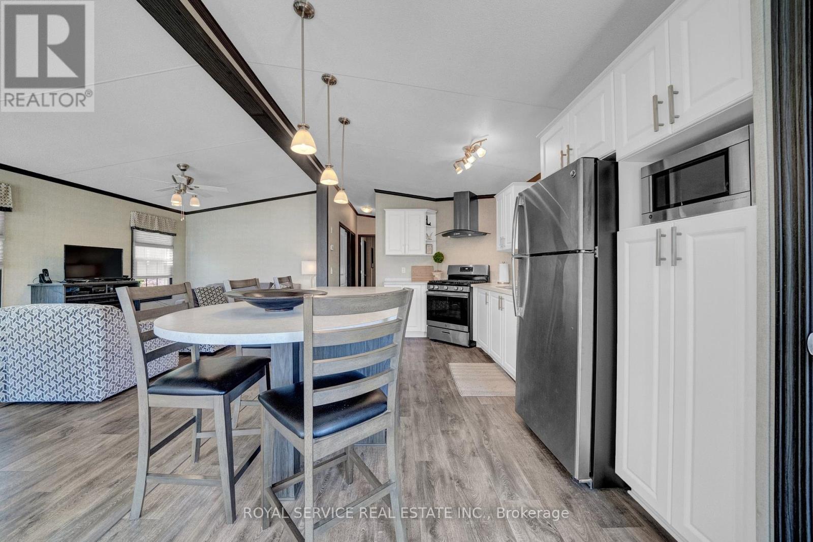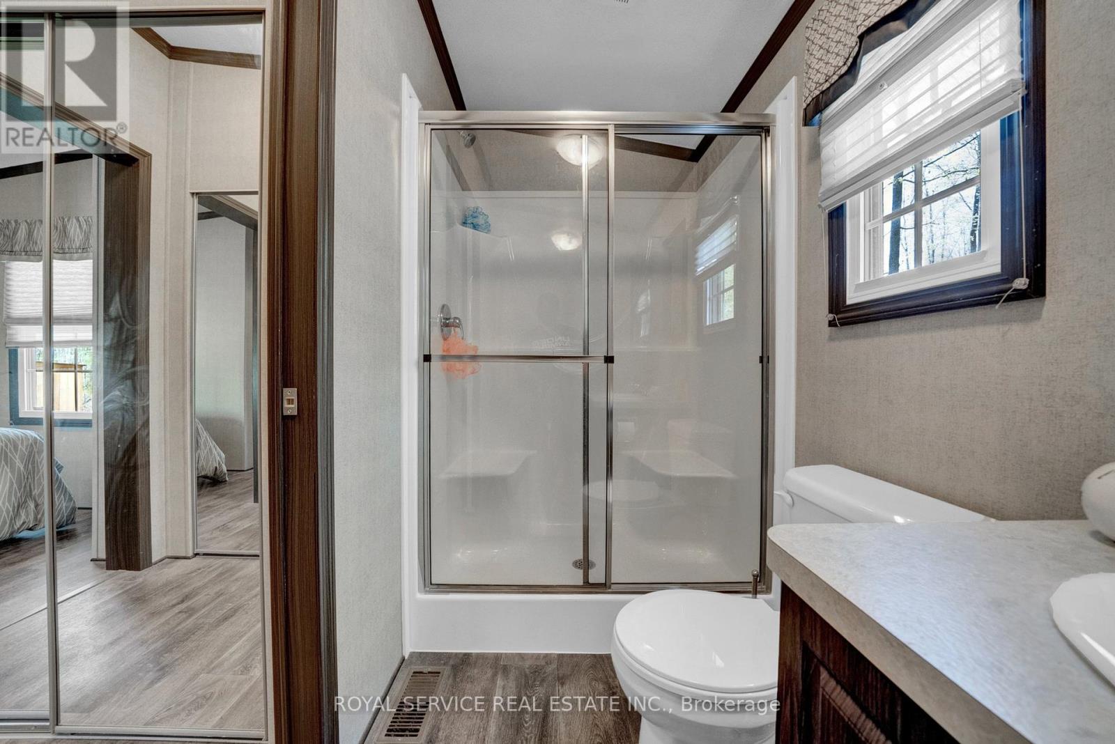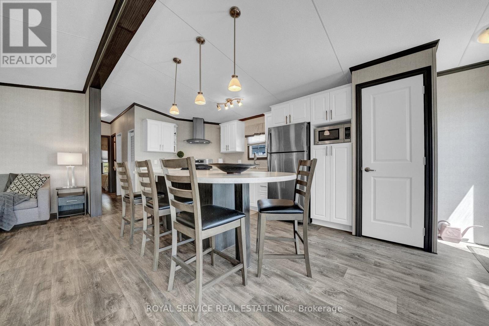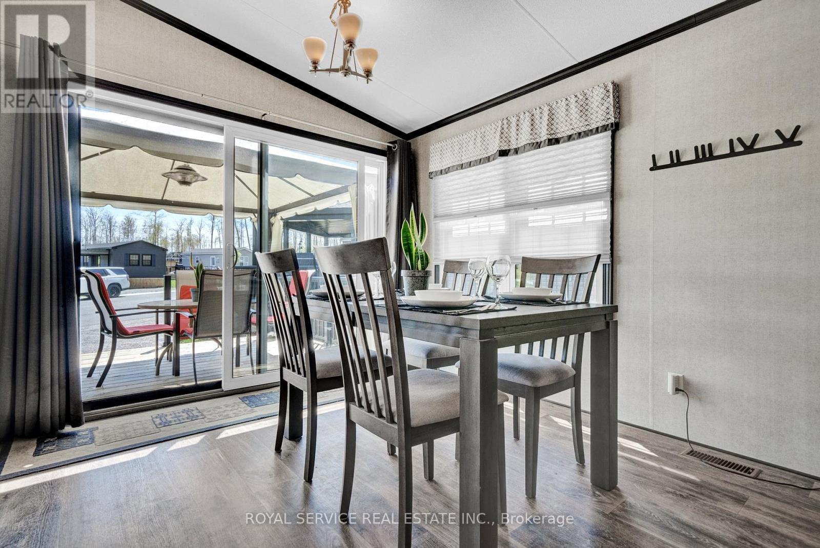 Opportunity is Knocking, this is an INCREDIBLE Value! Imagine summer mornings with coffee on the deck, afternoons on the golf course, and evenings around the firepit. Welcome to 66 Cherry Hill Lane in the Kawarthas located at beautiful Bellmere Winds Golf Resort. This sought after Northlander Superior model was built in 2019 and first lived in by its current (and only) owners in 2021. It offers a turn-key 3 season escape from May to October. Lovingly maintained and never rented, this cottage comes fully furnished, has 3-bedrooms (sleeps up to 8 people) and 2 full bathrooms. It delivers an inviting 800 sq ft of open-concept living space nestled on a rare pie-shaped lot backing onto trees for added privacy. Inside, enjoy a bright and modern kitchen with island seating and full-size appliances, a cozy living room with fireplace and pull-out couch, and a spacious primary suite with a queen bed, double closet, and its own ensuite bath. Two additional bedrooms including one with double bunk beds provide plenty of room for guests or the grandkids.Step outside to a large deck with upgraded glass railings, perfect for BBQs or simply relaxation in full sun or in the shade of the hard top gazebo. The unit is equipped with a propane furnace, A/C, instant hot water, and even an outdoor heater for those crisp autumn nights. Bellmere Winds Resort offers more than just a cottage its a lifestyle! Your 2025 site fees ($10,875+HST) include four unlimited golf memberships, access to pools, splash pad, a sandy beach, and a full schedule of family-friendly resort activities. Additional conveniences include water, hydro, lawn care, parking, and access to internet service. Boat slips available for rent. Pet friendly.Ready to enjoy The Good Life by the Lake, wait no further, 66 Cherry Hill Lane is the opportunity you have been waiting for! Watch Virtual Tour & Schedule Your Showing Today! (id:61423)