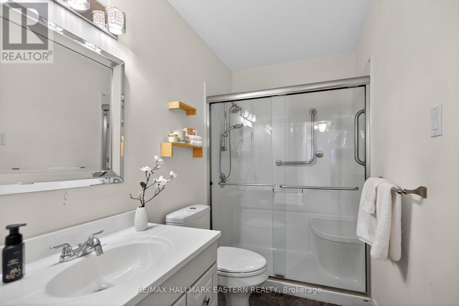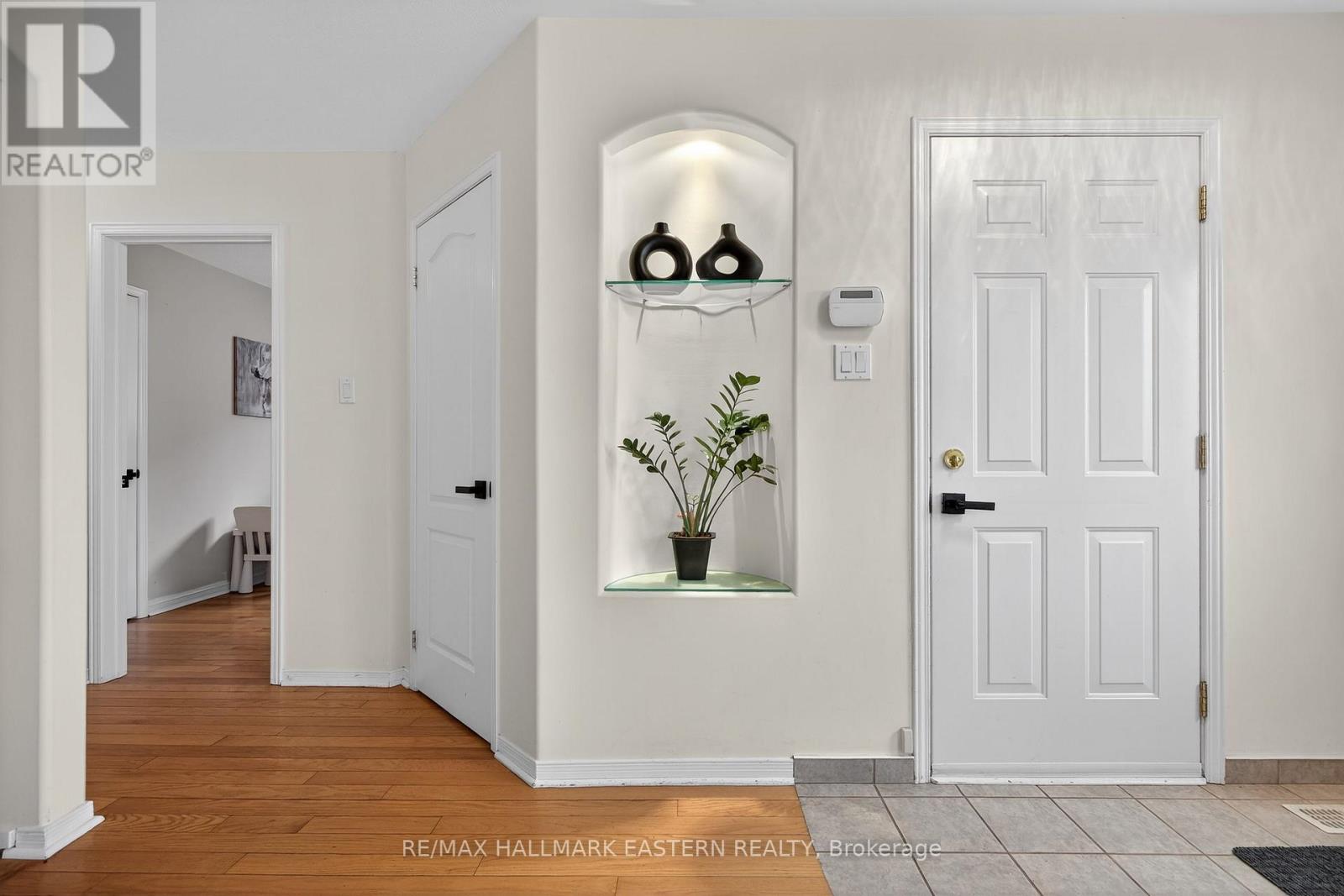 Brick bungalow backing directly onto Corrigan Hill Park with no rear neighbours.Welcome to 664 Trailview Drive, a beautifully maintained home located on a quiet street at the top of the hill in Peterborough's desirable southeast end, just minutes to Highway 115 for an easy commute to Durham Region and the GTA.The main floor features hardwood flooring throughout the principal living areas and a bright kitchen with granite countertops and a centre island, creating a comfortable and functional space for everyday living and entertaining. Two bedrooms and a full bathroom complete the main level, with the bathroom offering a spacious walk-in shower with grab bars for added comfort and accessibility.The finished lower level provides excellent additional living space with a cozy gas fireplace, two additional bedrooms, a second bathroom, and plenty of room for a family room, games area, or guest accommodations.Step outside to a beautifully landscaped backyard retreat featuring a tiered stone patio, mature perennial gardens including roses and peonies, and a fully fenced yard backing directly onto the wooded trails of Corrigan Hill Park, offering exceptional privacy and a peaceful natural setting.Additional highlights include an attached garage and a full backup generator for added peace of mind. (id:61423)