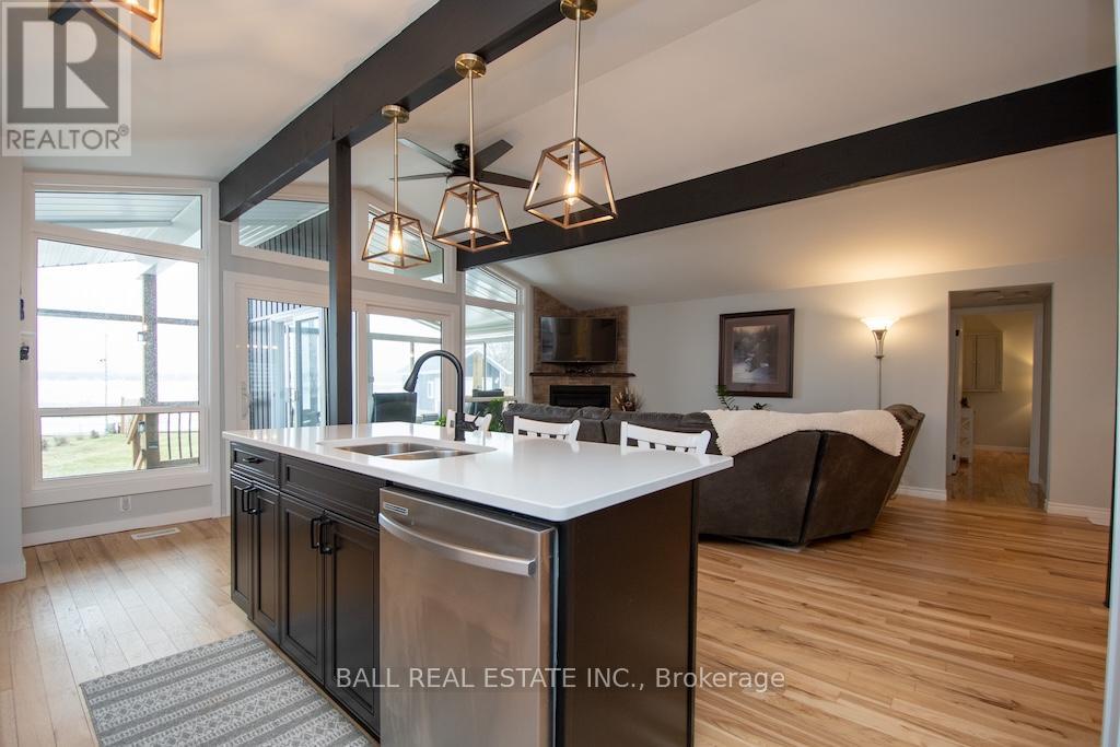 Welcome to this charming, fully renovated year-round waterfront bungalow on beautiful Pigeon Lake, offering 75 feet of prime western exposure-perfect for breathtaking sunsets. Set on a deep, spacious lot, this property provides plenty of room to relax, entertain, and enjoy lakeside living in every season. This adorable, level-entry home has been extensively updated within the past four years, showcasing quality upgrades both inside and out. Featuring 3 bedrooms and 2 stylish 3-piece bathrooms, the bright open-concept layout includes a modern kitchen, living, and dining area with a vaulted ceiling. Main floor laundry and a cozy propane fireplace add comfort and convenience. Unwind year-round in your private hot tub room, the perfect space to relax after a day on the water or winter activities. Step outside to a covered deck and sunroom, ideal for taking in the peaceful surroundings. The property also features an insulated detached garage, shed, patio, sand beach, fire pit, and private dock. Located on a municipally maintained year-round road, this home offers easy access in all seasons. Enjoy boating on the Trent-Severn Waterway and excellent fishing right at your doorstep. Shows to perfection, move in and enjoy waterfront living at its finest, all year long. (id:61423)