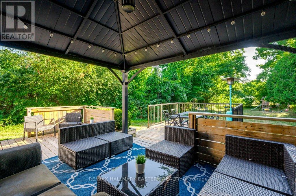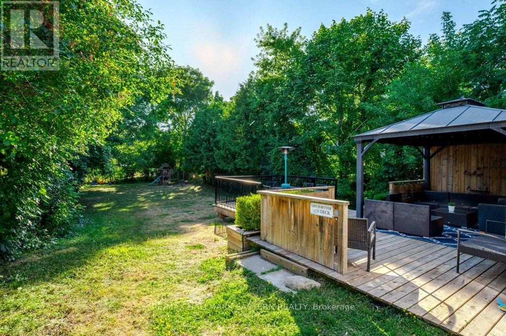 Nestled in the heart of Peterborough's sought-after East City, this charming 3-bedroom bungalow offers a lifestyle of walkable convenience and family comfort. Bathed in natural light, the main floor features hardwood floors in the living room and a smooth, easy-flowing layout with a cozy, welcoming vibe. The fully finished basement boasts high ceilings and a large recreation room, plus a versatile bonus room with an electric fireplace ideal for a home office, hobby space, or extra guest room. Ample storage throughout adds to the homes practicality. Outside, the private, deep backyard invites relaxation or entertaining with tiered decking and a stylish metal gazebo. Whether you're a first-time buyer or ready to downsize, this home delivers everything you need to embrace the best of East City living. Just steps from local shops, dining, the river, parks, and trails, you'll love the walkable lifestyle this vibrant community offers. Nothing fancy, just solid, comfortable living in a neighborhood you'll be proud to call home. (id:61423)
