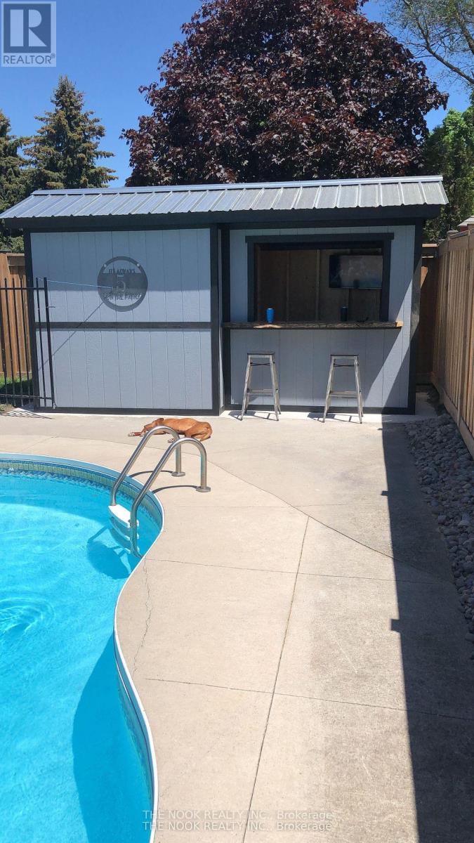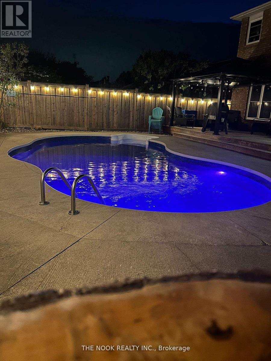 Welcome to this all-brick home featuring 4+1 bedrooms, 4 bathrooms, a double-car garage, an inground pool, & a layout designed for comfort, style, & effortless everyday living. The heart of the home is the kitchen, complete with a centre island perfect for meal prep, casual dining, or gathering with friends & family. Ample counter space & cabinetry offer both functionality & style, while the open layout flows seamlessly into the family room with a gas fireplace, making it easy to cook, entertain, & stay connected. The dining room is ideal for hosting dinner parties, while the living room provides a cozy spot to relax or watch TV. A convenient mudroom with direct access to both the garage & the side of the house makes daily life easier, offering the perfect drop zone for backpacks, shoes, & seasonal gear, while also featuring main-level laundry for added everyday convenience & efficiency. The upper level features 4 generous-sized bedrooms & newly updated bathrooms. The primary bedroom includes a dream walk-in closet offering exceptional storage & functionality. The 5-piece ensuite features a stand-up shower & a separate tub designed for relaxation-your own private retreat at the end of the day. The basement is a true extension of the living space & offers incredible versatility. It features a large entertainment area perfect for family movie nights or gatherings, an additional bedroom with a walk-in closet, & a convenient 3-piece bathroom ideal for guests or a teen retreat. Plus, there is a second multi-use room that can be customized as a home gym, office, hobby room, or playroom-tailored to your lifestyle needs. Step outside to your private oasis featuring a resort-inspired cabana area, an expansive deck with gazebo & a kidney-shaped inground pool, perfect for entertaining, relaxing, & creating lasting memories with friends & family. The front yard is equipped with an irrigation system, ensuring easy maintenance & lush curb appeal throughout the seasons. (id:61423)