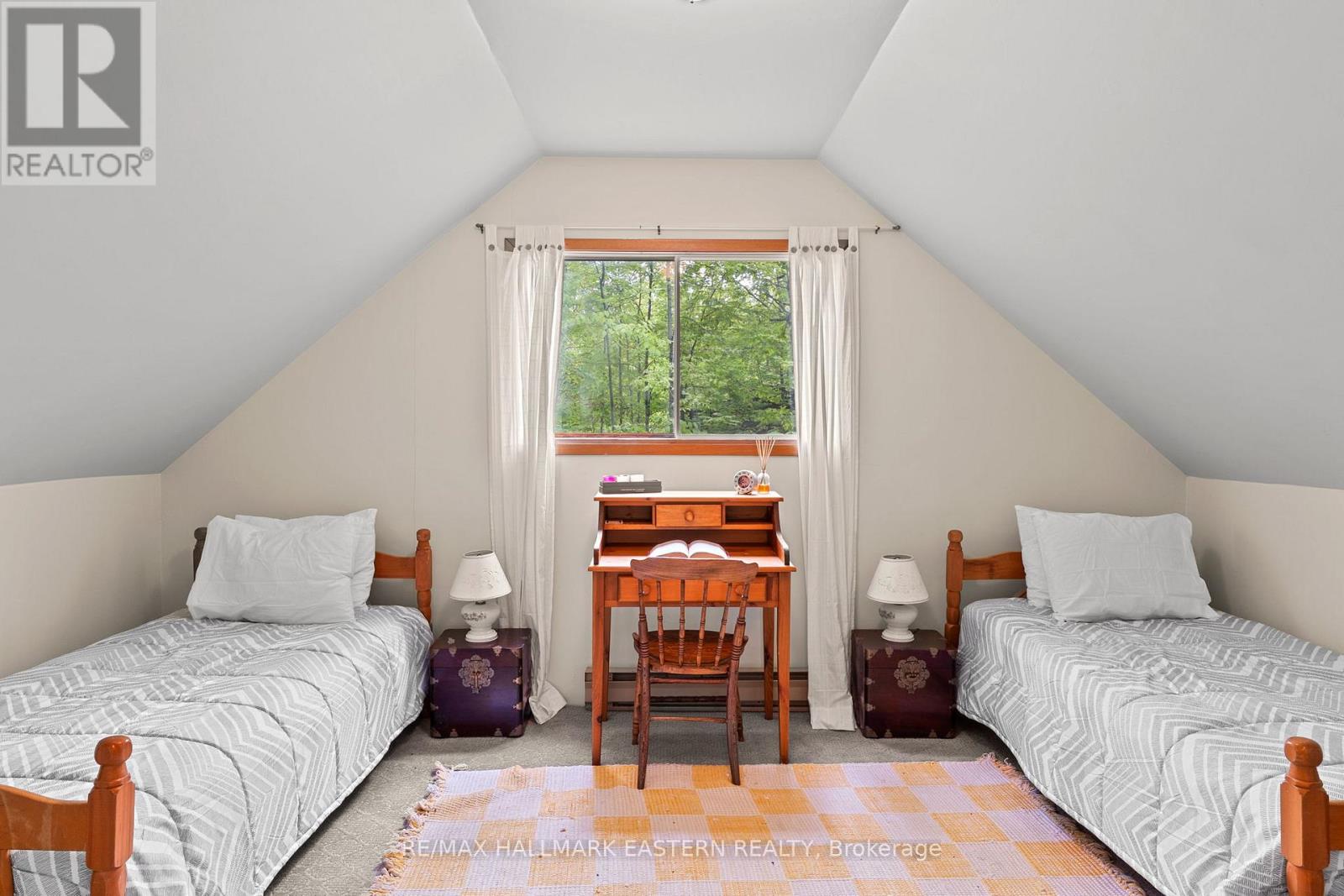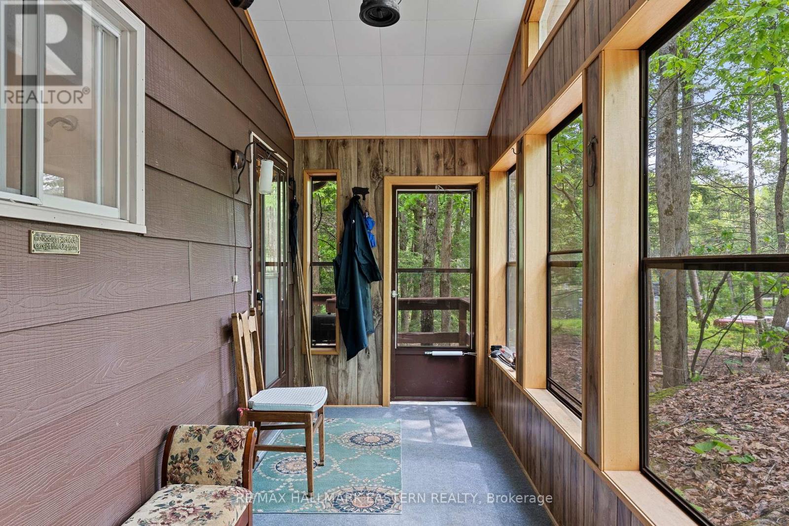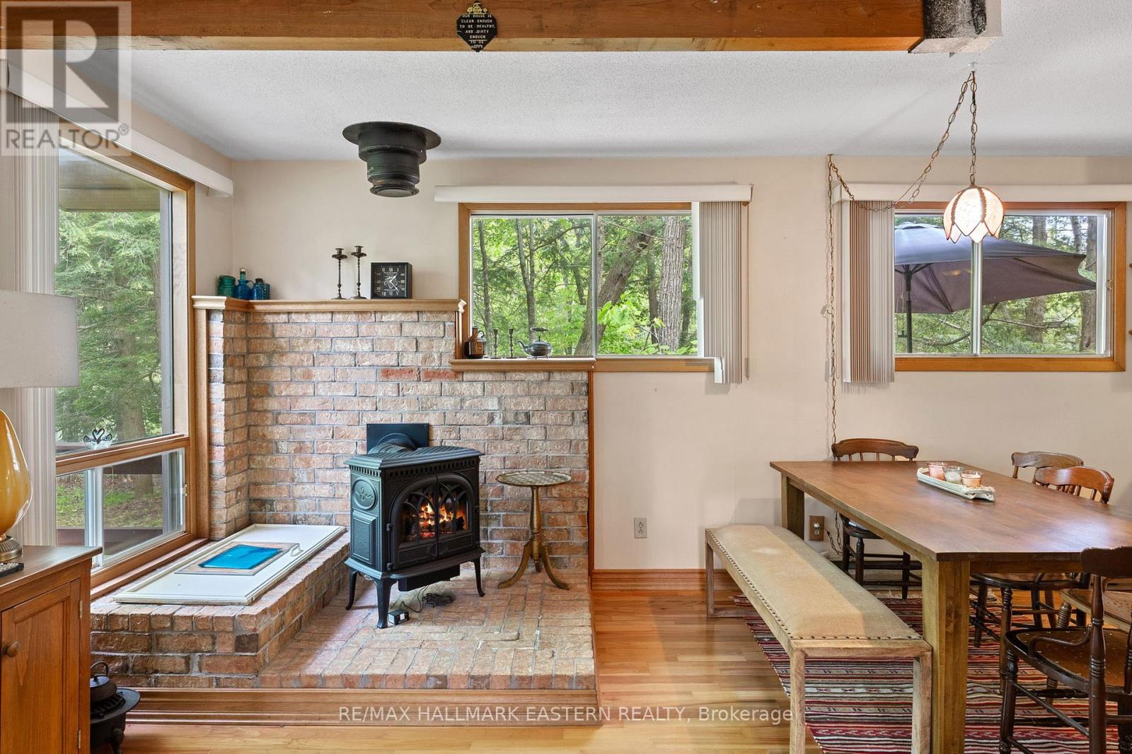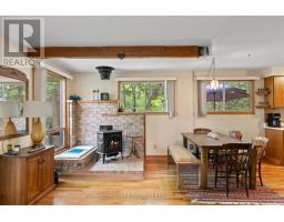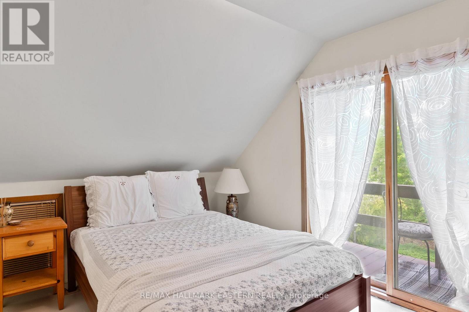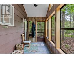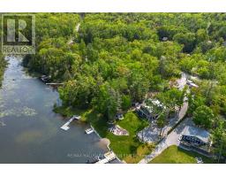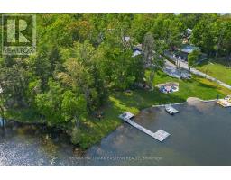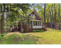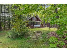 Welcome to a private lakeside escape on Big Bald Lake, part of the sought-after Trent-Severn Waterway, offering access to five lakes without the need for locking. Nestled on a beautifully treed lot with 150' of shoreline, this four-season chalet-style cottage delivers exceptional privacy and a gentle, level approach to the water's edge. Inside, you'll find a warm and inviting open-concept layout with 3 bedrooms and a full 4-piece bath. The kitchen, dining and living areas are accented with rich wood finishes and anchored by a cozy propane fireplace, perfect for year-round enjoyment. A bright glass sunroom captures peaceful lake views, while the spacious deck and dock invite effortless outdoor living. The lakeside primary bedroom features its own walkout balcony, an ideal spot to start your day with coffee overlooking the water. Thoughtful updates include a new water pump and UV system (2024) and a newly reshingled roof (2025), offering added peace of mind. Directly across the lake, 283 acres of privately owned managed forest provide a serene, untouched backdrop. For those seeking a bit of adventure, a nearby jumping rock awaits, while the crystal-clear turquoise waters of Sandy Lake Beach are just minutes away for exceptional swimming and paddling. (id:61423)