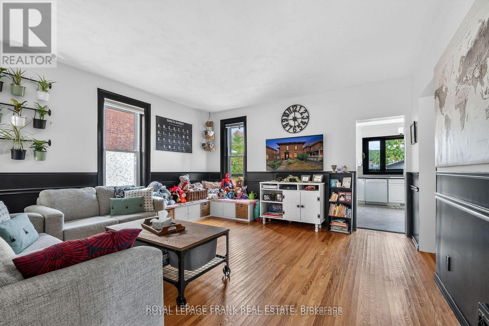 Looking for a 2-storey family home near schools, parks, and all the conveniences of downtown? Welcome to 69 Peel Street, ideally located within walking distance of Lindsay's vibrant core. This updated 4-bedroom, 2-bath century home radiates pride of ownership throughout. A thoughtful addition to the original brick structure has created a spacious, modern kitchen filled with natural light from massive south-facing windows that overlook the deep, fully fenced backyard complete with a kids play area. The main floor offers an airy, open feel with a family room, living room featuring a stylish new fireplace, formal dining room, and a convenient 3-piece bath. Gleaming original hardwood floors bring timeless character to the space. Main floor laundry too! Upstairs, you'll find four comfortable bedrooms and a 4-piece bath with a classic clawfoot soaker tub perfect for unwinding. Recent updates include upgraded attic insulation, central air (2021), new shingles (2024), Kitchen windows (2024), upstairs office /bedroom windows (2024), new siding (2024), and new soffit, fascia, and eaves (2024).The oversized detached 1.5-car garage provides room for your vehicle plus some tools and toys. (id:61423)