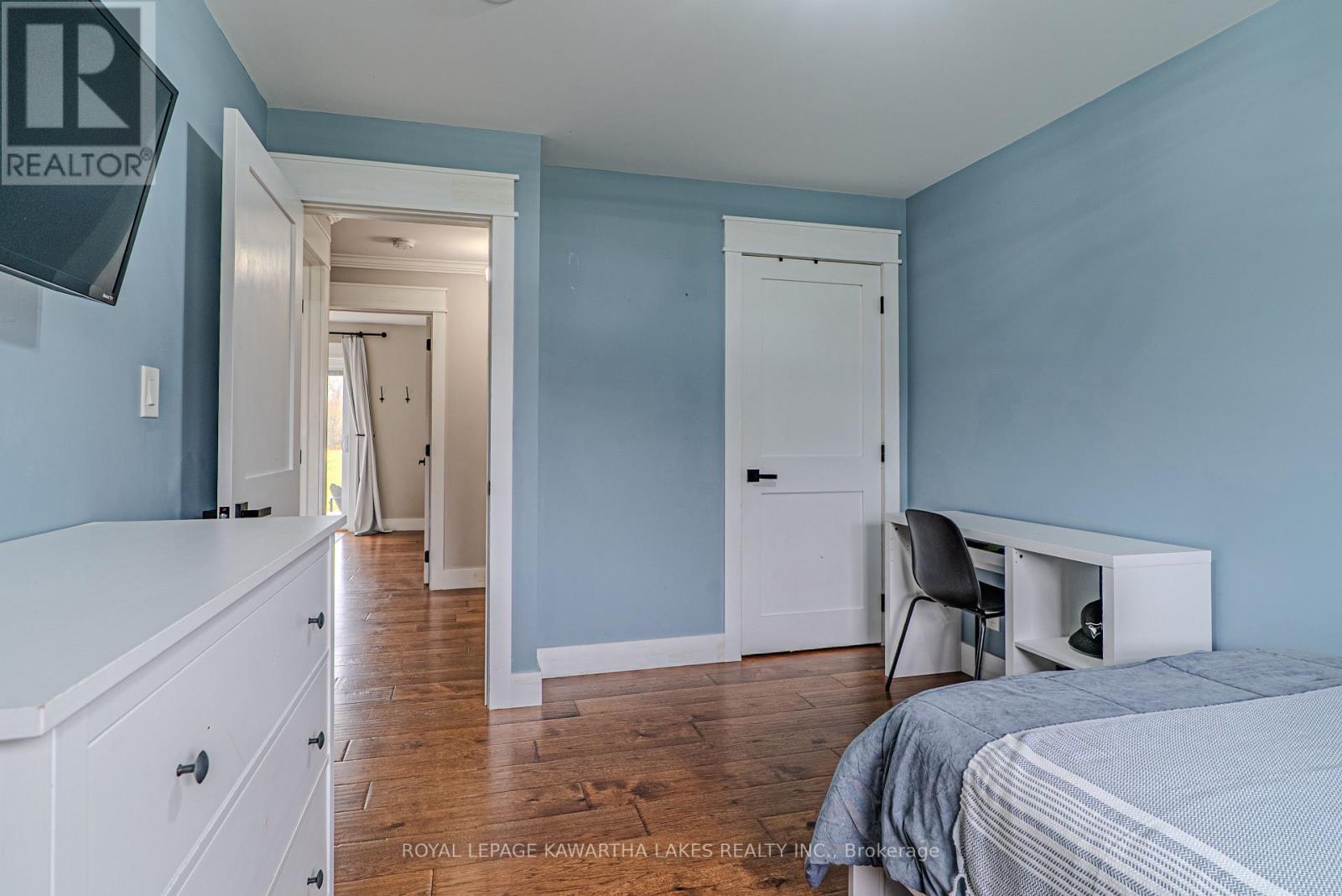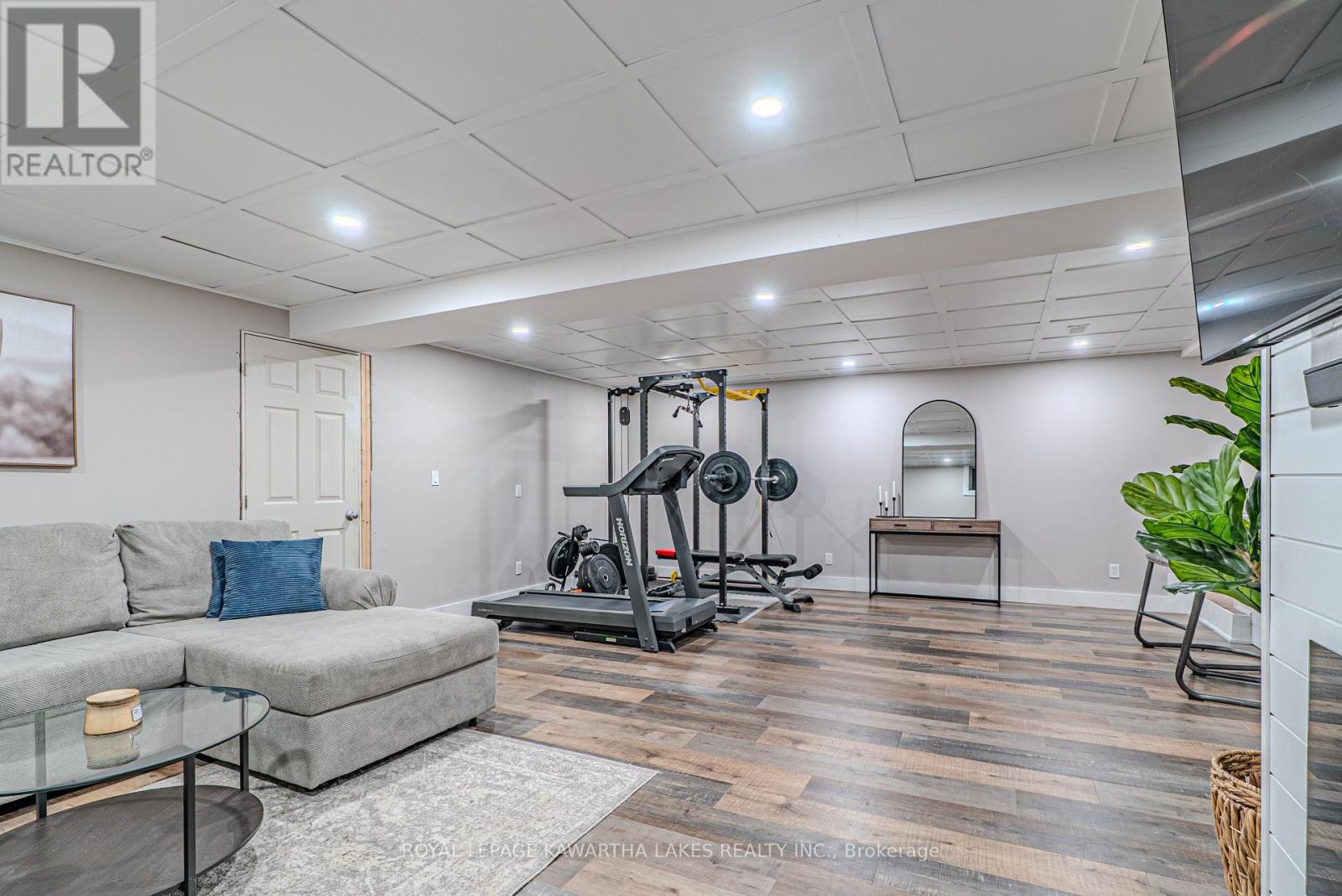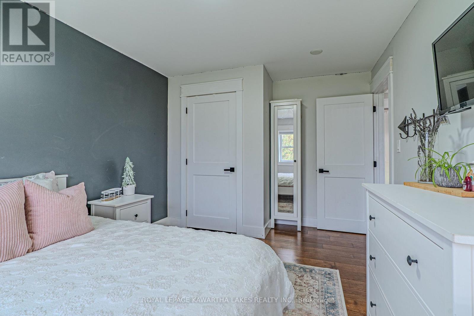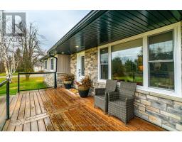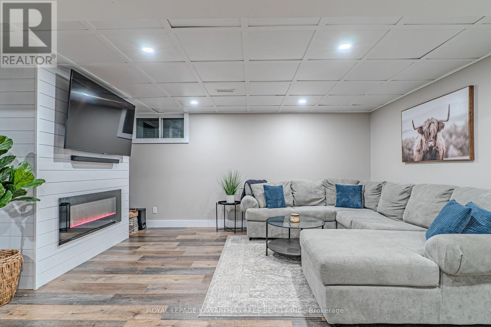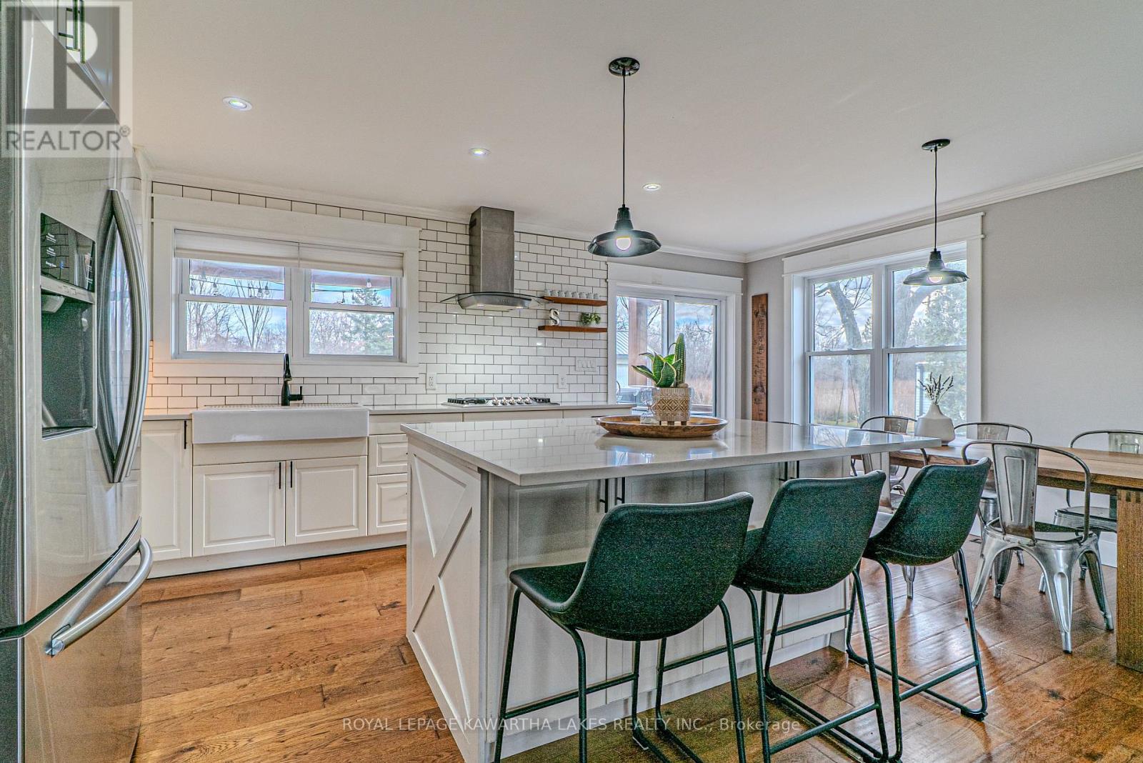 Welcome to this spacious 3+2 bedroom bungalow set on just over an acre, offering the privacy of country living just outside of Woodville. The main floor features a bright living room with a propane fireplace, a modern kitchen with quartz countertops, a centre island, and a walkout to the large covered deck, seamlessly combined with the dining area. A 5-piece bath serves the level, along with a generous primary bedroom boasting wall-to-wall closets and a walkout to the deck, two additional bedrooms, and a family room with yard access and a propane stove. The finished lower level adds exceptional flexibility with two additional bedrooms, a 4-piece bath with laundry, a spacious rec room with an electric fireplace, and ample storage and utility space. Outside, enjoy 1.04 acres of open land complete with a 5.8m x 5.5m detached garage, above-ground pool, metal roof, fire pit area, and a wide covered deck ideal for year-round entertaining. A fantastic rural property with room for the whole family! (id:61423)