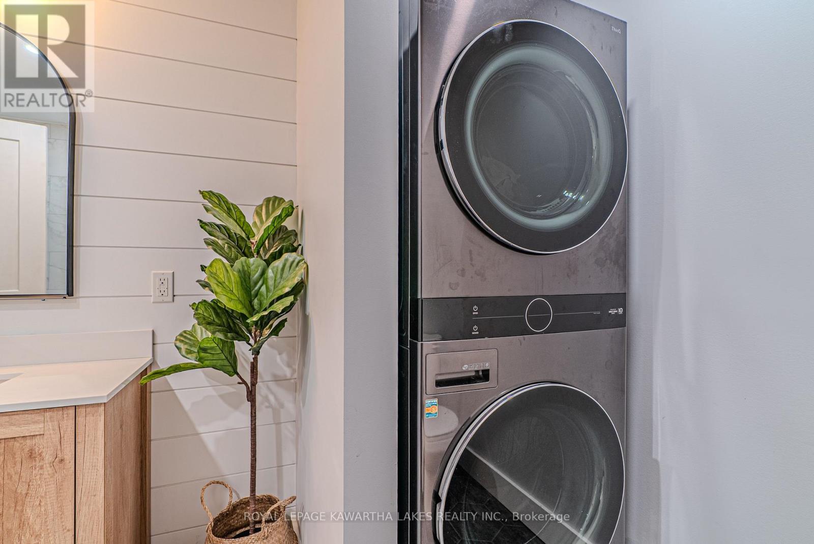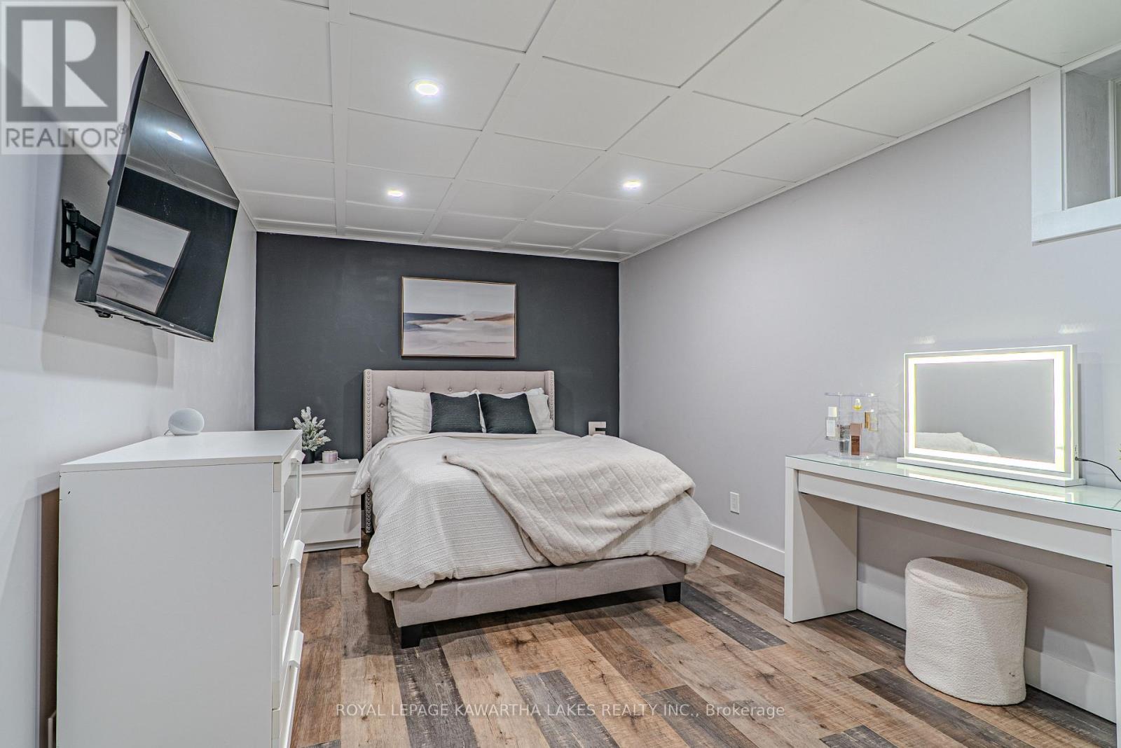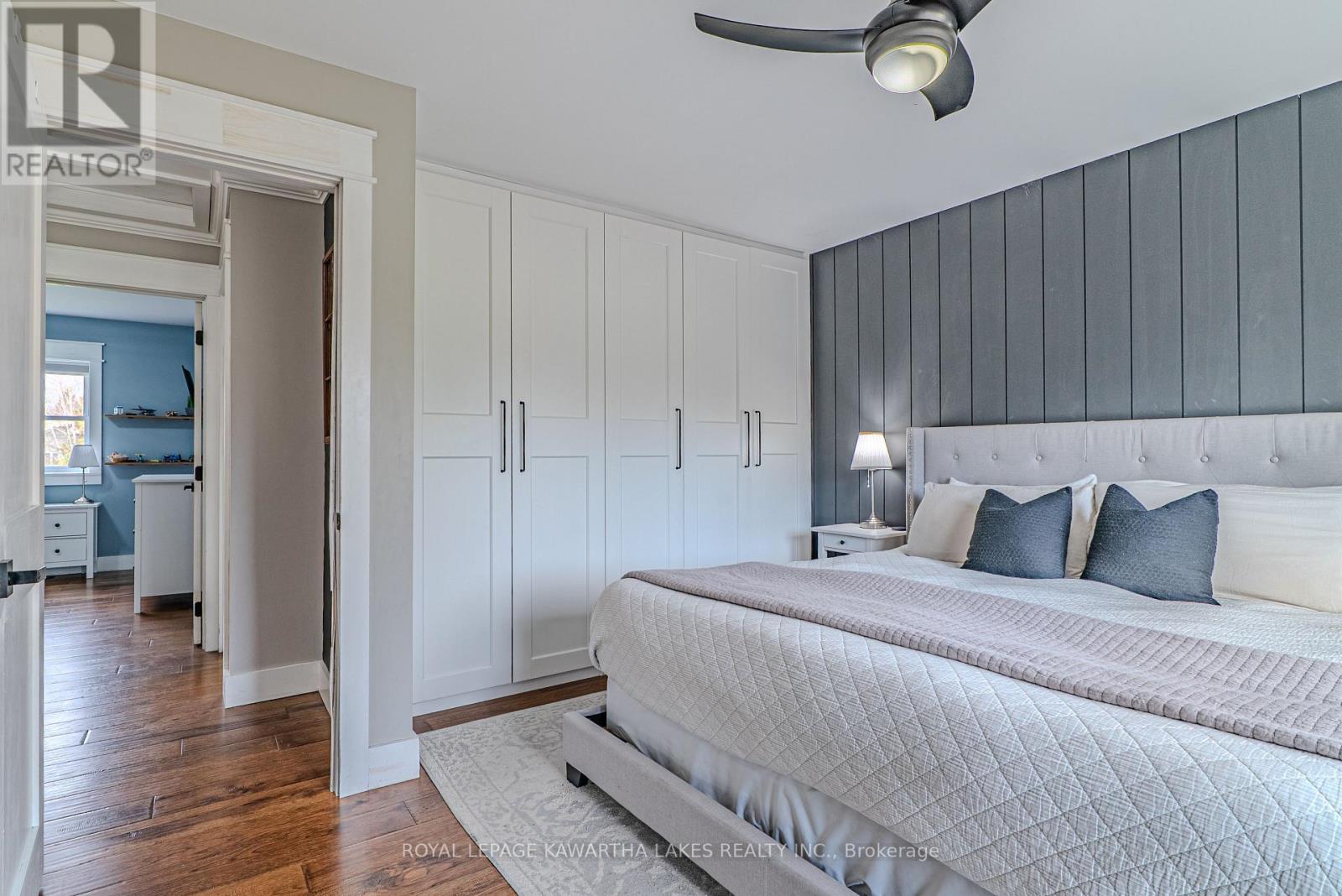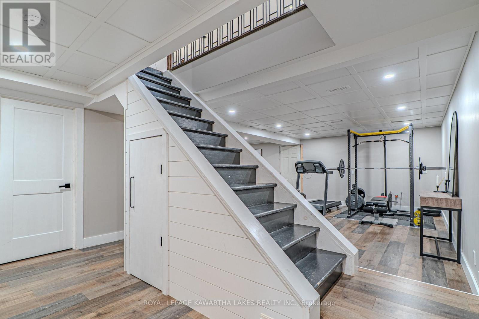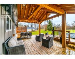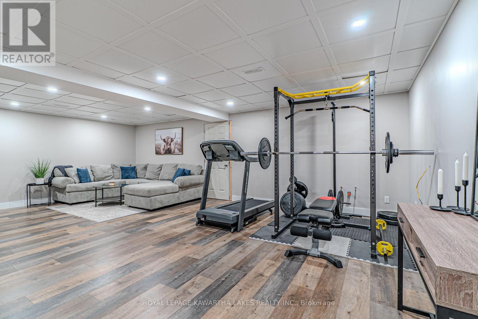 Welcome to this spacious 3+2 bedroom bungalow set on just over an acre, offering the privacy of country living just outside of Woodville. The main floor features a bright living room with a propane fireplace, a modern kitchen with quartz countertops, a centre island, and a walkout to the large covered deck, seamlessly combined with the dining area. A 5-piece bath serves the level, along with a generous primary bedroom boasting wall-to-wall closets and a walkout to the deck, two additional bedrooms, and a family room with yard access and a propane stove. The finished lower level adds exceptional flexibility with two additional bedrooms, a 4-piece bath with laundry, a spacious rec room with an electric fireplace, and ample storage and utility space. Outside, enjoy 1.04 acres of open land complete with a 5.8m x 5.5m detached garage, above-ground pool, metal roof, fire pit area, and a wide covered deck ideal for year-round entertaining. A fantastic rural property with room for the whole family! (id:61423)