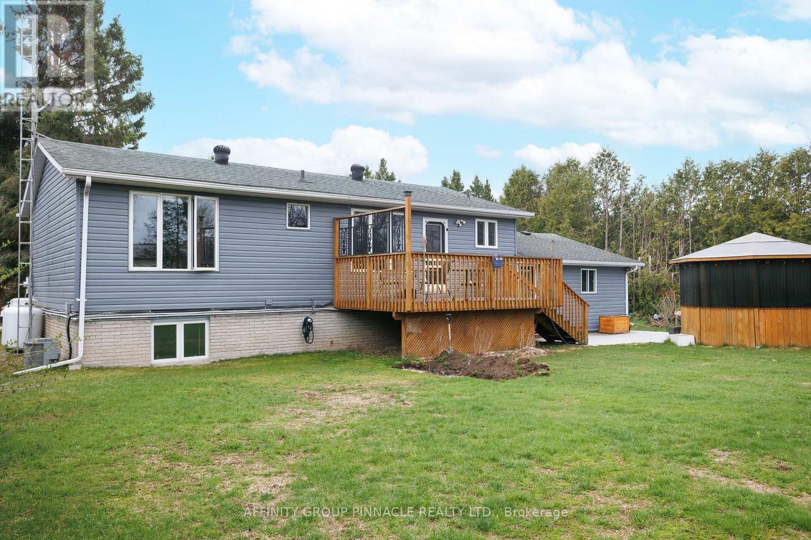 This charming 2+2 bedroom, 2 bath home is situated on a quiet, family-friendly cul-de-sac in a beautiful country setting. The bright main level features two bedrooms and spacious living areas, perfect for comfortable family living. The property includes a large garage with direct access to the home, adding convenience and excellent storage. The flexible layout offers an in-law suite with a separate entrance to the basement, a three-piece bath with a walk-in shower and rough-in for a second kitchen. The basement is bright, with large above-grade windows allowing plenty of natural light. Additional features include an insulted and heated bunkie, providing extra space for guests or a home office, as well as a gazebo with a hot tub for relacing and entertaining outdoors. (id:61423)