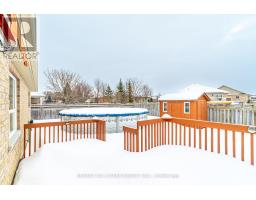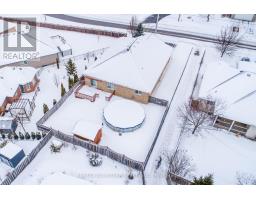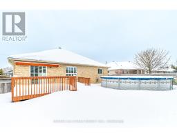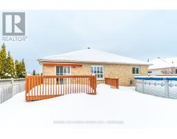 Spacious all brick Lindsay bungalow approximately 1640 sqft. Original Builder's upgraded model home. Well located oversized lot near the Logie Street Park and paved riverfront trail. Covered front porch, fully fenced yard with above ground pool and custom shed. Open concept modern designed home with towering vaulted ceilings, hardwood flooring, both quartz tops and custom made California shutters throughout. Main floor laundry (includes pedestal washer/dryer) and double garage entry. Primary bedroom with walk in closet, ensuite with soaker tub and separate big tiled shower. Vastly enhanced kitchen with island and all appliances. Huge unfinished basement includes rough in for bath and/or kitchen. Roof reshingled, new eaves and facia all in 2024. (id:61423)