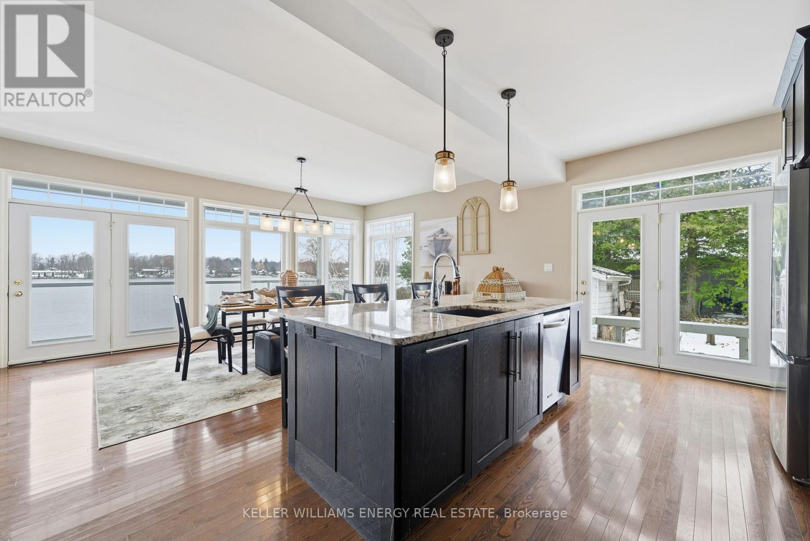 Welcome to this stunning 1+2 bedroom, 3 bathroom bungaloft nestled on the beautiful Trent Severn Waterway. Offering direct waterfront access and the ability to explore 5 lakes without passing through a single lock, this property is a true year-round retreat! Step inside through a spacious front entrance into an impressive open-concept layout with cathedral ceilings and wall-to-wall windows showcasing breathtaking water views. The main floor features a cozy fireplace, convenient laundry room, and seamless access to the wrap-around upper deck - perfect for entertaining or simply enjoying the Call of the Loons. The primary bedroom suite offers a private escape with a 3-piece ensuite and a walk-in closet, creating the perfect blend of comfort and functionality. The walk-out basement extends your living space, featuring a dry bar, ample storage, and direct access to the waterfront. Spend your days boating, fishing, or relaxing on your private dock, then enjoy skating or snowmobiling right from your backyard in the winter. Located in a mature, quiet neighbourhood, this home offers easy access to downtown Peterborough, PRHC hospital, and Hwy 115, while nearby golf courses and outdoor recreation make every day feel like a getaway. This Kawartha Lakes bungaloft delivers comfort, charm, and the perfect balance of relaxation and adventure. (id:61423)