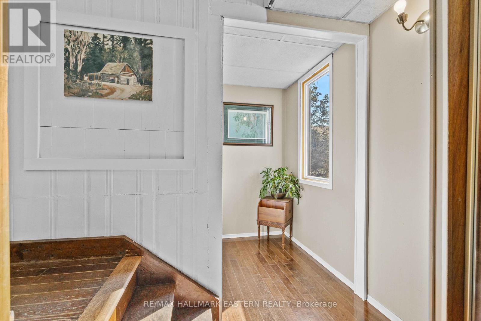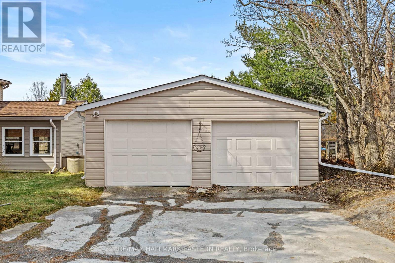 Nestled on a private 1.23-acre level and cleared lot, this charming country home offers the perfect blend of comfort, space, and rural tranquility. Featuring a detached double garage and a distinctive circular driveway set on exposed limestone bedrock, the property makes a striking first impression. The home offers a versatile 1+2 bedroom, 2-bath layout with an inviting open-concept main floor. The spacious living area flows seamlessly to a walkout deck, ideal for enjoying the peaceful surroundings. A generous primary bedroom includes a walk-in closet, providing both comfort and convenience. A standout feature is the attached sunroom, finished with warm tongue-and-groove pine and complete with a cozy freestanding woodstove-perfect for year-round enjoyment. For those seeking additional space or future potential, an adjacent 1.29-acre treed lot is also available for purchase. Offering excellent privacy, this separately deeded parcel presents a unique opportunity, though buyers should note that an entrance permit and servicing will be required. (id:61423)