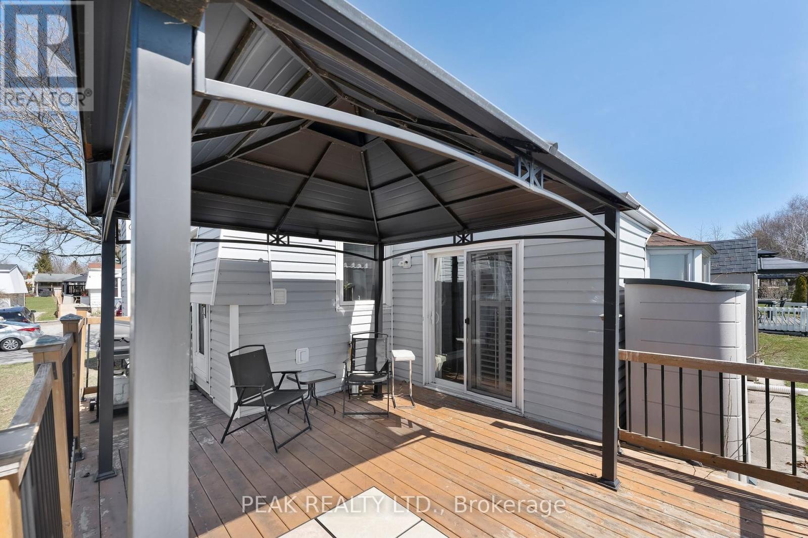 Exceptional Lakeside Retirement Living in Wilmot Creek! Welcome to this beautifully updated 2-bedroom bungalow in the sought-after Wilmot Creek Adult Lifestyle Community. This bright and spacious home offers a sun-filled living room and cozy sunroom with bay windows and a gas fireplace. The renovated kitchen features modern finishes and ample storage - ideal for both daily living and entertaining.Step outside to your private backyard oasis with unobstructed views of Lake Ontario, complete with shaded seating areas - perfect for morning coffee or peaceful evenings by the water.Enjoy a vibrant, low-maintenance lifestyle with access to premium community amenities: indoor & outdoor pools, private golf course, pickle ball & tennis courts, clubhouse with organized events, on-site pharmacy, and salon. Located in a welcoming and active community, this home offers not just comfort, but a lifestyle you'll love. (id:61423)