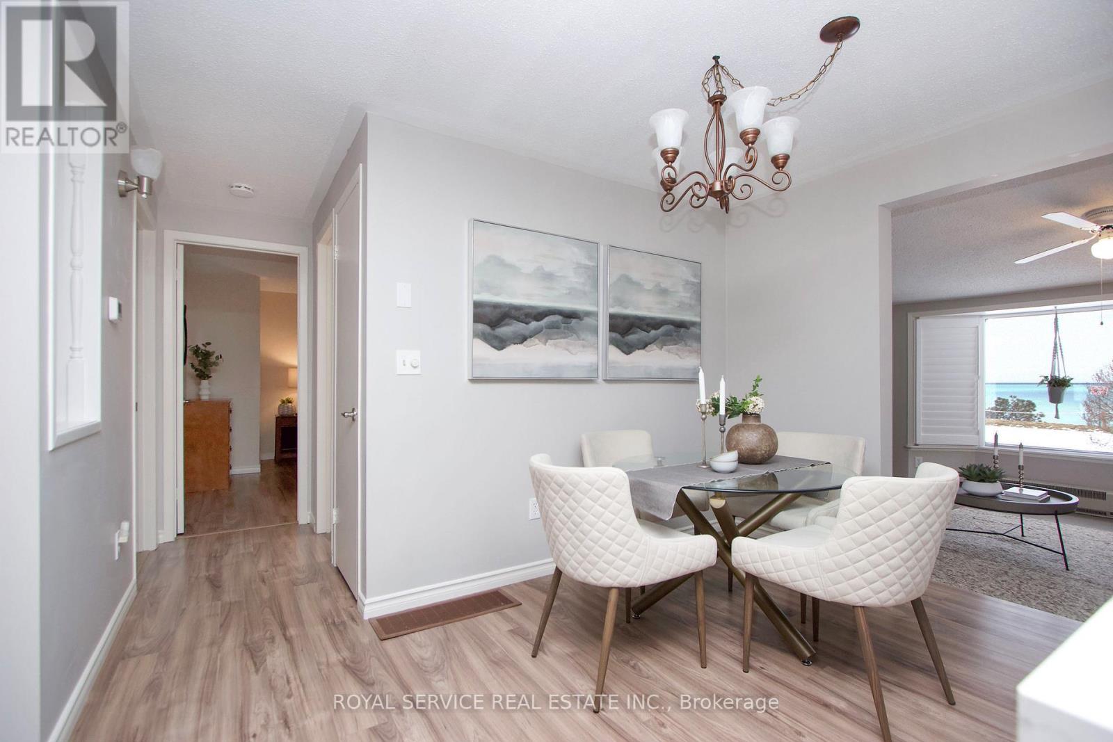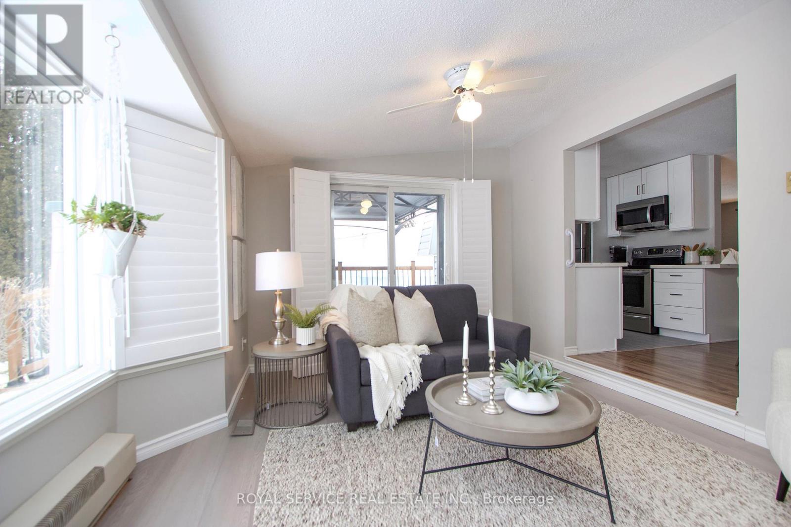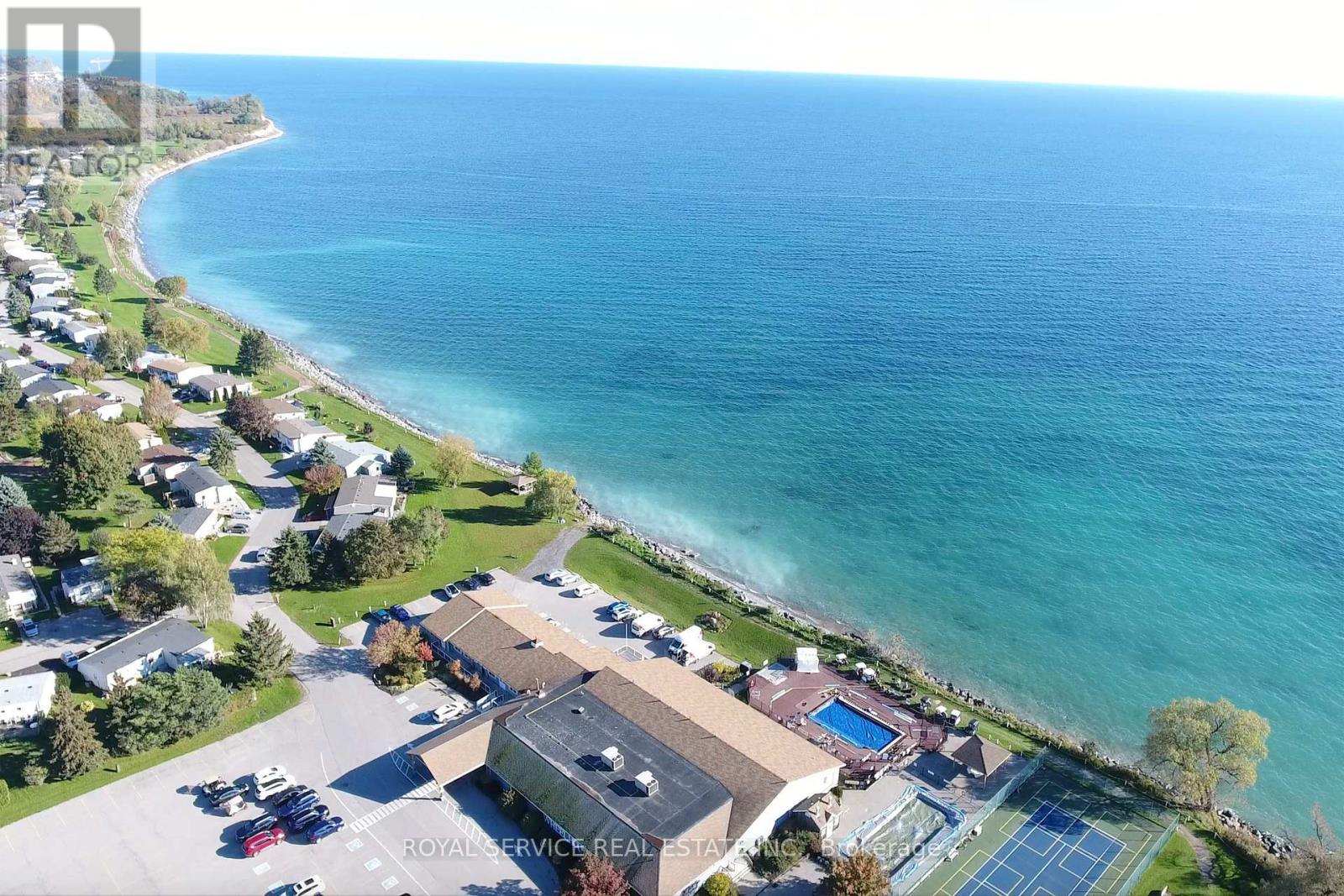 Welcome to life by the lake in the highly sought-after Wilmot Creek gated community, nestled along the picturesque shoreline of Lake Ontario. This charming 2-bedroom bungalow offers a rare opportunity to enjoy waterfront living in a peaceful, resort-style setting. Designed with an open layout, the home welcomes you into a spacious living room featuring a large picture window and cozy gas fireplace-perfect for relaxing and entertaining. The bright galley kitchen showcases granite countertops, crisp white cabinetry, and stainless steel appliances, along with a convenient side door providing easy access to the yard. The kitchen flows seamlessly into the open dining area, creating an inviting space for everyday living. A stunning sitting room captures breathtaking lake views and offers a walk-out to your private deck-an ideal spot to enjoy your morning coffee or unwind while taking in the serene waterfront backdrop. The primary bedroom features a generous double closet and large window, while the second bedroom includes its own closet and picturesque views of the Lake. Residents of Wilmot Creek enjoy an exceptional adult lifestyle with an impressive array of amenities, including a community pool, tennis courts, golf course, pickle ball, sauna, hot tub, woodworking shop, billiards room, and more. With total monthly fees of $1,407.74-including property taxes-this is an opportunity to experience low-maintenance, resort-style living in a tranquil lakeside community. A rare chance to own your own waterfront retreat in one of Wilmot Creek's most desirable settings. (id:61423)
