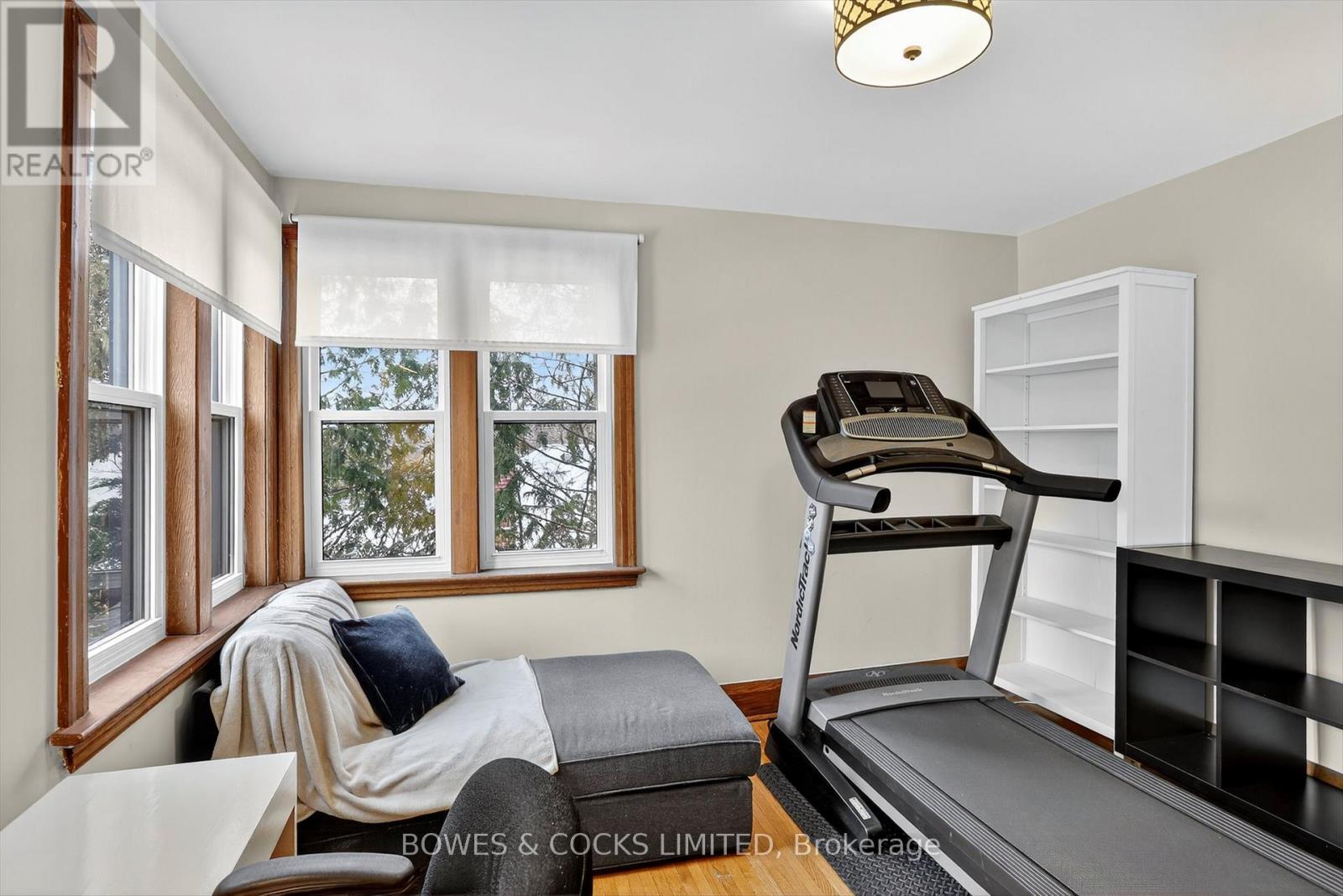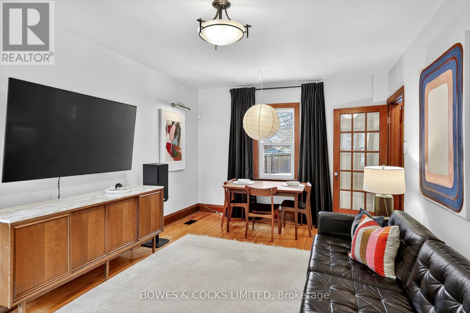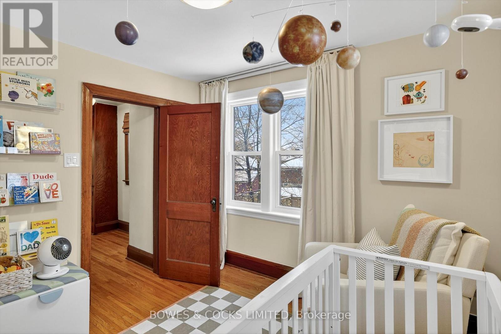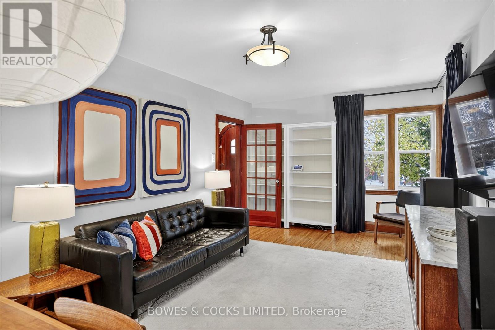 Nestled in the mature trees of Peterborough's historic "Old Teacher's College" neighbourhood, this midcentury gem is emblematic of an adventurous era in architectural design. The two storey all brick "International Style" design features a charming arched front door, corner windows, and a flat roof. Fully renovated in 2013, with updated furnace, electrical work, appliances, a new insulated roof, and new windows on the main and second levels, this home retains its original warm wood floors, trim, and historical details while enjoying the benefits of modern updates. The main floor contains an open living space on the north side, while the south side has alight-filled kitchen, a main floor laundry, and a 2 piece washroom. Going up the beautiful wide wooden stairs to the second floor reveals 3 comfortable bedrooms and an updated 4-piecewashroom.The basement currently serves as a generous storage area, and also features an attached one car garage which opens up to a driveway with space for two parked cars. The spacious back yard is bordered by mature maple trees with a newer premium fence and features tasteful gardens and hedge with a central patio perfect for socializing with friends and family. The restaurants and amenities of downtown, as well as the grocery stores and big box stores of Chemong Rd are close by, with Jackson and Bonnerworth parks just a short drive away. Come see this unique property today! (id:61423)