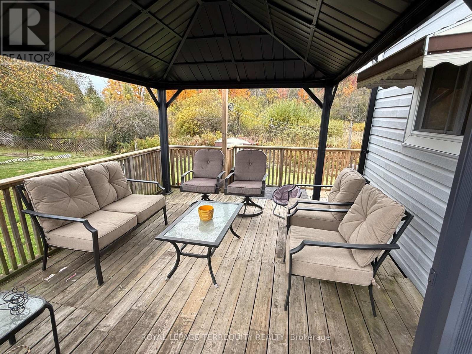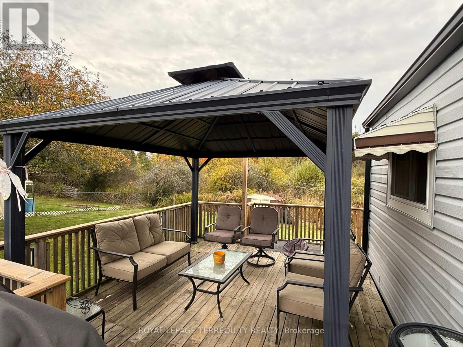 Welcome to Parkhill Estates! A Remarkably Affordable Opportunity for Year Round Living! This Large Open Concept Updated 3 Bedroom, 4pc Bath unit with Ensuite Laundry, New Furnace (2023), Central Air Conditioning, Mostly New Windows (2021) New flooring (2021), Newer White Kitchen, Large Master Bedroom is located on A Double Lot surrounded by Professionally Landscaped Gardens & backs onto Green Space. This Unit has been Well Maintained. Requires Low maintenance. A very relaxing environment in a Park Setting! Three Garden Sheds provide an abundance of Storage. There is a Large Deck with Gazebo Overlooking the Yard and a 2nd Deck/Porch off the front door. The Foyer provides additional interior storage. Only minutes to Peterborough and All Amenities! Move in & Enjoy! (id:61423)