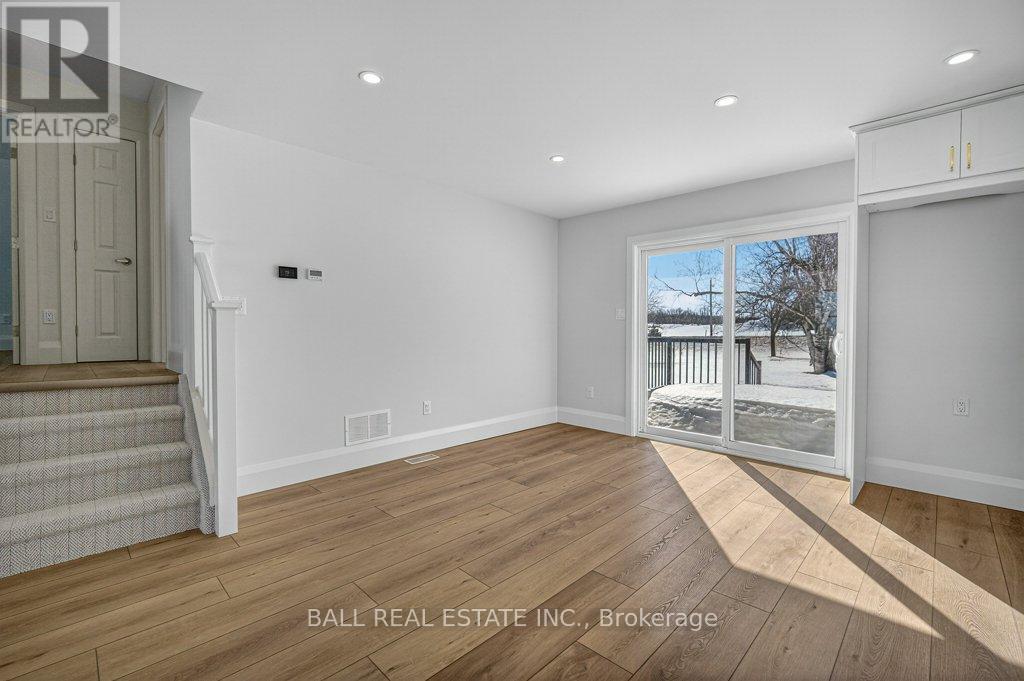 Lakeside Luxury Living in King's Wharf Estates on Pigeon Lake. Welcome to King's Wharf Estates, an exclusive executive subdivision consisting of 21 estate lots ranging from approximately 1-2 acres. This sought-after waterfront community offers residents a private dock within a beautiful beach park area on the Trent-Severn Waterway, located just minutes from your doorstep. Enjoy endless boating, fishing, swimming, and watersports with family and friends. Situated on a generous 1.85-acre lot with expansive views, this stunning home has been completely renovated down to the studs and rebuilt with exceptional craftsmanship and attention to detail. Offering more than 2,700 sq. ft. of finished living space and multiple walkouts, this home is designed for both comfortable living and entertaining. Step inside from the welcoming covered front porch into the spacious foyer that opens to a bright, open-concept kitchen, dining, and living area. The chef-inspired kitchen features abundant cabinetry, a large 6x8 island, quartz countertops, and a dining area with a walkout to the deck-perfect for outdoor entertaining. The great room offers plenty of space for family gatherings and relaxation. The home features 4 bedrooms, 3 bathrooms, a dedicated office, a spacious rec room with walkout, and a well-designed laundry/mudroom with ample cabinetry. The private primary suite is thoughtfully positioned away from the other bedrooms and includes generous closet space and a luxurious ensuite with a beautiful soaker tub. An oversized attached double-car garage provides ample space for vehicles and a workshop, with a second-level loft offering over 600 sq. ft. of additional space. Conveniently located just 10 minutes from the historic town of Bobcaygeon, where you will find medical services, shopping, dining, and entertainment. Only 1.5 hours from the GTA, this exceptional property offers the perfect blend of lakeside lifestyle and modern luxury. Make King's Wharf Estates your forever home (id:61423)