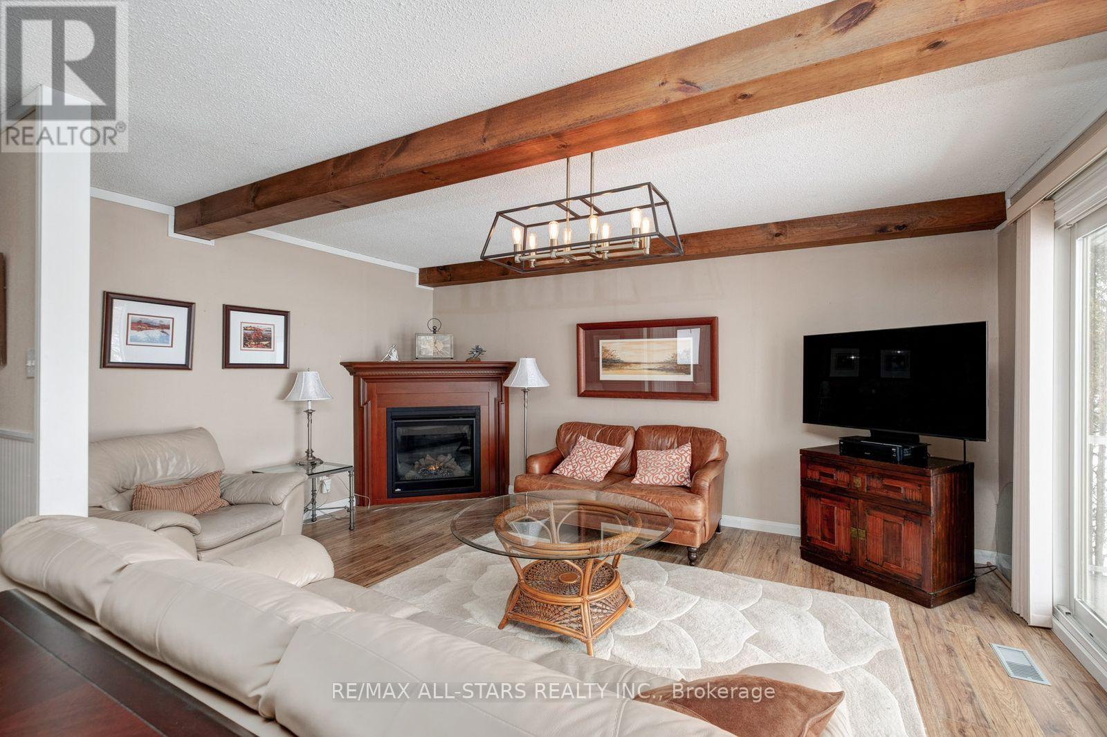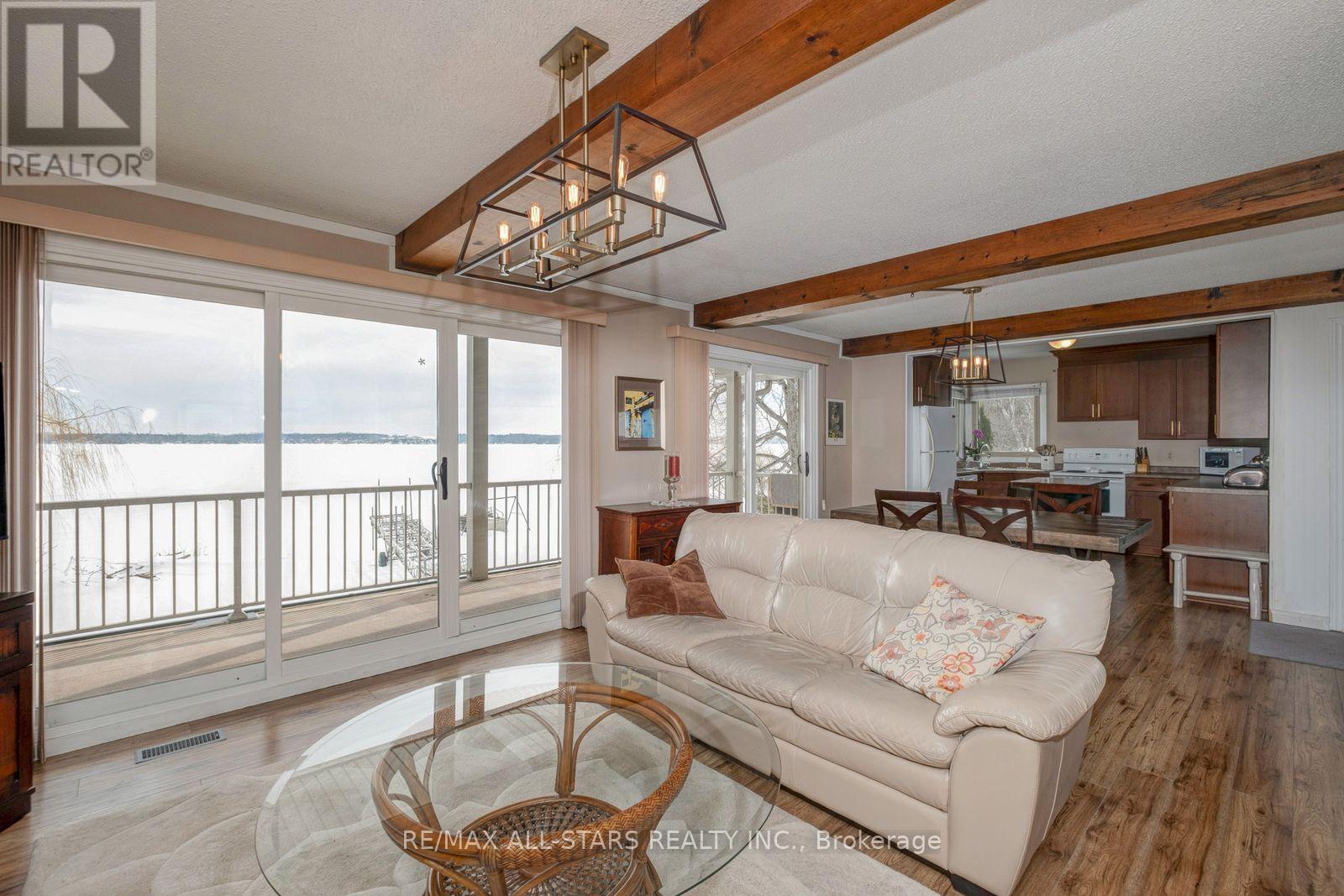 Sand bottom Waterfront year round living on a newly paved quiet road. 100 feet on Lake Scugog Lake part of the Trent System. Ideal for commuters. Move in ready home. Plenty of oversized windows for loads of natural light. Walk-out to a covered deck facing east so you can enjoy morning and afternoon sun. Finished basement with 4 piece washroom, recreation area with gas fireplace and walk-out to covered patio with remote controlled awning. Naylor dock system included. (id:61423)