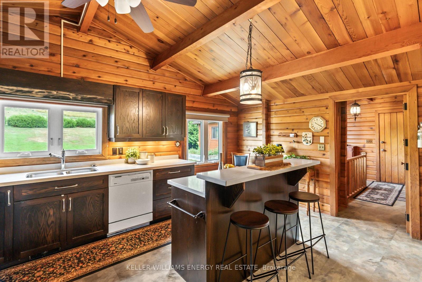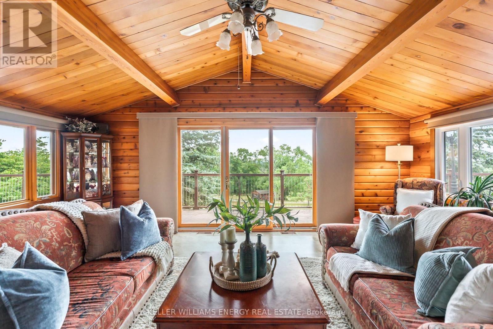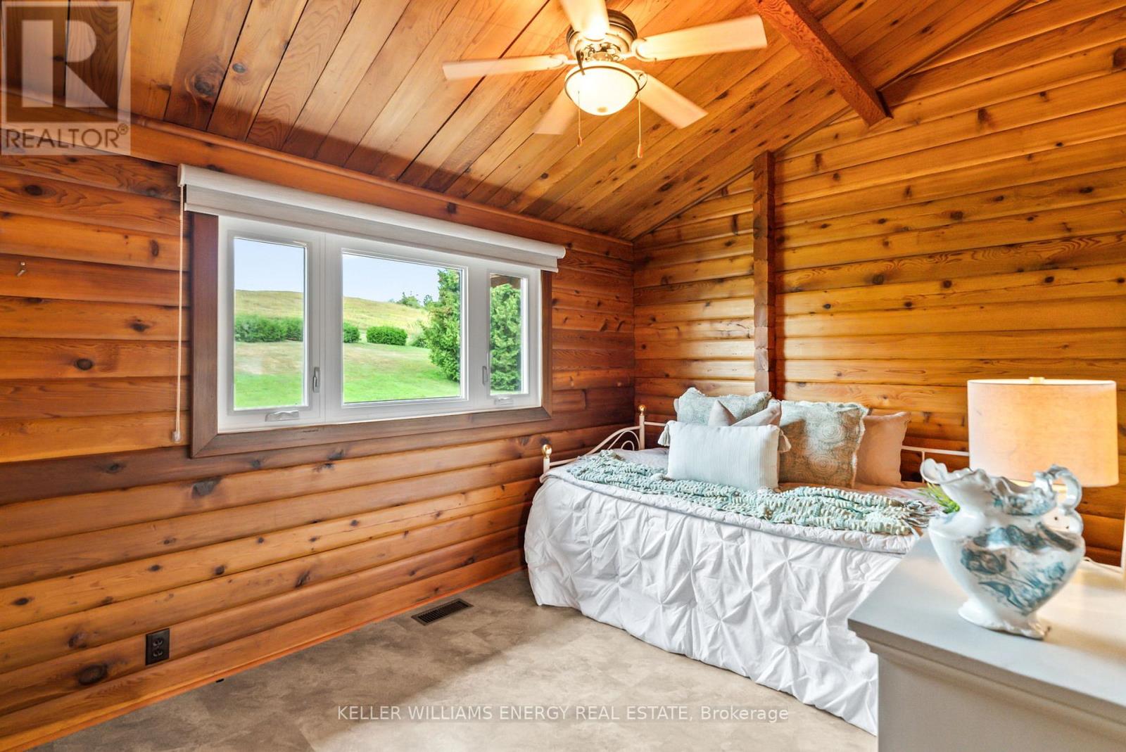Extraordinary Lifestyle Awaits! 89-acre Pan-a-bode Log Home backing onto the Ganaraska Forest with breathtaking westerly views. This 3-bedroom, 3-bath retreat features soaring cathedral ceilings, 2 stunning stone fireplaces with inserts, and a spacious layout with a great room, dining area, and kitchen with island. Walkouts to a 75 ft. deck and lower-level patio provide endless opportunities to enjoy the scenery. The walk-out basement offers in-law potential with a rec room, games room, 3-piece bath, laundry, and fireplace. Additional features include hardwood flooring, some new vinyl windows, direct-wired generator, hydro easement, and 2 garages (double + single). Enjoy direct access to trails for skiing, hiking, and exploring, all just minutes to the Kawartha Region, Hwy 115 and 407. 7 kms to Hwy 407. FREE Between Hwy 115 and Brock Rd. Pickering. (id:61423)
