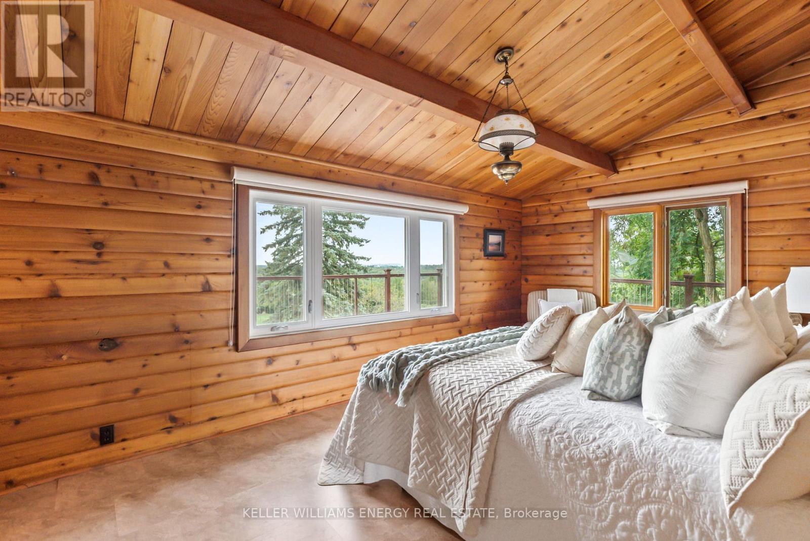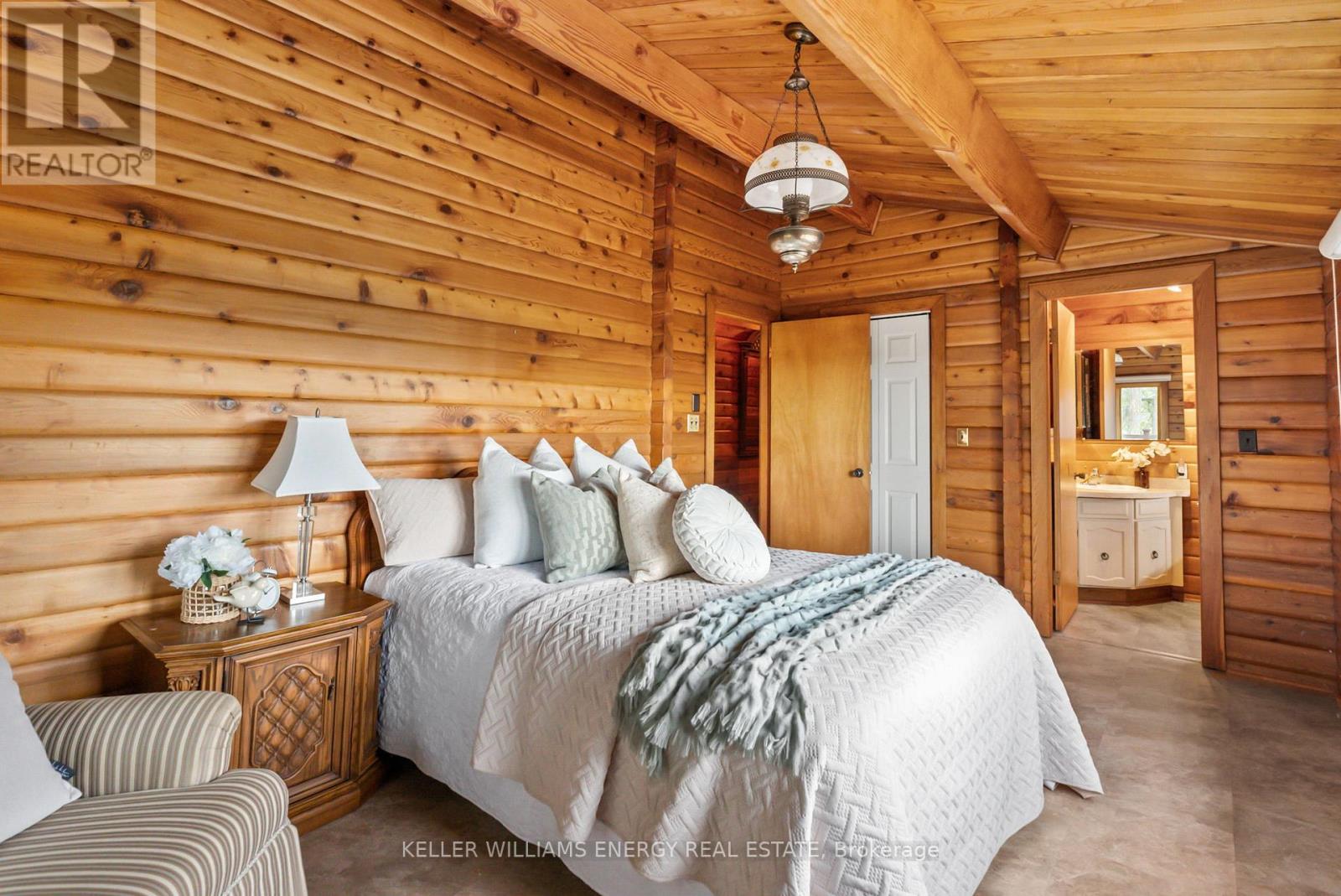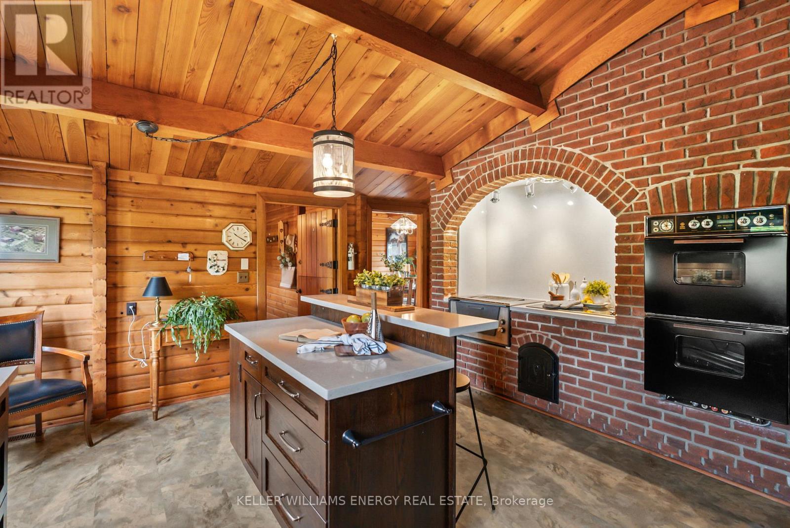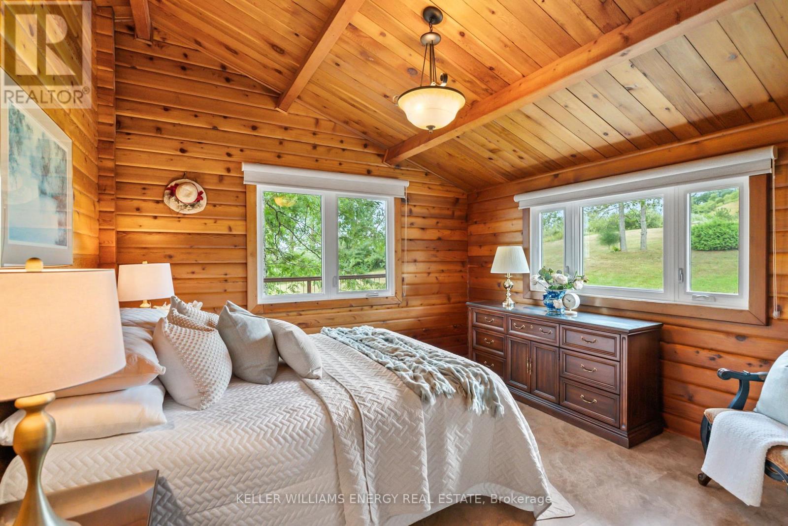 Extraordinary Lifestyle Awaits! 89-acre Pan-a-bode Log Home backing onto the Ganaraska Forest with breathtaking westerly views. This 3-bedroom, 3-bath retreat features soaring cathedral ceilings, 2 stunning stone fireplaces with inserts, and a spacious layout with a great room, dining area, and kitchen with island. Walkouts to a 75 ft. deck and lower-level patio provide endless opportunities to enjoy the scenery. The walk-out basement offers in-law potential with a rec room, games room, 3-piece bath, laundry, and fireplace. Additional features include hardwood flooring, some new vinyl windows, direct-wired generator, hydro easement, and 2 garages (double + single). Enjoy direct access to trails for skiing, hiking, and exploring, all just minutes to the Kawartha Region, Hwy 115 and 407. 7 kms to Hwy 407. FREE Between Hwy 115 and Brock Rd. Pickering. (id:61423)