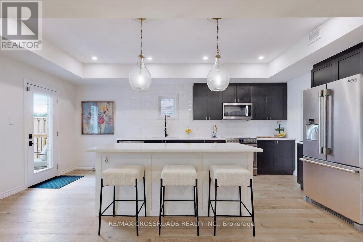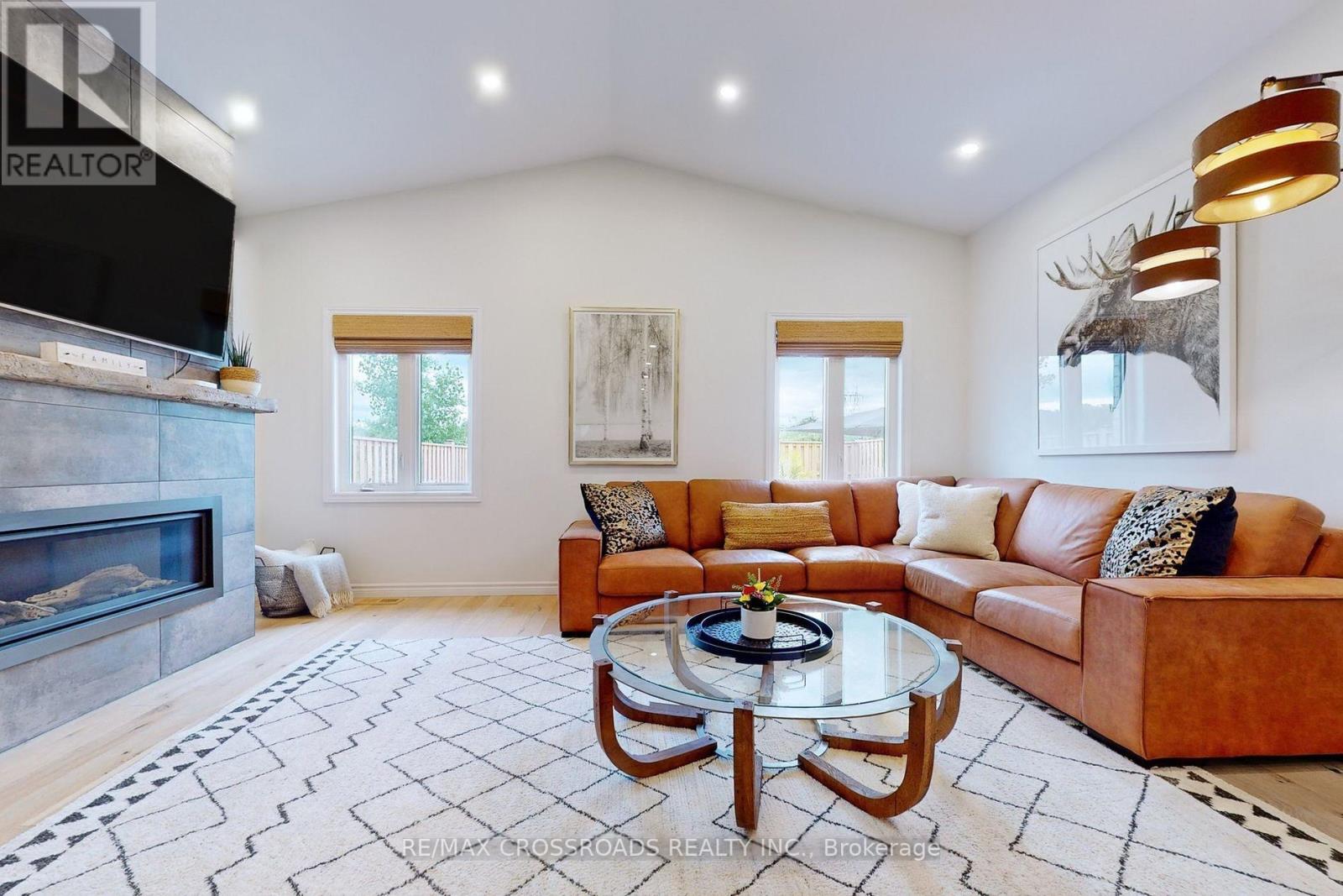 Welcome to 741 Sawmill...A Beautifully Renovated Executive two-storey Brick home in Peterborough's Highly Sought after Heritage Park Neighbourhood. Immaculate and truly Move-in Ready, this residence offers Modern Luxury Living in one of the North End's most Desirable Communities. Over $100K has been invested in Premium Upgrades throughout. The Open Concept Living and Dining area features a Vaulted Ceiling and a Stunning Floor-to-ceiling Electric Fireplace ($25k) that serves as a Striking Focal Point. The Designer Kitchen is Built for Entertaining, showcasing an Oversized Quartz island with built-in Beverage Fridge, walk-in Pantry, and Extensive Pot Lighting throughout the home. The partially Finished Basement includes a fully Finished Bedroom and three-piece bathroom, providing Flexible space for guests or ExtendedFamily. Outside, enjoy professional Landscaping in the front and rear yard with interlocking front porch, limestone capped stairs, and interlocking in the backyard...total cost $55k. Fully Fenced Back yard backing onto a peaceful Green Belt, offering privacy and a Beautiful Natural Setting. Hot tup hook up for plumbing and Electrical. Outdoor Shower already installed. Located near Excellent Schools, Parks, and Trails. This home reflects Exceptional Pride of Ownership and Delivers Executive-Style Living in one of Peterborough's Finest Neighbourhoods ! (id:61423)