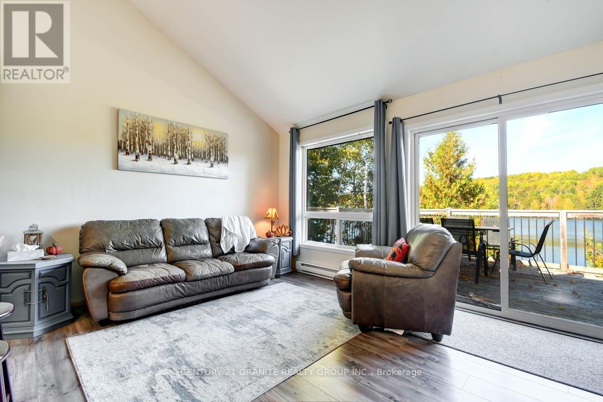 Escape to a beautifully well-maintained, open-concept waterfront Home nestled on a quiet cul-de-sac, offering a truly spectacular view of Baptiste Lake. This perfect lakeside home features 3+1 bedrooms and 2 full bathrooms, with the added bonus of a spacious screened-in porchperfect for enjoying cool lake breezes without the bugs. With open concept main floor and a large kitchen island. It makes hosting friends and family easy! And a partially finished lower level with it's own walk-out. Outside, enjoy a beautifully maintained lawn and garden. With retaining walls from the shores edge and offering tiered, level lawn. Recent upgrades include a new metal roof (2023) and a brand-new fridge in 2025. You'll also be ready for any weather with a convenient generator hook-up with it's own electrical panel.Spend your summers relaxing by the water on your new dock, purchased in 2022. The location is a dream for outdoor enthusiasts, with easy access to ATV/Snowmobile and hiking trails, plus a short distance to explore other lakes and bays.The best part? You get the cottage tranquility without sacrificing convenience! You're only a short distance to Bancroft for amenities. With furnishings negotiable and a quick closing possible, your worry-free waterfront life awaits! (id:61423)