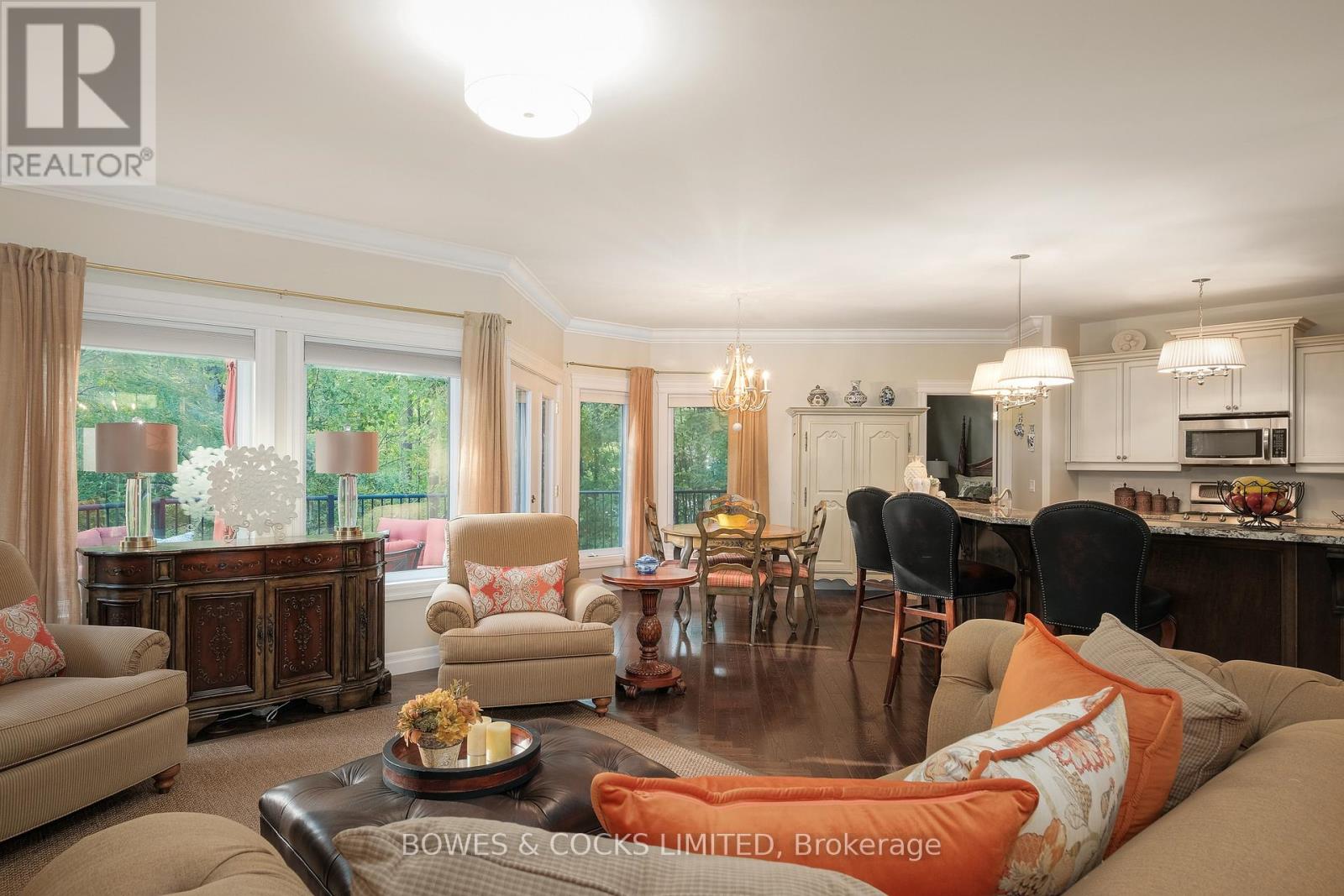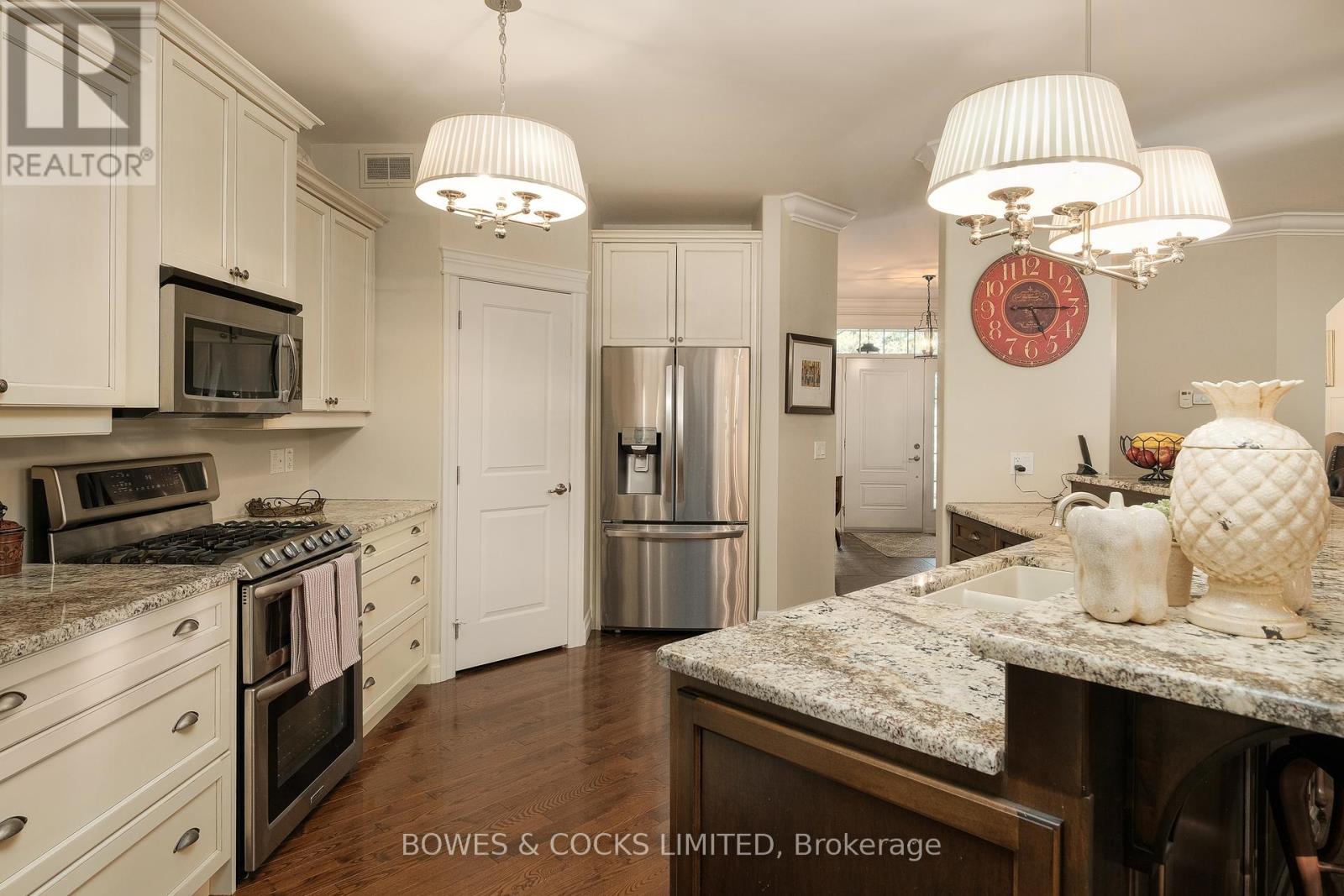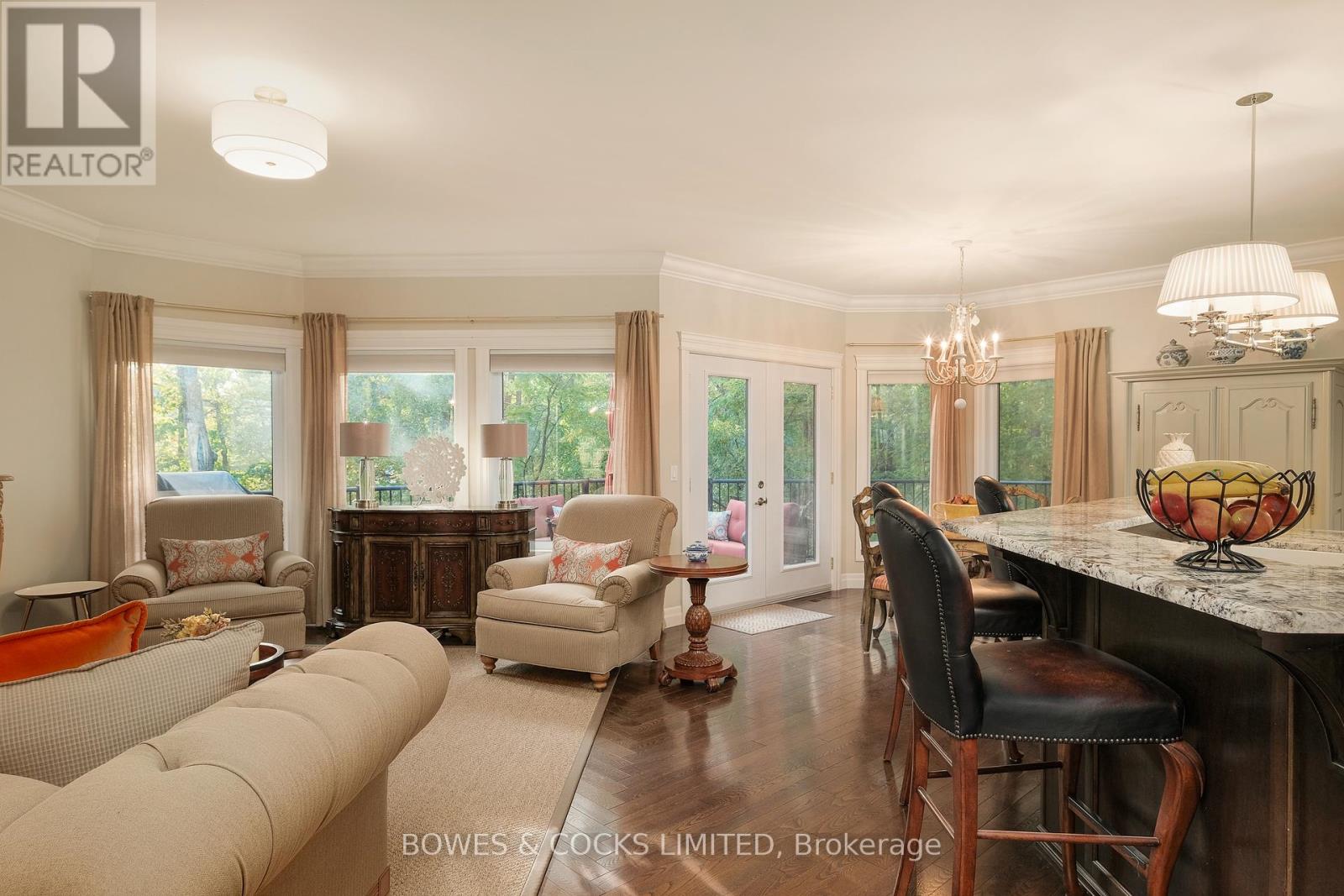 Welcome to your dream country retreat in Buckhorn! Located in Granite Ridge Estates, this stunning 3-bedroom, 2-bathroom bungalow sits on1.16 acres of wooded land and boasts 2600 square feet of livable space. An oversized double garage is directly accessed from the laundry room. Open concept living, dining and kitchen with herringbone hardwood floors are the perfect setting for family gatherings and entertaining. The kitchen features a raised breakfast bar that seats six comfortably as well as an oversized pantry and stainless-steel appliances. The living room has a walkout onto a large, raised wooden deck. The master bedroom features a 5-piece ensuite: a corner tub, stand alone shower with beautiful natural stone, double granite vanity and his and hers walk-in closets. The large family room on the lower level includes a propane fireplace to keep you warm on cold winter nights while still feeling like you're part of the outdoors. A full walkout leads to a beautifully landscaped, terraced yard and adds a touch of elegance to the property creating a picturesque setting for outdoor gatherings. Both levels have ample windows throughout providing an abundance of natural light. This home offers the perfect blend of luxury and tranquility. Buckhorn is ideally situated 25 minutes from Peterborough. The Town offers a Foodland Grocery Store, LCBO, convenience store, library, community centre, public school and marina. Year-round activities such as skiing, sledding, hiking, canoeing, kayaking, fishing, sandy beaches and more are all at your front door. Don't miss your chance to own this exquisite piece of paradise in Buckhorn. (id:61423)