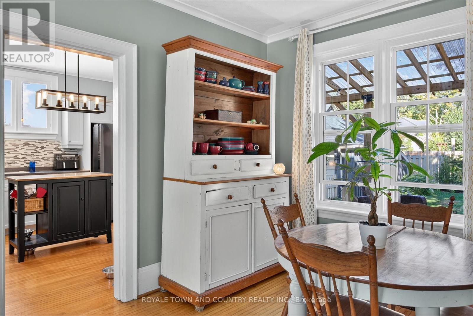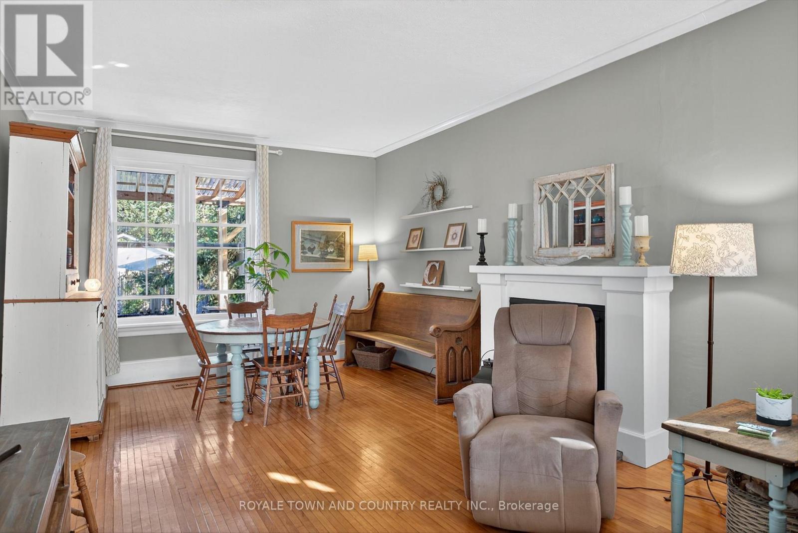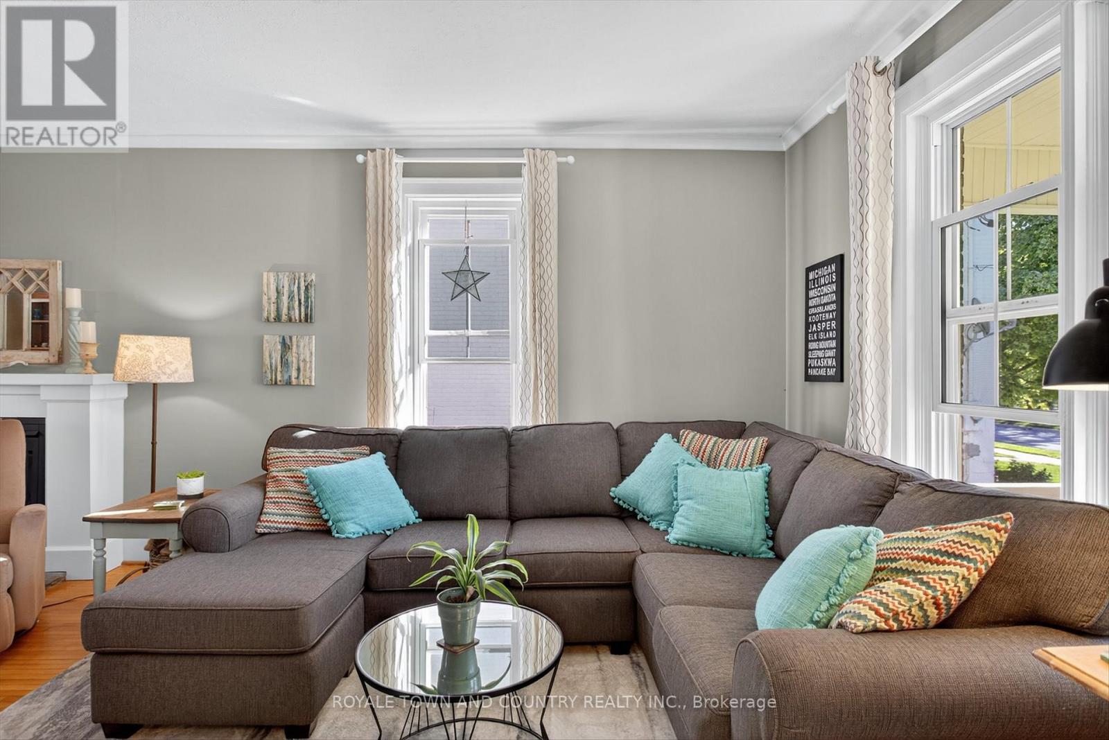 Step Back in Time with Modern Comforts. This enchanting two-story century home welcomes you with timeless character and thoughtful updates, offering the perfect blend of yesterdays charm and todays conveniences. From the moment you arrive, the inviting front porch sets the stage for a warm and welcoming atmosphere. Inside, soaring ceilings, original hardwood floors, and high baseboards create a sense of history and elegance throughout. The heart of the home is the open-concept country kitchen and dining room, flowing seamlessly into the living room perfect for family gatherings or entertaining friends. From the kitchen, walk out to your own private oasis: a beautifully manicured, fully fenced backyard with a covered deck where you can relax and enjoy the gardens in every season. Upstairs, you'll find three bright bedrooms and a full bath, all filled with the warmth of natural light. Venture further to the loft, where a luxurious retreat awaits complete with its own three-piece bath and a soaker tub. Whether you envision this space as a dreamy primary suite or an inviting media room for the whole family, the possibilities are endless. Additional features include a half-finished basement ideal for a home office or extra storage, a mutual driveway with a one-car garage, and all the charm that only a century home can deliver. If you've been dreaming of a home that tells a story while offering modern comfort, this property is ready to welcome you. (id:61423)