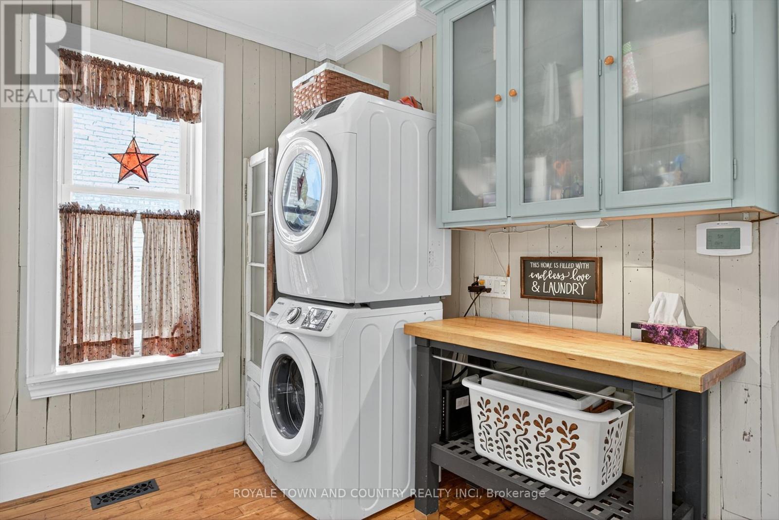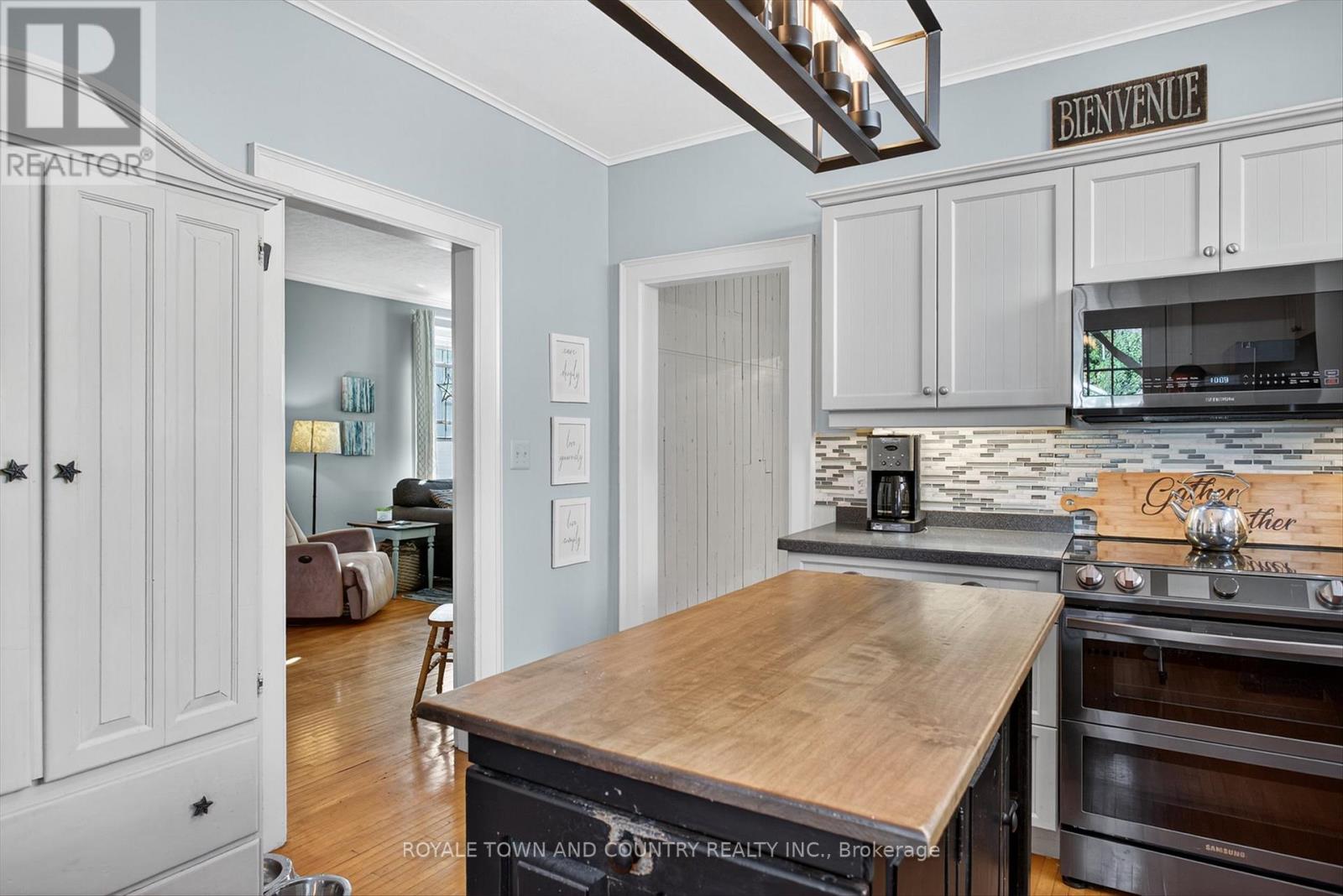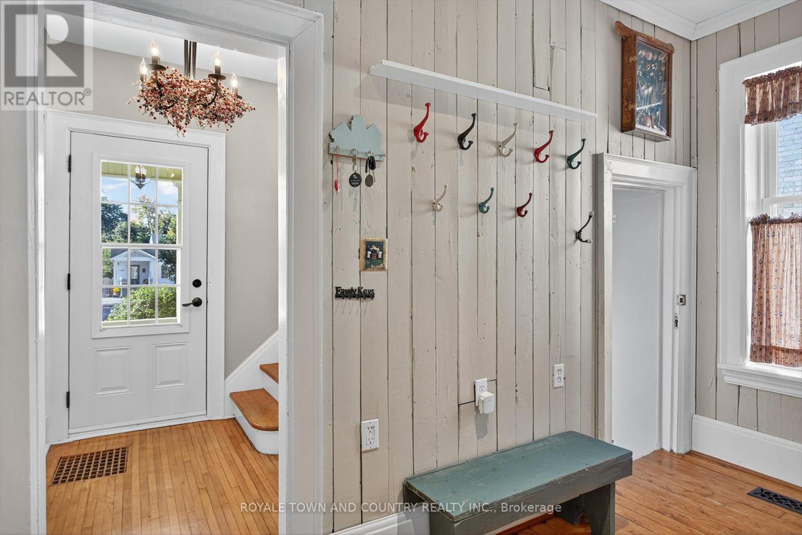 Step Back in Time with Modern Comforts. This enchanting two-story century home welcomes you with timeless character and thoughtful updates, offering the perfect blend of yesterdays charm and todays conveniences. From the moment you arrive, the inviting front porch sets the stage for a warm and welcoming atmosphere. Inside, soaring ceilings, original hardwood floors, and high baseboards create a sense of history and elegance throughout. The heart of the home is the open-concept country kitchen and dining room, flowing seamlessly into the living room perfect for family gatherings or entertaining friends. From the kitchen, walk out to your own private oasis: a beautifully manicured, fully fenced backyard with a covered deck where you can relax and enjoy the gardens in every season. Upstairs, you'll find three bright bedrooms and a full bath, all filled with the warmth of natural light. Venture further to the loft, where a luxurious retreat awaits complete with its own three-piece bath and a soaker tub. Whether you envision this space as a dreamy primary suite or an inviting media room for the whole family, the possibilities are endless. Additional features include a half-finished basement ideal for a home office or extra storage, a mutual driveway with a one-car garage, and all the charm that only a century home can deliver. If you've been dreaming of a home that tells a story while offering modern comfort, this property is ready to welcome you. (id:61423)
