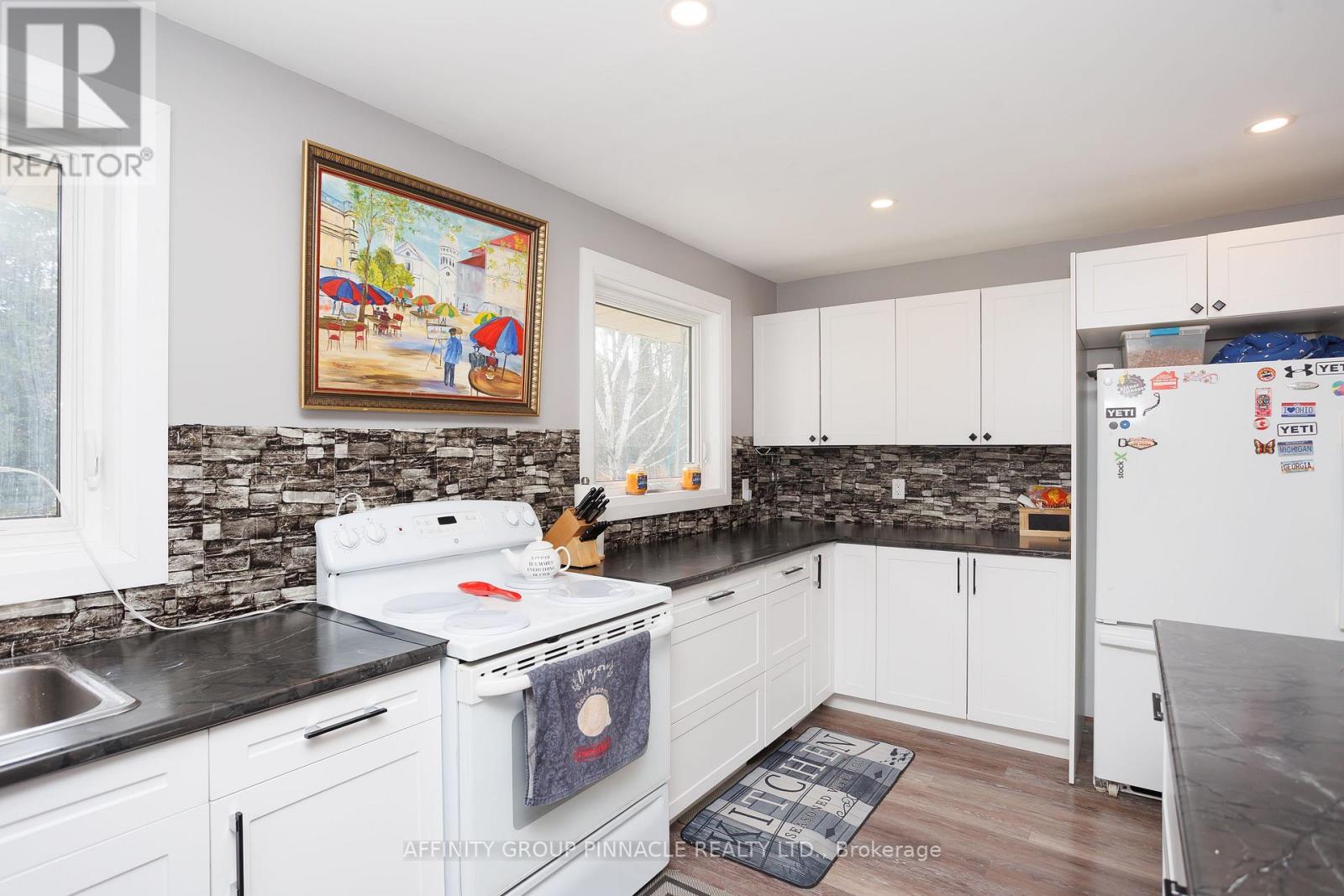 Nestled on the edge of the tranquil town of Norland, 7690 Hwy 35 awaits. This charming bungalow boasts an efficient use of space and lots of natural light, situated on a level, clear lot with a 1 1/2 car detached garage. The main floor features a cozy living room, a kitchen (renovated in 2020) with ample storage, two bedrooms, and a four-piece bathroom (renovated in 2023). A bonus 3 Season back entrance. The lower level offers a large rec room, an additional bedroom, and a spacious laundry/utility/storage room. Recent drainage updates in 2020 ensure the lower level remains dry. Come and explore this great opportunity! (id:61423)