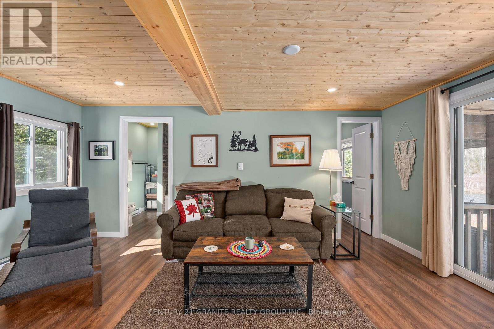 Ready to enjoy this summer! Fully renovated year round home or cottage on a private 0.4 acre property tucked away from big city life, but only 25 minutes from the amenities of Bancroft. 250ft of frontage on the tranquil Lavallee creek with direct lake access from the creek into beautiful Lavallee Lake, which offers amazing lake trout and bass fishing, swimming and boating. On the creek, you have your own private dock and no neighbours across from you. While at the cottage there are no neighbours in sight from any direction! You share the surrounding forest with plenty of wildlife, including deer, wild turkeys, and songbirds of all sorts. The cottage features updated wiring, plumbing, dual flush toilets, drywall, paint, wood-burning stove, soaker tub shower combo, fixtures and t&g pine ceilings. The cozy living room is centred around the wood-stove for those colder evenings with electric baseboard back up. 3 bedrooms and 1.5 bathrooms complete the open concept one level living space. Access to the level yard and waterfront from the deck with an attached screened in porch. The cottage itself is four season with a seasonal road that could be easily maintained privately in the winter months, drilled well, 100 amp service and septic system. Sold fully furnished and turn-key. (id:61423)