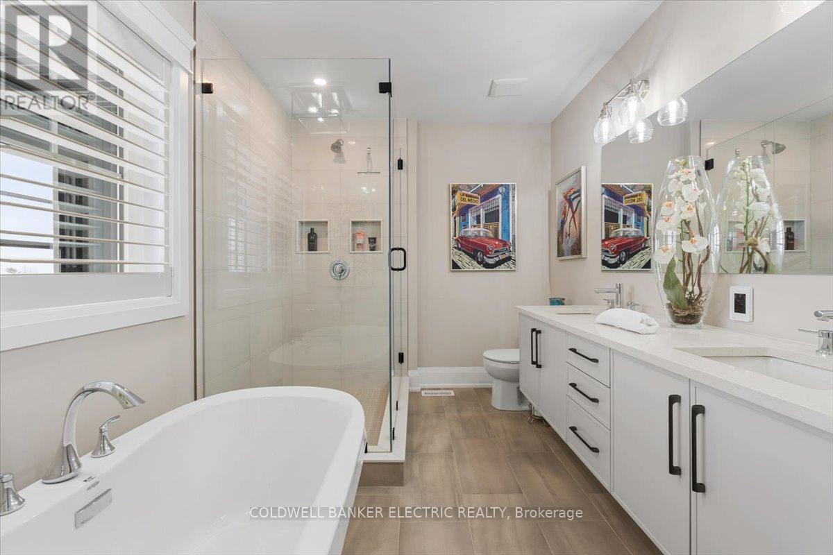 This award-winning home model exemplifies luxury living at its finest. Perched on a premium, elevated lot backing onto a tranquil conservation area, it offers breathtaking, unobstructed views and exceptional privacy. A truly standout feature is the custom decking - an impressive, one-of-a-kind addition unlike anything else in the neighbourhood. Boasting 4+ bedrooms and 5 bathrooms, this home is thoughtfully designed with upscale finishes throughout, including quartz countertops and backsplashes, heated floors, electric fireplaces, and high-end appliances. Sensor-lit walk-in closets and refined architectural details further enhance the home's sophistication. The main floor features a stunning open-concept layout, seamlessly blending the kitchen, living, and dining areas - perfectly suited for both everyday living and entertaining, and reminiscent of a designer showcase. The fully finished walkout lower level includes a self-contained studio suite, ideal for multi-generational living or extended guest accommodations. Ideally situated close to all amenities, this home offers the perfect balance of convenience and natural beauty. Enjoy a short stroll to the Rotary Trail, where walking, cycling, or jogging will lead you into the scenic surroundings of Jackson's Park. 78 York Drive - A place you'll be PROUD to call home. (id:61423)