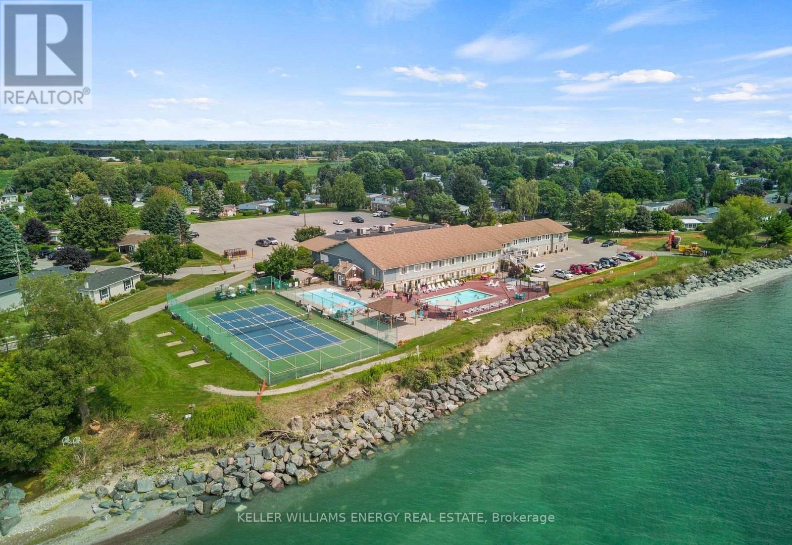 Welcome to 79 Fairway Drive, a charming bungalow nestled in the highly sought-after adult lifestyle community of Wilmot Creek, just steps from the shores of Lake Ontario. This beautifully maintained 2-bdrm, 1-bath home offers the perfect blend of comfort, privacy, and low-maintenance living in one of Durham Region's most desirable gated lakefront communities. Inside, you'll find a bright, beach-inspired interior featuring hardwood floors and crown moulding throughout, creating a warm & inviting atmosphere. The open-concept living and dining area flows effortlessly to a private back deck, perfect for enjoying your morning coffee or relaxing with a glass of wine. The stylish kitchen features gleaming countertops, a double stainless-steel sink, marble tile backsplash, pantry, and a convenient nook for a stackable washer and dryer. A side entrance with ramp access from the driveway provides easy entry when bringing in groceries or welcoming guests. The renovated 3-piece bath offers a walk-in glass shower and bench. spacious prm bedroom includes a lrg closet, while the second bedroom provides flexible space for guests, a home office, or hobby room. Step outside to enjoy beautifully landscaped gardens, a large back deck with a 10' x 10' gazebo, and plenty of storage including two storage bins, a built-in storage area, and a generous shed. Living in Wilmot Creek is about more than just owning a home it's about embracing a vibrant resort-style lifestyle. Residents enjoy access to exceptional amenities including a private 9-hole golf course, heated indoor and outdoor pools, tennis and pickleball courts, scenic lakefront walking trails, multiple clubhouses, social clubs, and even a woodworking shop. A private gated entrance provides added security and peace of mind. Located just minutes from Newcastle's charming downtown shops, restaurants, and cafs, this home offers the perfect balance of peaceful lakeside living and convenient access to local amenities. (id:61423)