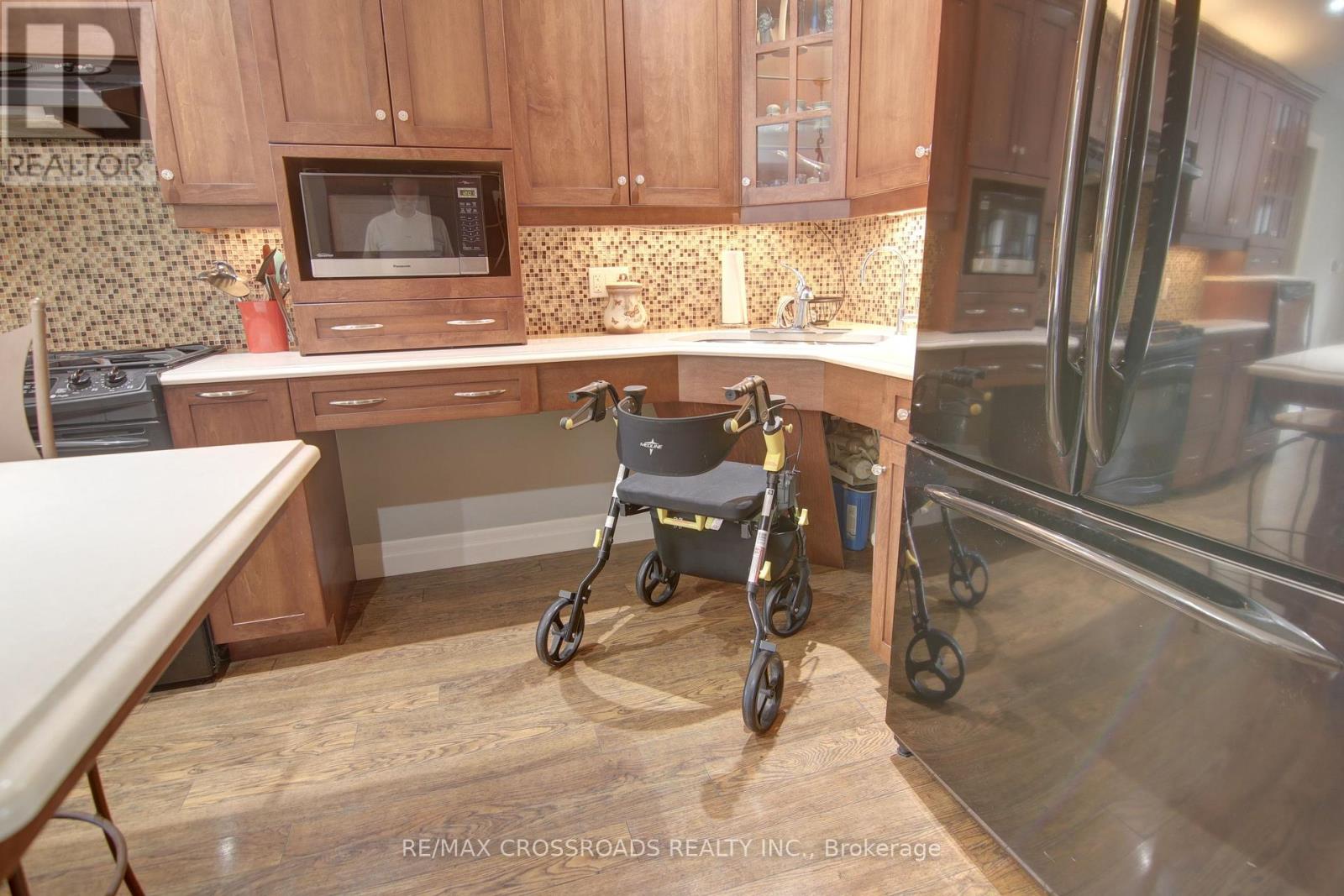 Welcome to 8 Green Arbour Way, located on one of Lindsay's most desirable streets. This exceptional brick bungalow, custom built by Mark Wilson, offers a rare combination of quality craftsmanship, thoughtful design, and full accessibility throughout. Featuring 2+2 bedrooms, this home was purposely built with 100% accessibility in mind, no steps, no awkward level changes, and seamless wheelchair access both inside and out. Every detail has been carefully considered to provide comfort, ease of movement, and long-term livability without compromising style. Inside, you'll find a spacious and inviting layout highlighted by a bright living area with a cozy gas fireplace, perfect for relaxing or entertaining. The large primary bedroom offers a private retreat, complete with a fully wheelchair-accessible ensuite bath designed for both functionality and comfort, along with a convenient walkout to a beautiful interlock patio and gazebo, an ideal space to enjoy your morning coffee or unwind in the evenings. A main floor laundry adds to the home's practical appeal. Accessibility features continue with automatic front and garage entry doors, providing effortless access to the home. A stairlift offers easy and safe access to the fully finished basement, expanding your living space with additional bedrooms and versatile areas ideal for guests, workshop, or family gatherings. Additional features include a full backup generator for peace of mind and a high-quality furnace system ensuring year-round comfort. This is a rare opportunity to own a thoughtfully designed, impeccably built home in a prime Lindsay location-perfect for those seeking accessibility, elegance, and reliability all in one. (id:61423)