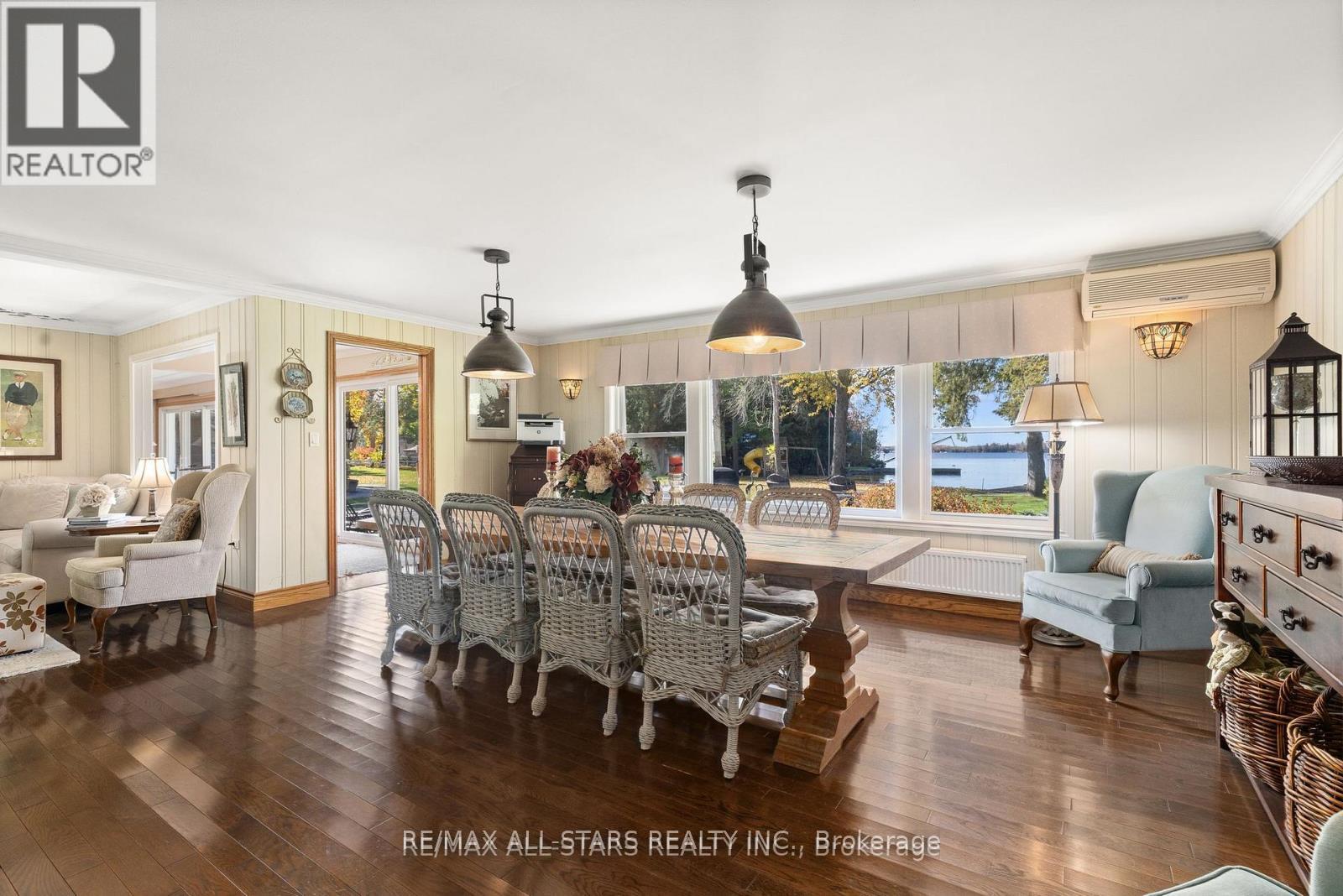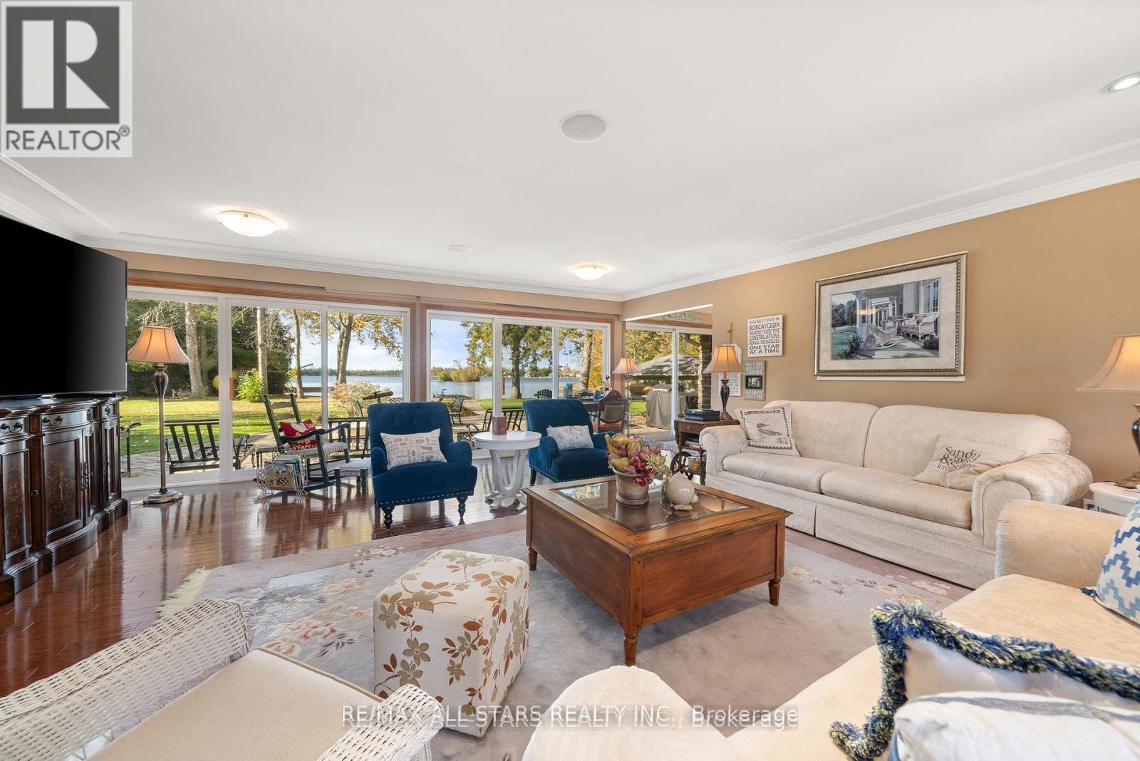 Experience lakeside luxury on the shores of beautiful Sturgeon Lake. Nestled on 1.098 acres inone of Bobcaygeon's most exclusive neighbourhoods, this exceptional property offers 168 feetof clean, accessible shoreline-a rare find with full town services. Relax on the expansivepatio where sweeping water views meet a manicured, irrigated lawn, or set out on the lake fromyour private double-slip boathouse. The circular drive leads to a three-car garage with aconvenient drive-through to the backyard, making parking and storing recreational toyseffortless. Inside, a grand living room with panoramic lake views sets the stage forentertaining. This tastefully remodelled residence blends timeless elegance with moderncomfort. A commanding wood-burning stone fireplace anchors the formal dining space-animpressive setting for elegant dinners or family gatherings-served by a convenient butler'spantry in addition to the well-equipped kitchen. The inviting family room offers an intimateretreat, ideal for quiet evenings and meaningful conversation. With six bedrooms and 2.5bathrooms, every guest is accommodated in comfort. The primary suite is a private sanctuary,featuring a generous walk-in closet and a spa-inspired ensuite with a Jacuzzi tub-the perfectplace to unwind. Multiple patio doors and expansive windows invite natural light and framebreathtaking lake views from nearly every room, creating a sense of serenity and connection tonature throughout. Additional features include an integrated backup generator and an automatedirrigation system for effortless, year-round living-all within walking distance of quaintdowntown Bobcaygeon. This offering includes two separate lots with individual titles,providing potential future benefits or opportunities for expansion. This is more than ahome-it's a refined lakeside lifestyle on Sturgeon Lake. Schedule your private viewing todayand experience the serenity for yourself. (id:61423)