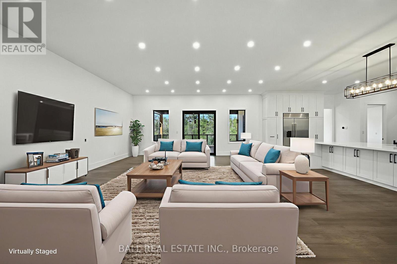 Welcome to 80 Birch Crescent, Bobcaygeon - a stunning, brand new custom-built home offering over 4,500 sq ft of thoughtfully designed living space just minutes from charming downtown Bobcaygeon. This 4-bedroom, 4-bath masterpiece blends modern elegance with every day functionality, featuring soaring ~11 ft ceilings on the main level, engineered hardwood flooring, and upgraded finishes throughout. Only a short walk from public access to Pigeon Lake. Step into the heart of the home - a show-stopping kitchen equipped with high-end KitchenAid appliances, under-cabinet lighting, a large quartz island and sleek modern cabinetry. Enjoy seamless flow into the open concept living and dining area, illuminated by well thought out lighting. A large spa-like primary bedroom on the main floor with exquisite ensuite bathroom and walk in closet is included on the main floor as well as an extremely bright sunroom ideal for a home office, dining space, or den. The space extends to a covered walk out deck with builtin pot lights - perfect for an outdoor kitchen and entertaining year round. Solid-core 8-foot modern interior doors, 7" baseboards and premium two-pane windows highlight the quality craftsmanship throughout. Practical features include a phenomenal well flow rate, advanced water filtration system, over-sized septic. Whether you're relaxing with family or entertaining guests, every inch of this home is designed to impress. Don't miss your opportunity to live in one of Bobcaygeon's finest new builds - luxury, location and lifestyle await at 80 Birch Crescent. (id:61423)