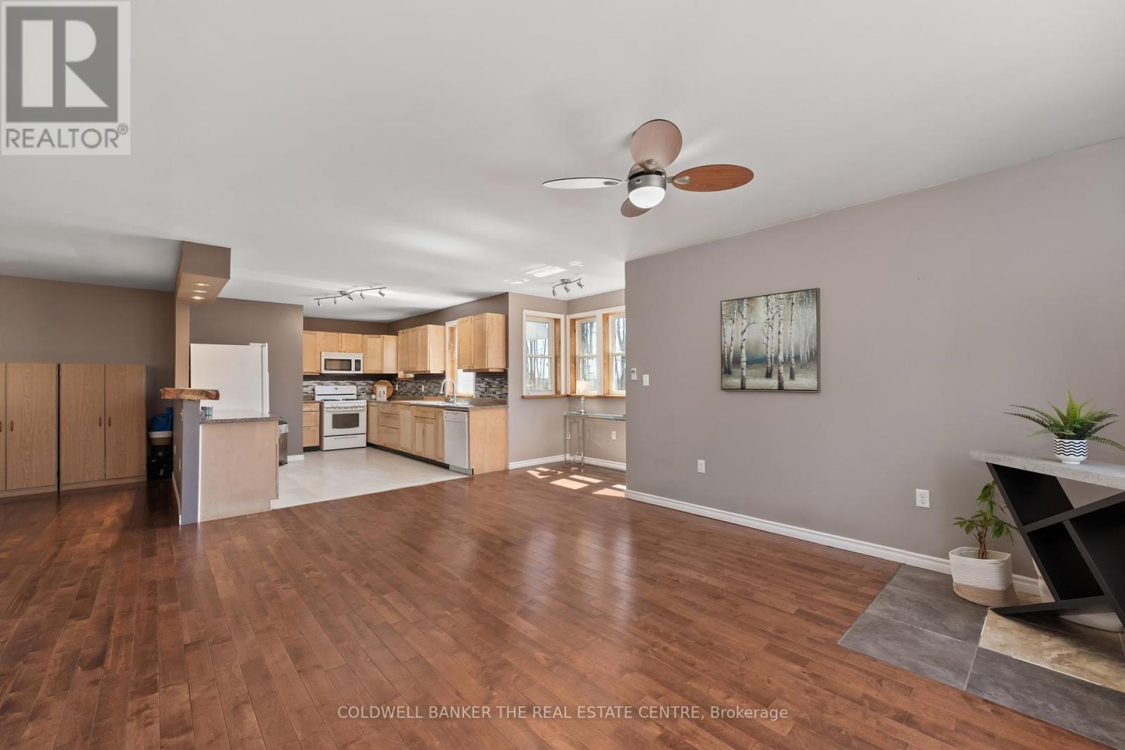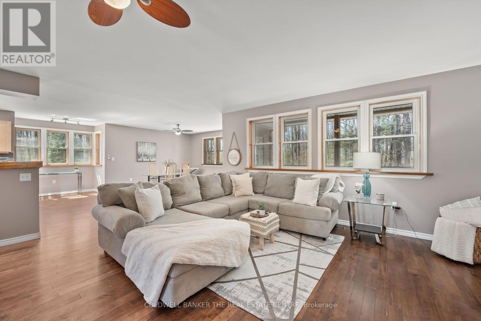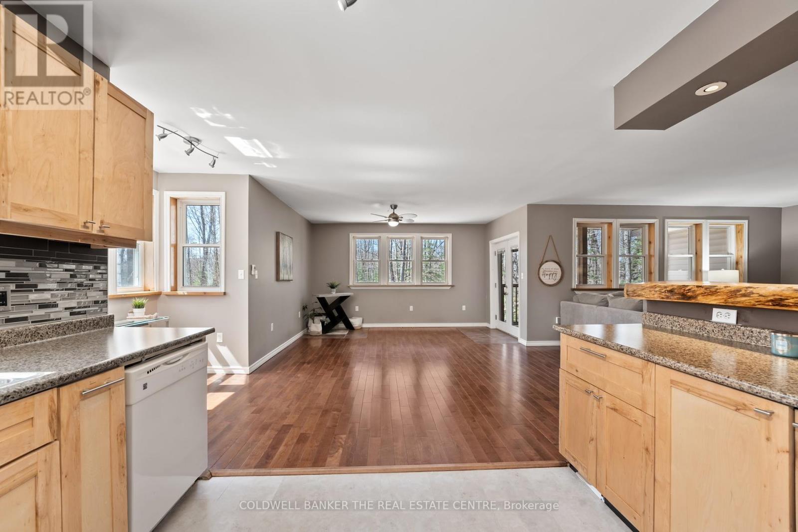 Welcome to your dream home and lifestyle! Nestled on a sprawling 1.35-acre property, this exceptional property offers a serene escape with exclusive deeded access shared with only six neighboring homes. Just minutes away from Jeffrey Lake, bordered by 560 acres of Crown land, boasting two more pristine lakes. Built in 2013/14, this modern home boasts an open-concept design, featuring a spacious family room that can effortlessly transform into a separate rental unit with its own access. The kitchen is adorned with custom cupboards crafted from wood harvested right on-site. On the main floor, you'll find two bathrooms for added convenience, along with a main floor laundry and central vacuum system. The unfinished walk-out basement presents endless possibilities for rental income or an in-law suite, offering flexibility and versatility to suit your needs. Outside, enjoy the convenience of an attached insulated double car garage and two additional outdoor sheds for all your storage needs. Your furry friends will love the vast fully fenced yard, while you relax and unwind on the screened porch, perfect for three-season enjoyment. This home seamlessly blends countryside living with modern practicality, boasting expansive windows that frame breathtaking views of the surrounding nature. Spend evenings gathered around the flagstone firepit area stargazing and roasting marshmallows. Embrace your very own cozy private retreat, surrounded by abundant wildlife and tranquility. Conveniently just minutes from Bancroft, you'll have easy access to amenities while still relishing in the harmonious blend of contemporary design and natural splendor offered by this extraordinary property. Venture out and explore the extensive network of Crown land trails, ideal for nature walks or ATV adventures, while surrounded by large, aged oak and maple trees, perfect for tapping during maple syrup season this rare opportunity to experience the ultimate in countryside living. (id:61423)