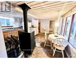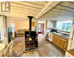 A Serene Retreat on the Trent-Severn Waterway! Escape to nature with this charming 2-bedroom cottage tucked among mature trees on the Trent-Severn Waterway. Located in the heart of Kawartha cottage country, this peaceful getaway offers scenic river views and a relaxed, cottage-country lifestyle that is perfect for weekend retreats (including cozy winter visits)! The open-concept layout features a spacious kitchen with water views, a warm and inviting living room with a wood stove, and a 3-piece bathroom. The property includes a steel roof, vinyl siding, and tasteful interior finishes including vinyl flooring and wood ceilings. Step outside to enjoy your coffee on the front porch, barbecue beneath the trees, or gather around a campfire under the stars. The lot includes a fresh gravel driveway, two storage sheds (one with potential as a bunkie), and a large cement holding tank installed in 2021. Water is drawn from the river, and a shared spring offers added convenience. Enjoy year-round accessibility with municipally maintained roads in all four seasons. Located minutes from the historic Kirkfield Lift Lock, and just a short drive to Orillia or the GTA, this property is your ideal seasonal escape. Please note: This property is on leased land from Parks Canada ($2,813/year). Four-season living and short-term rentals are not permitted. Seller will only consider full-price offers. (id:61423)