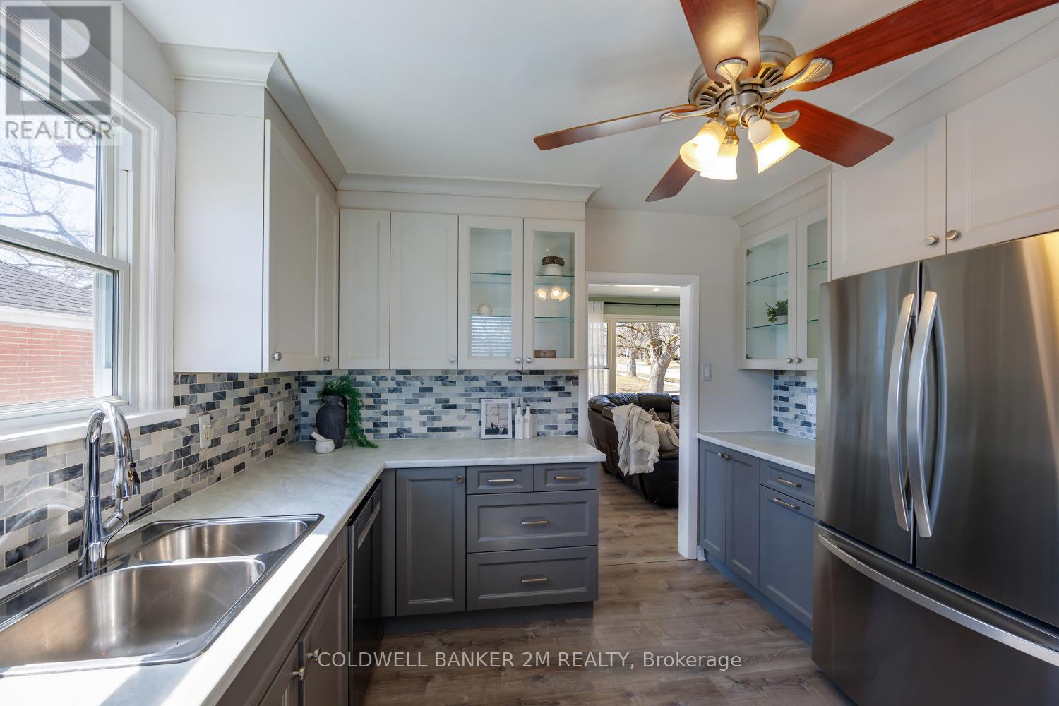 Welcome to 814 Downie Street located in a desired family friendly Peterborough neighborhood. This home offers many updates including a beautifully renovated kitchen newer stainless appliances, glass accents to upper cabinets. New vinyl flooring throughout the main level, newer bay window in the living room allows natural light to flood indoors. Three bedrooms and full 4pc bathroom. The basement allows for additional living space or in law potential, finished rec room combined with a kitchenette area, bedroom, and full 4pc bathroom, separate side entrance. Relax at the end of the day in the hot tub while entertaining on the deck. Privately fenced yard. Wide driveway provides extra parking paved in 2021. This home is perfect for first time home buyer or retirees looking to downsize. (id:61423)