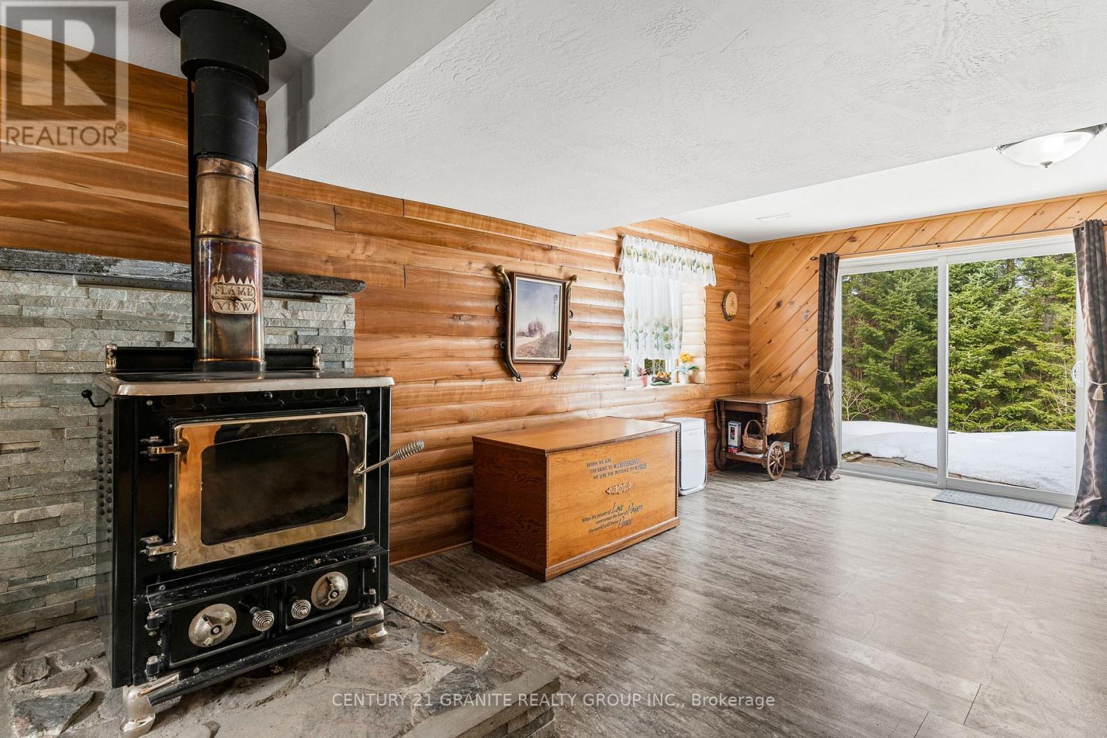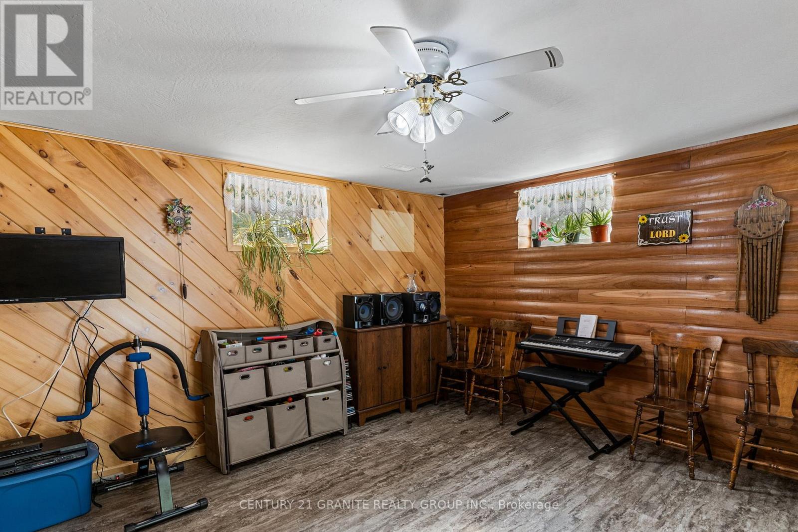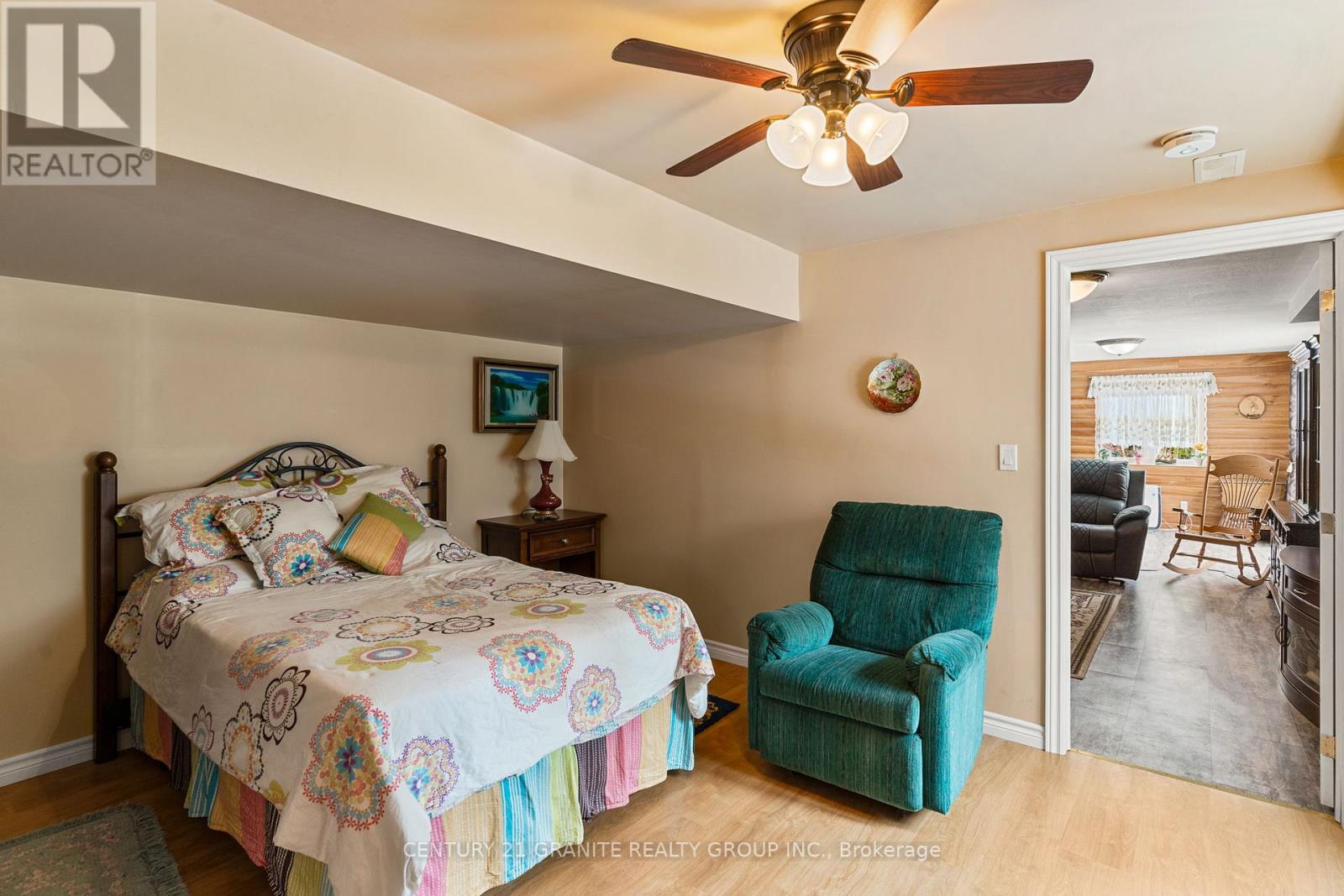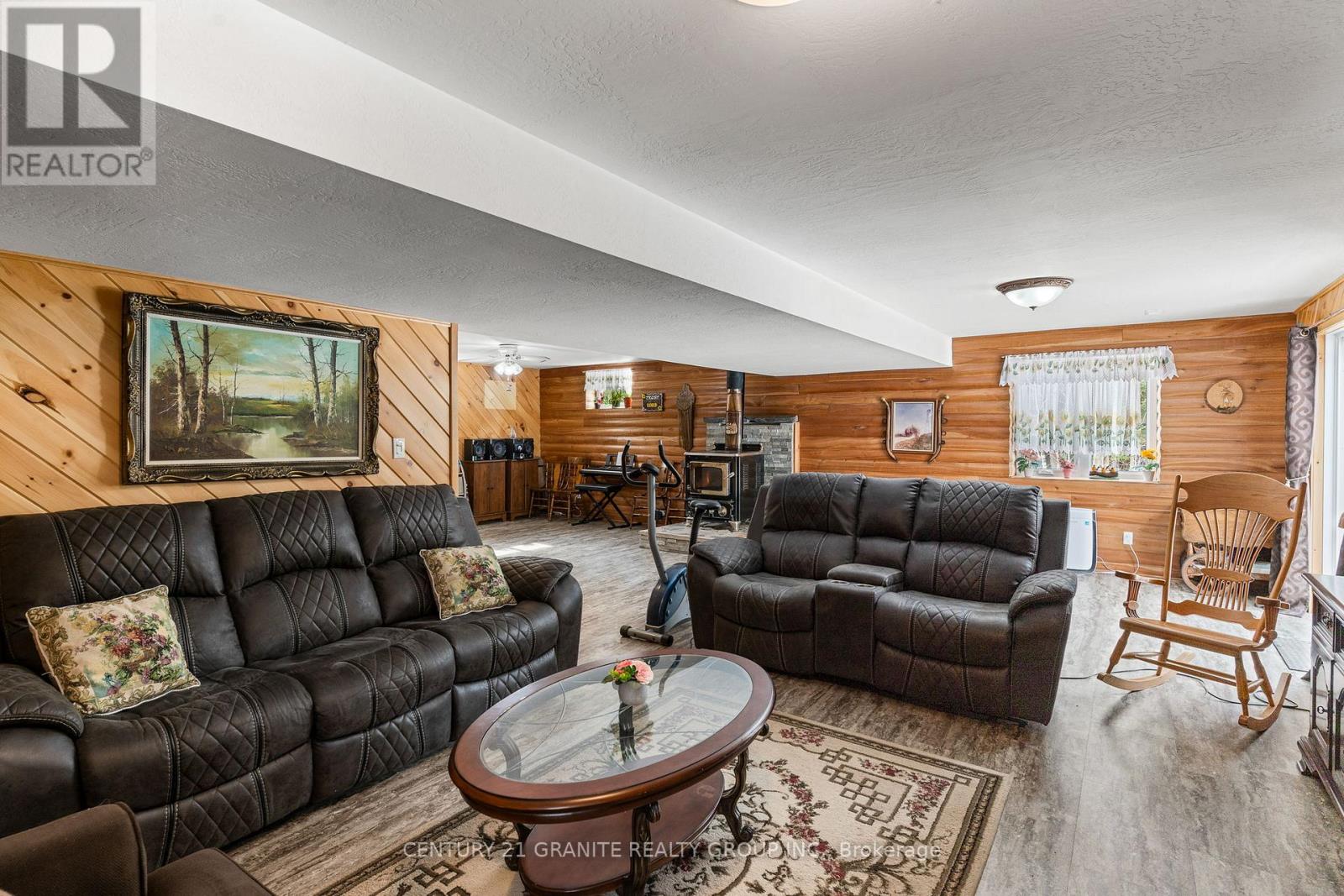 Rare opportunity to own 79 acres on Greenbark Lake with an impressive 2,100 feet of shoreline. Greenbark lake has no public access and only a few owners surround the lake, making for a very private waterfront setting and an outdoor persons dream. The 4-bedroom, 2-bathroom home is just 12 years old and features bright, open living spaces. A full finished basement includes a large rec room, providing plenty of additional space for family and entertaining. A walk out basement entrance leads to a patio, gazebo, vegetable gardens and flower beds. The property also includes a 25' x 30' shop, a small sugar shack, and a partially started log cabin right at the water's edge-ideal for a future getaway. A separate mobile home with its own well and septic system offers great fix-up potential for rental income or guest accommodations. A unique waterfront property with space, privacy, and multiple possibilities. (id:61423)