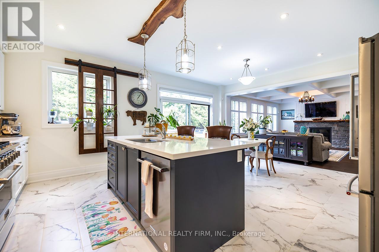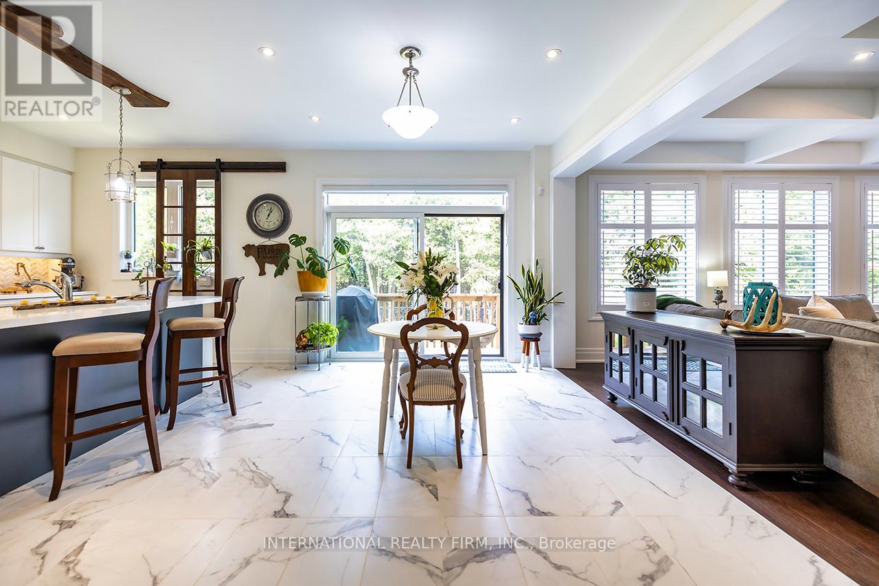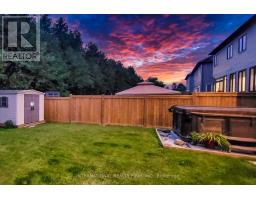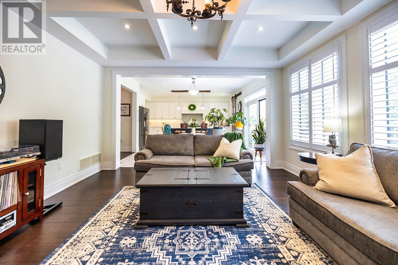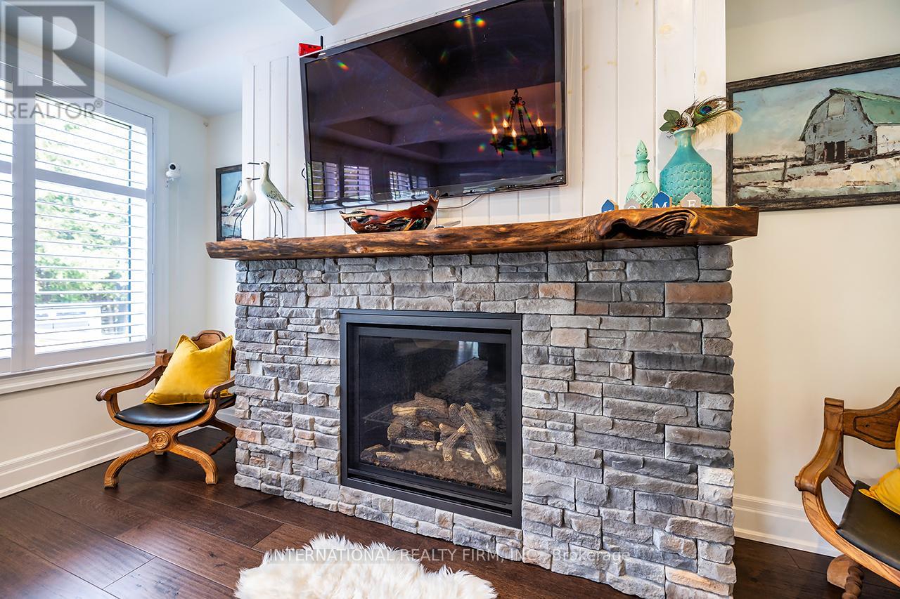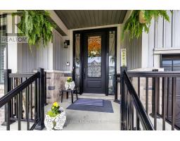 Welcome to 82 Hennessey Crescent, an executive residence in the family-oriented neighbourhood of Ravines of Lindsay. Built in 2022 and ideally positioned on a premium ravine lot backing onto Jennings Creek, this home offers 3,110 sq ft of refined living space and seemlessly blends thoughtful design with upscale finishes throughout. The main level showcases a seamless open-concept layout, highlighted by wide-plank hardwood flooring, a gas fireplace with stone surround and walnut mantle, and expansive windows that frame the private ravine setting. The kitchen is both stylish and functional, featuring quartz countertops, a marble backsplash, and upgraded appliances, ideal for everyday living and effortless entertaining. Upstairs, four generously sized bedrooms each enjoy access to a bathroom. The primary suite offers a tray ceiling, dual walk-in closets, and a well-appointed 5-piece ensuite. A second-floor laundry room adds convenience to the home's practical layout. Additional features include California shutters, a custom tray ceiling in the great room, wrought iron door inserts, and an extra-long driveway with no sidewalk. The fully fenced backyard provides a private outdoor retreat, complete with a hot tub, garden shed, and ample space to bring future plans to life. A polished, move-in ready home offering comfort, privacy, and a quiet connection to nature. (id:61423)